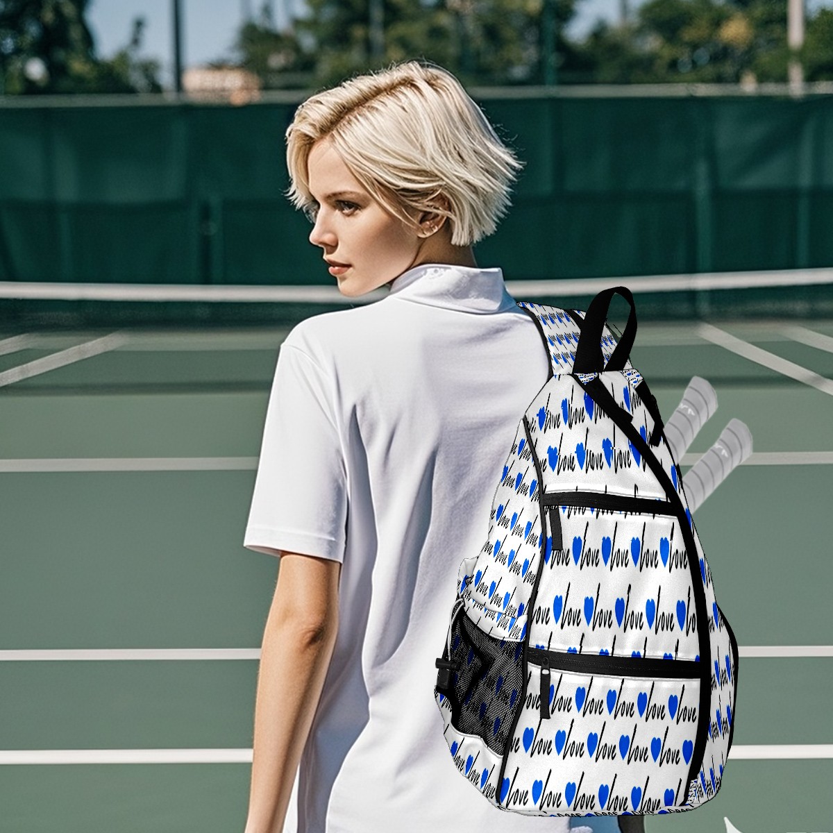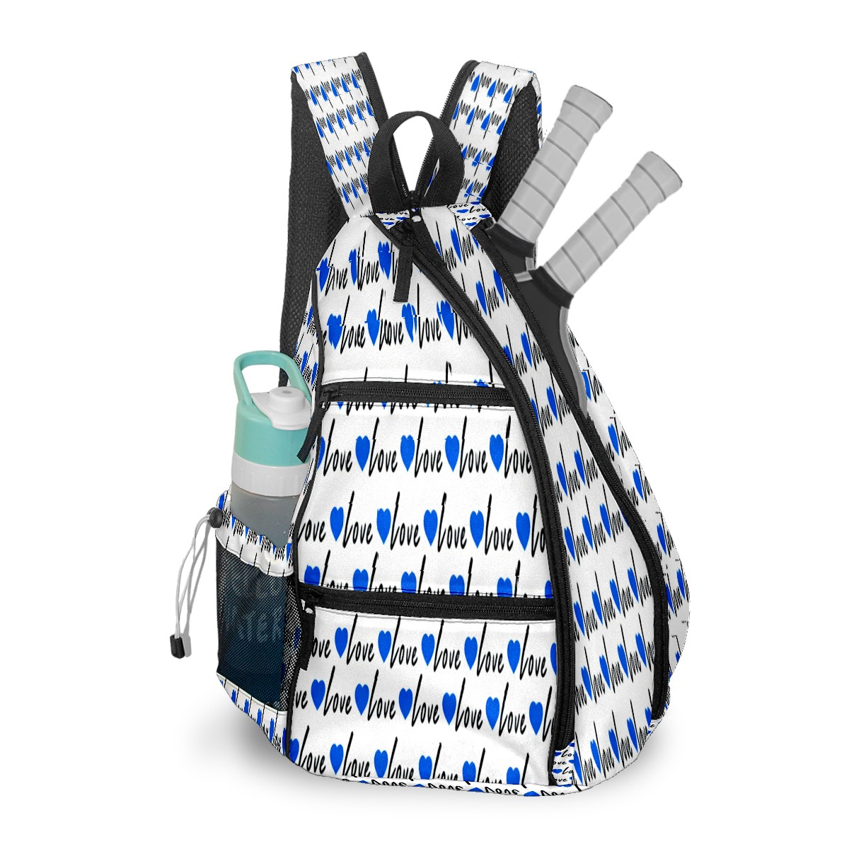 Counullo Pickleball Bag for Women & Men – Lightweight Sports Backpack with Paddle Compartments, Dual Carry Modes, Detachable Zippered Strap, LOVE Text Blue | Great Gift for Players