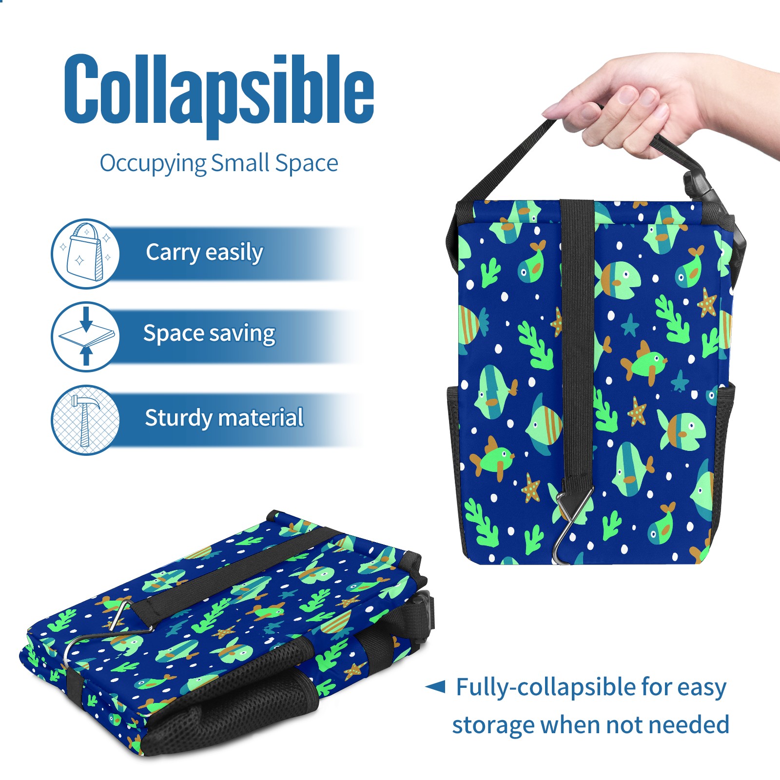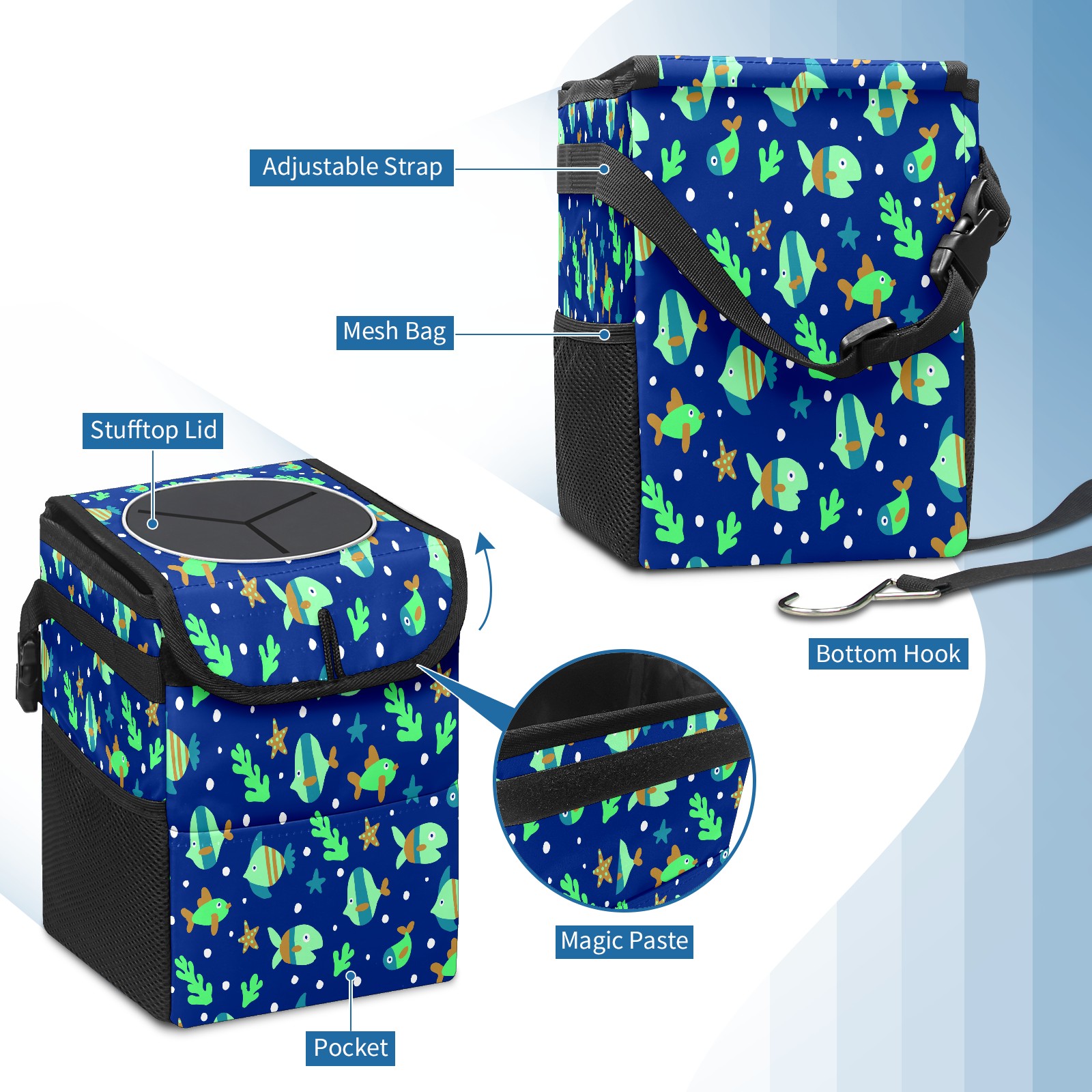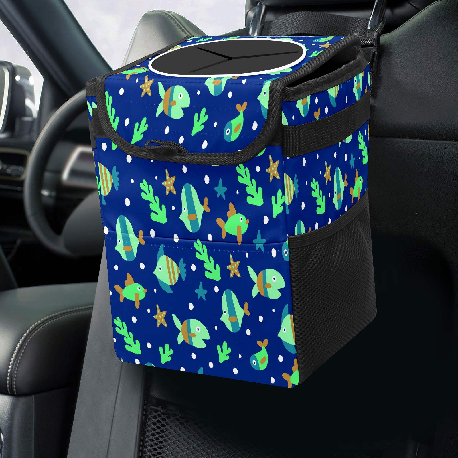 Car Garbage Can — Multi-functional, Lightweight Portable, Reusable Vehicle Trash Can, Waterproof with Sufficient Storage Capacity Fishes Pattern