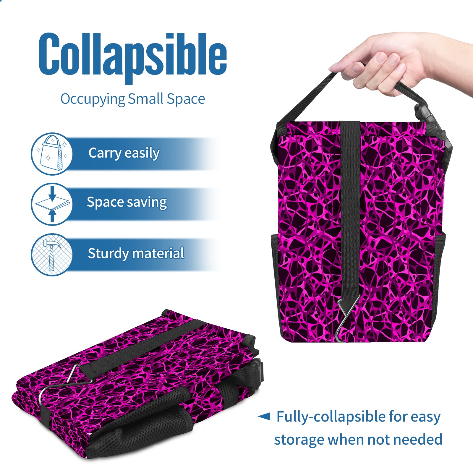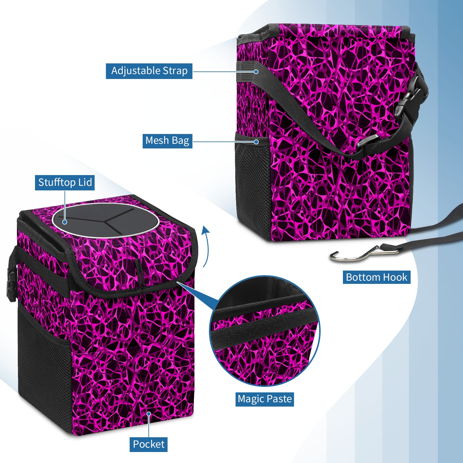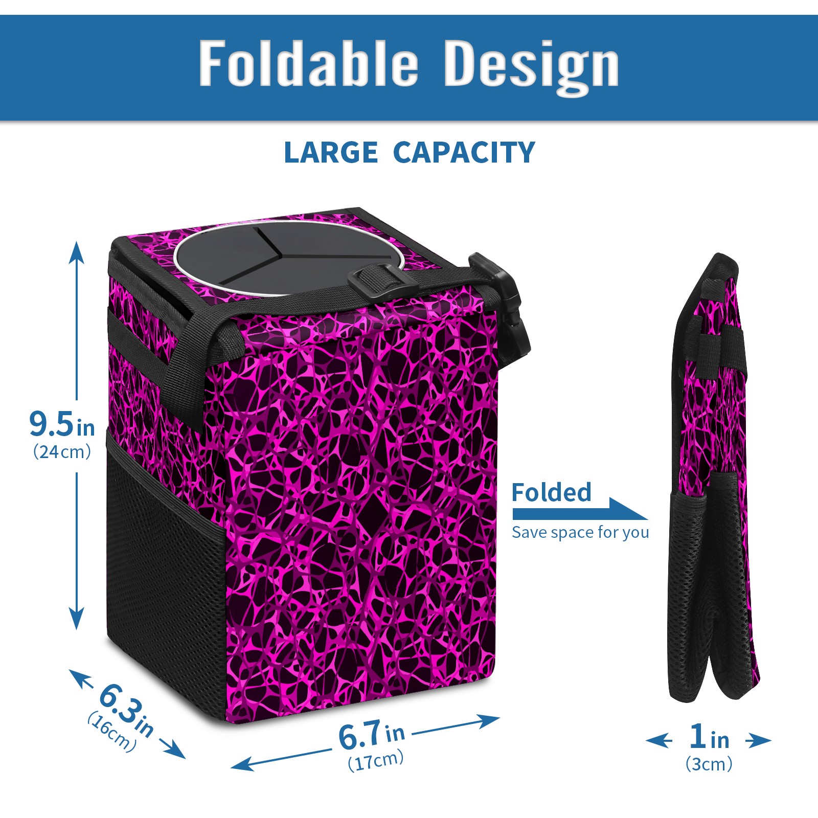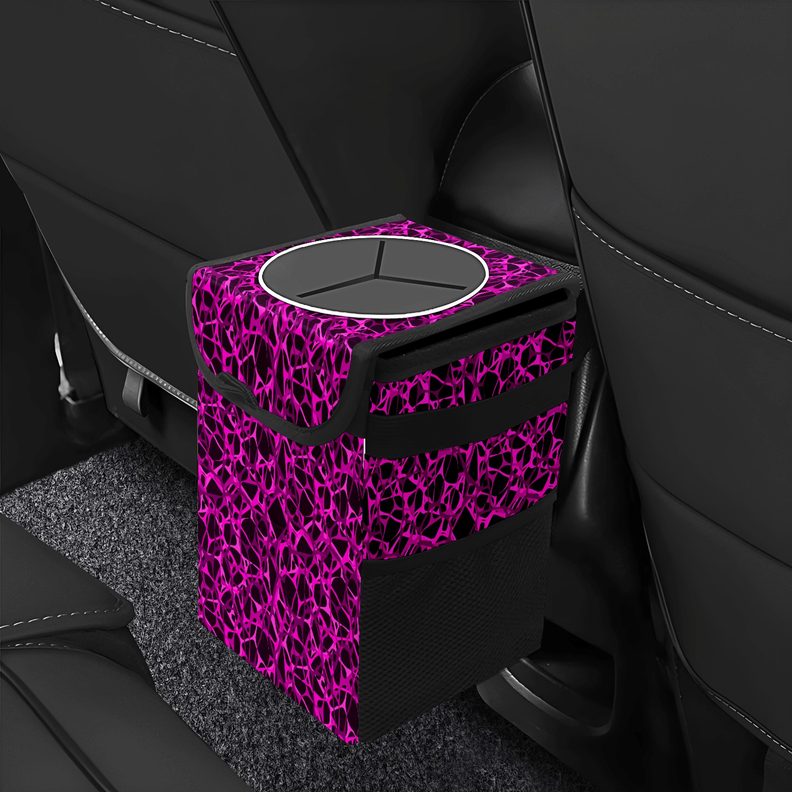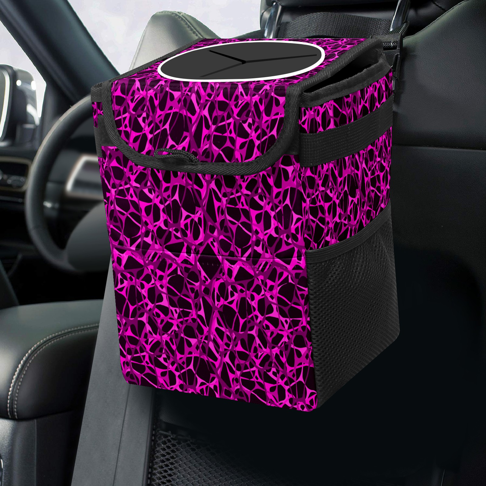 Car Garbage Can — Multi-functional, Lightweight Portable, Reusable Vehicle Trash Can, Waterproof with Sufficient Storage Capacity Dark Purple Lines