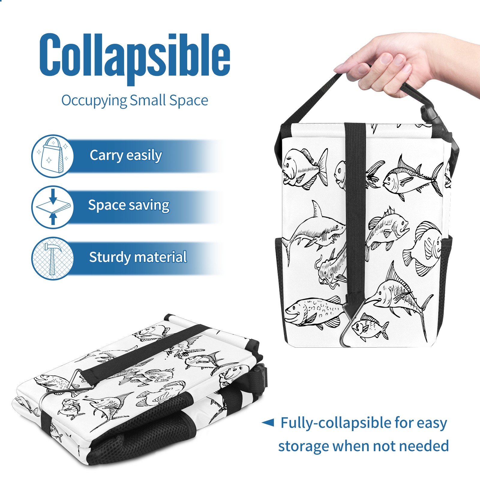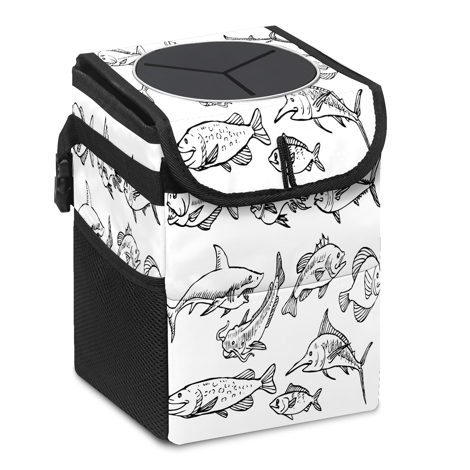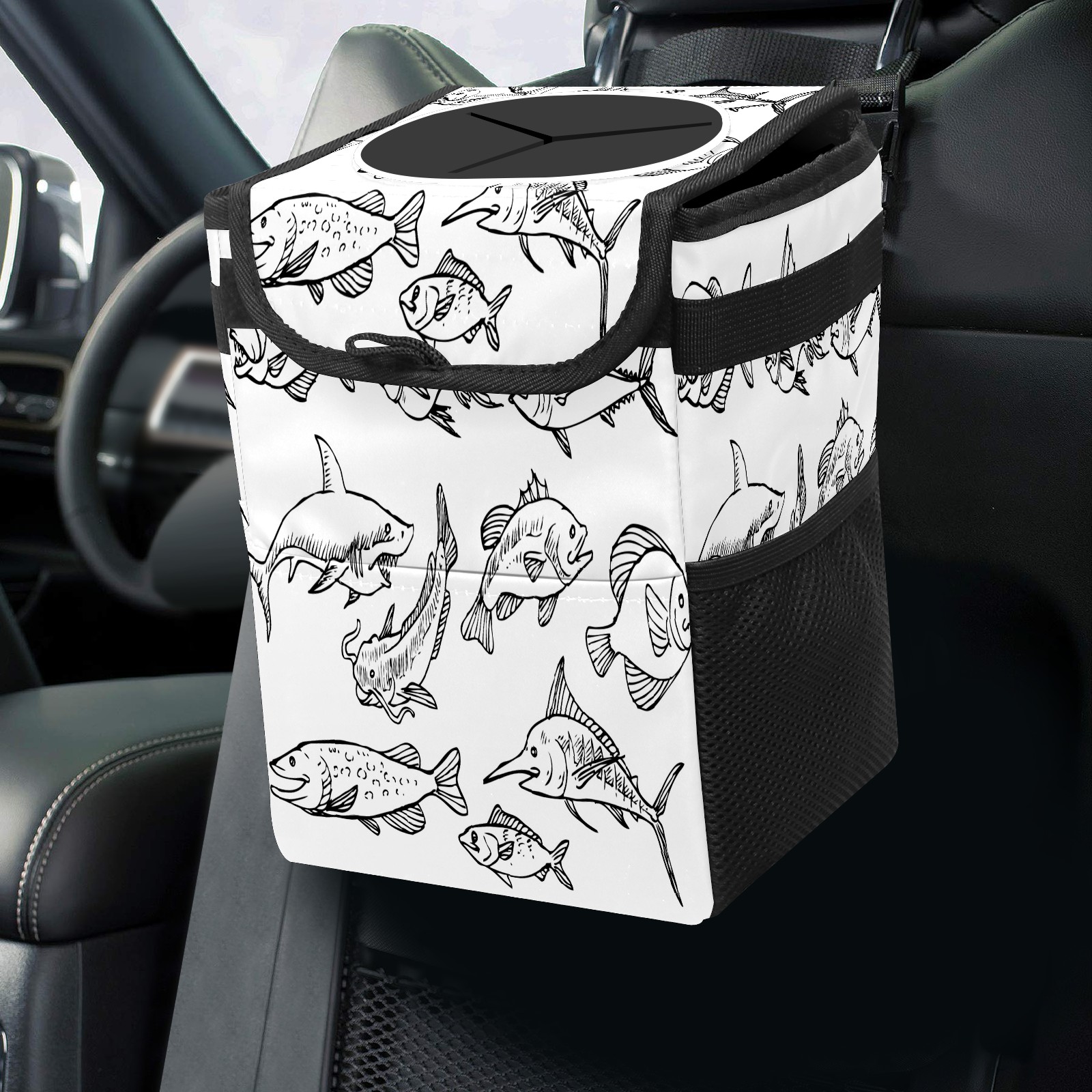 Car Garbage Can — Multi-functional, Lightweight Portable, Reusable Vehicle Trash Can, Waterproof with Sufficient Storage Capacity Fish Sketch Icon