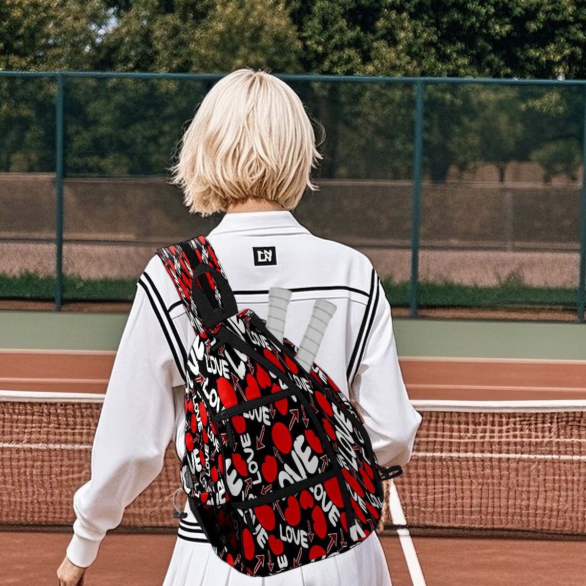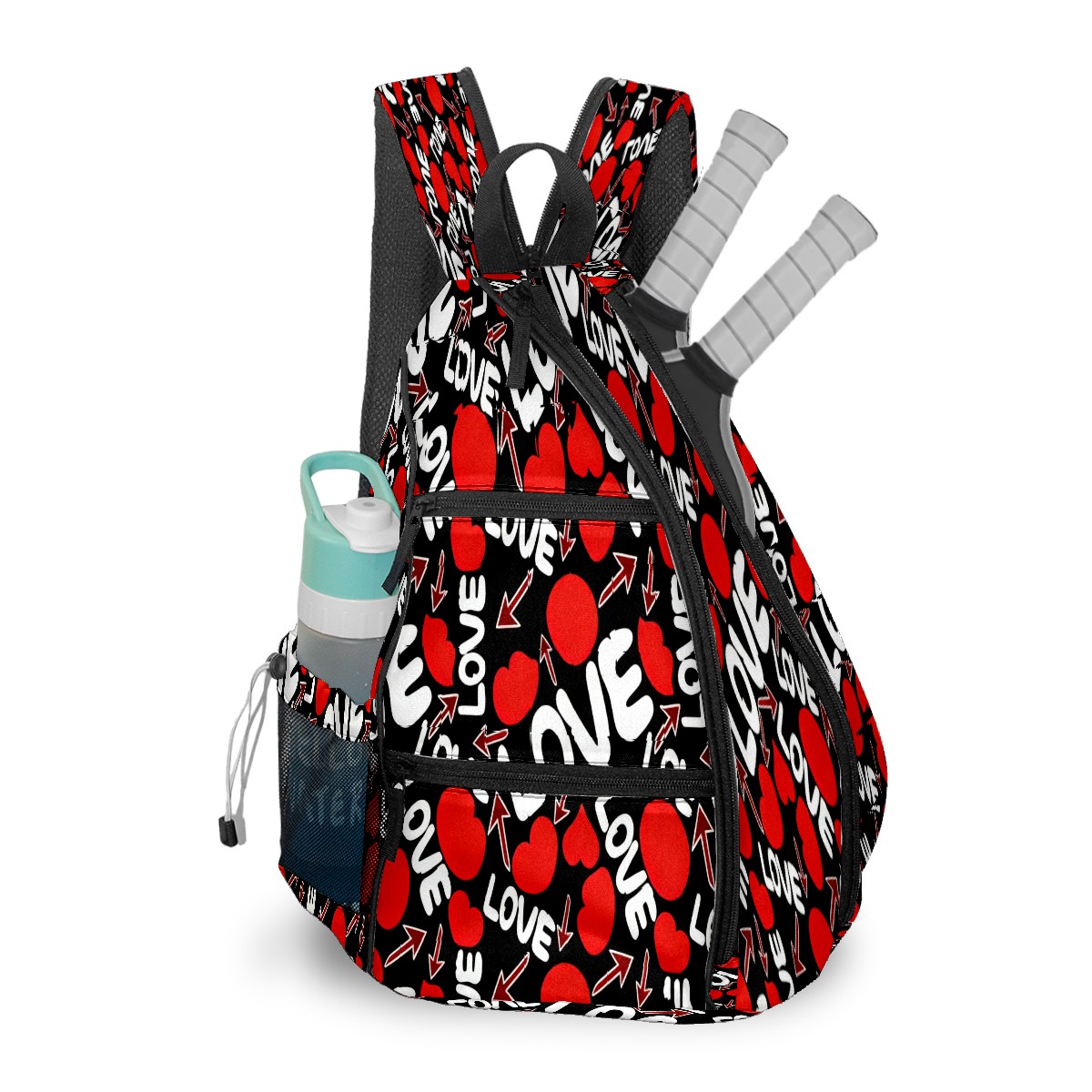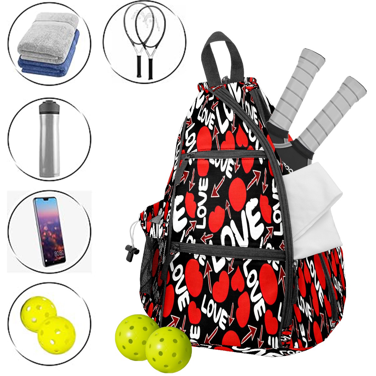 Counullo Pickleball Bag for Women & Men – Lightweight Sports Backpack with Paddle Compartments, Dual Carry Modes, Detachable Zippered Strap, LOVE & Heart Black | Great Gift for Players