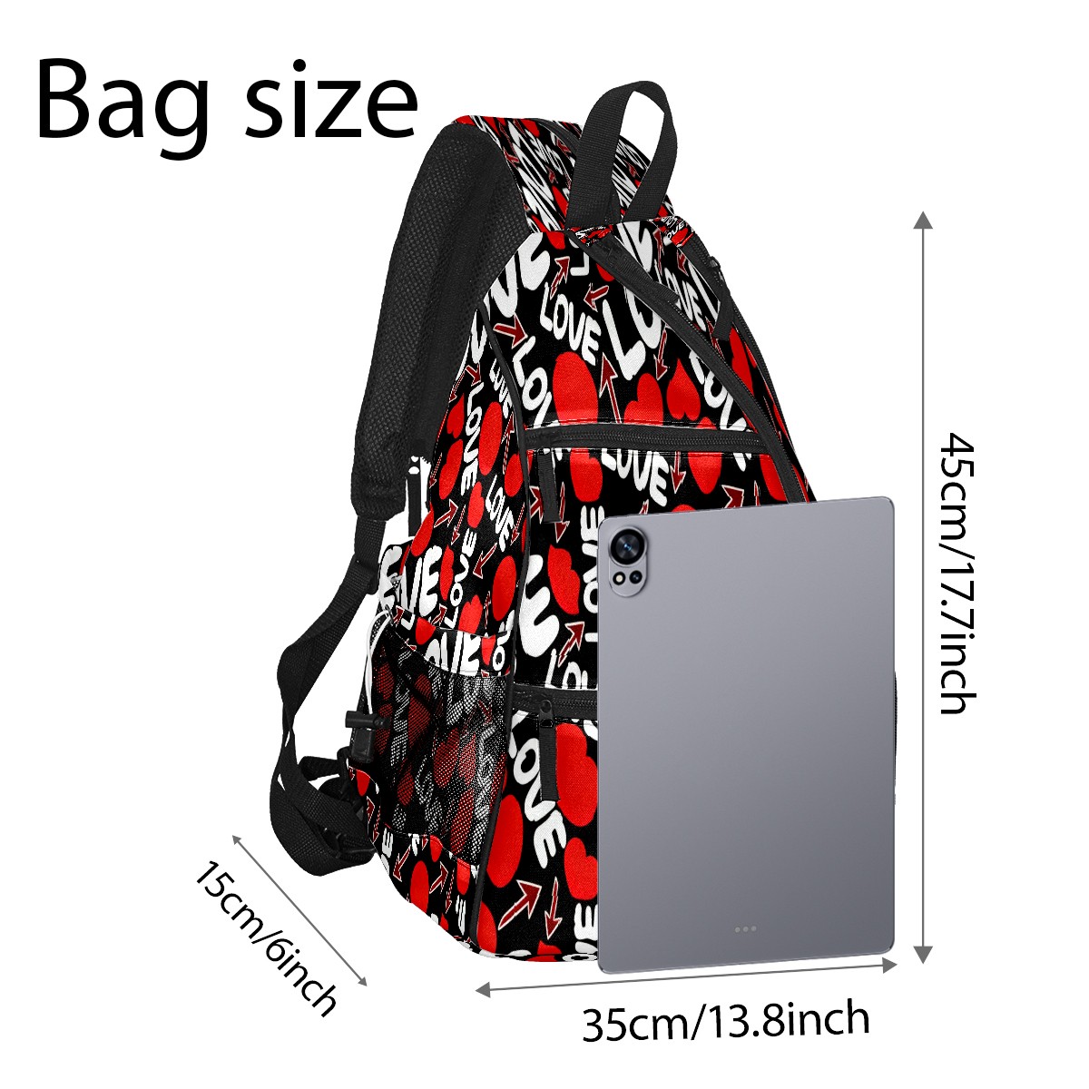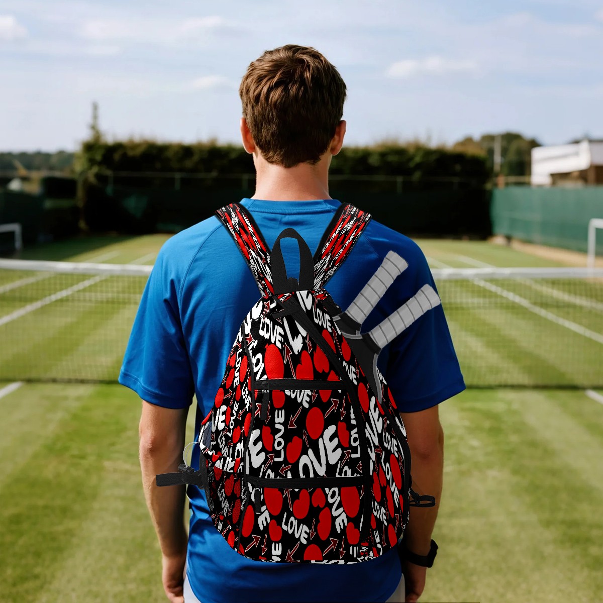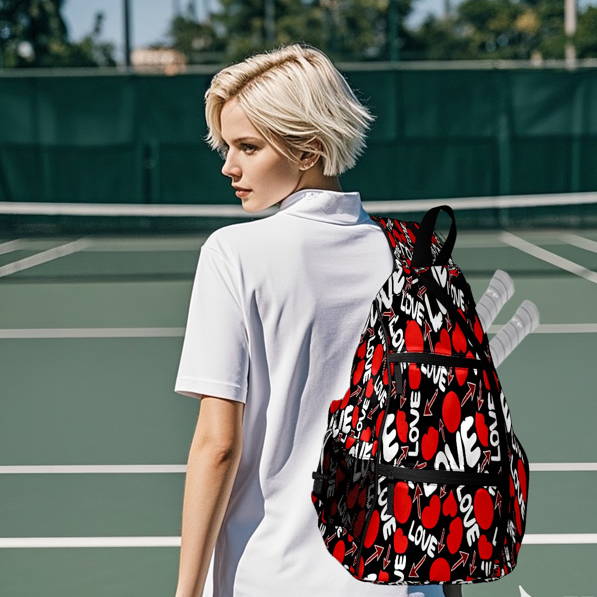Counullo Pickleball Bag for Women & Men – Lightweight Sports Backpack with Paddle Compartments, Dual Carry Modes, Detachable Zippered Strap, LOVE & Heart Black | Great Gift for Players