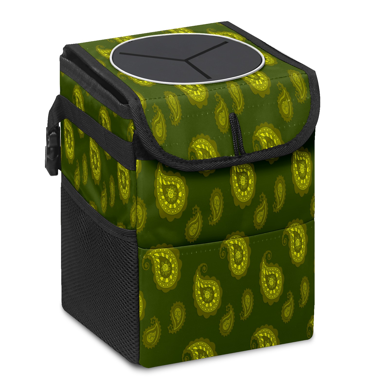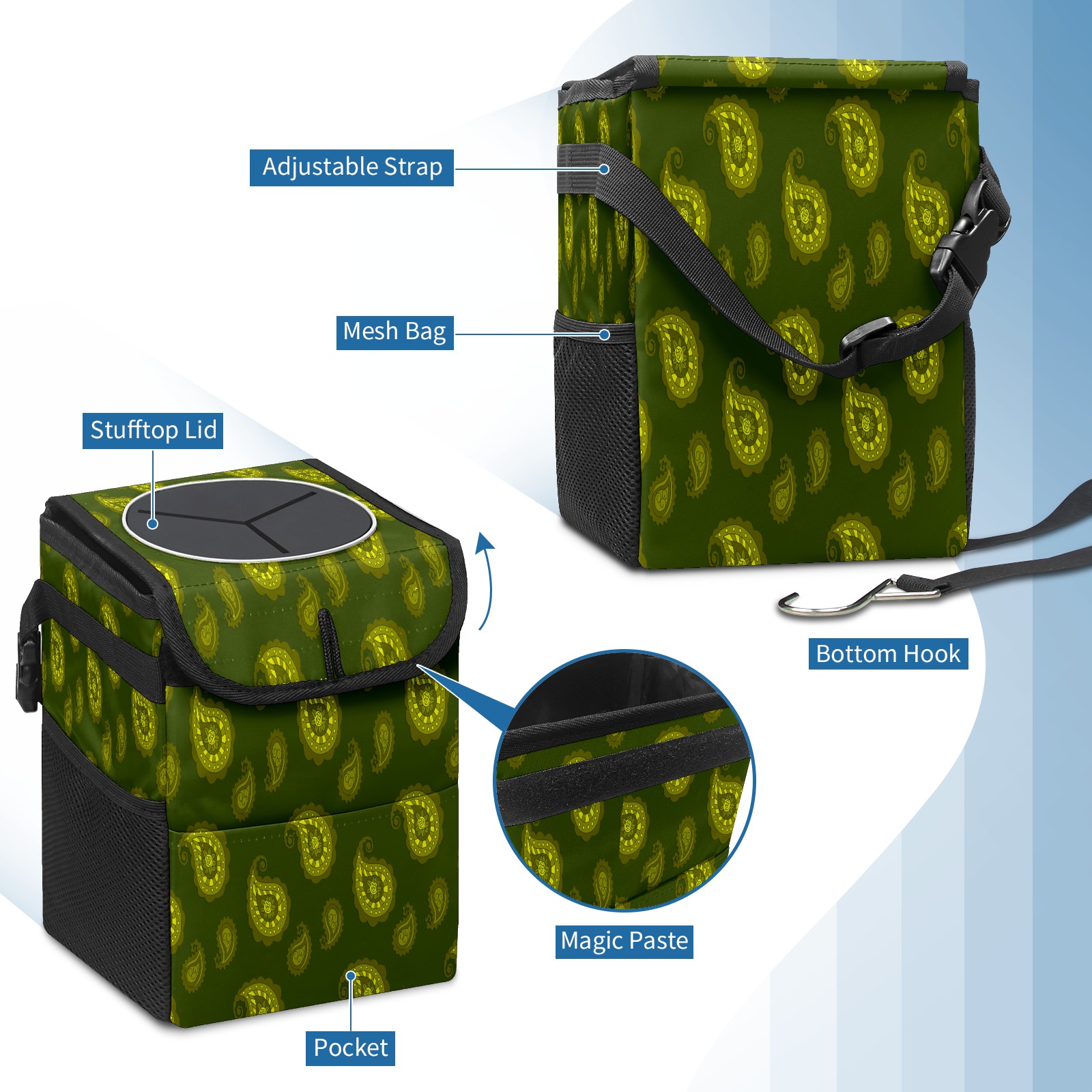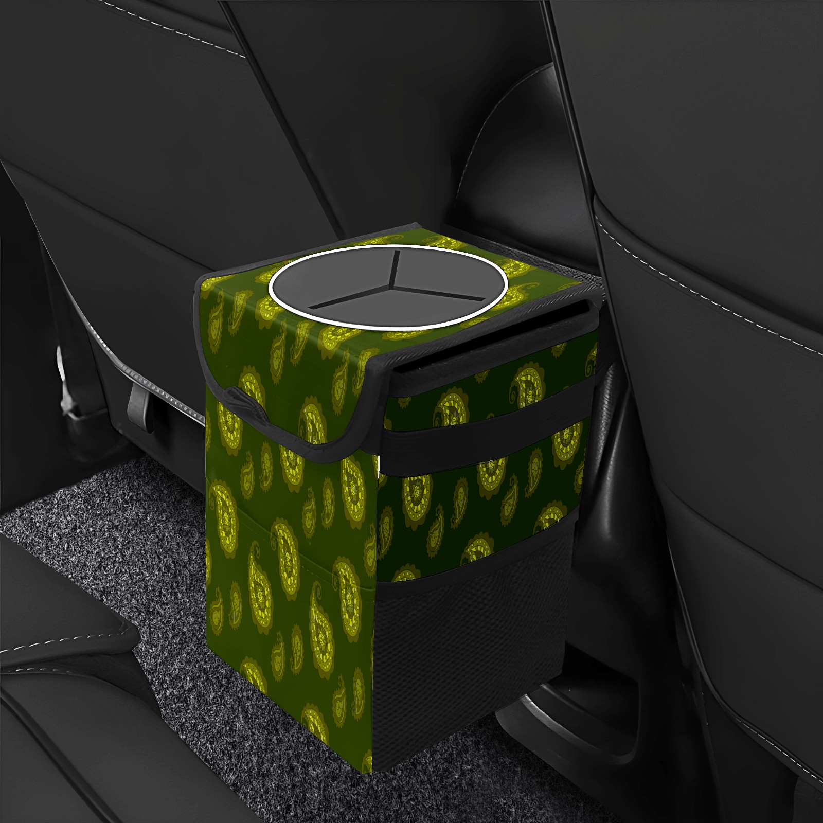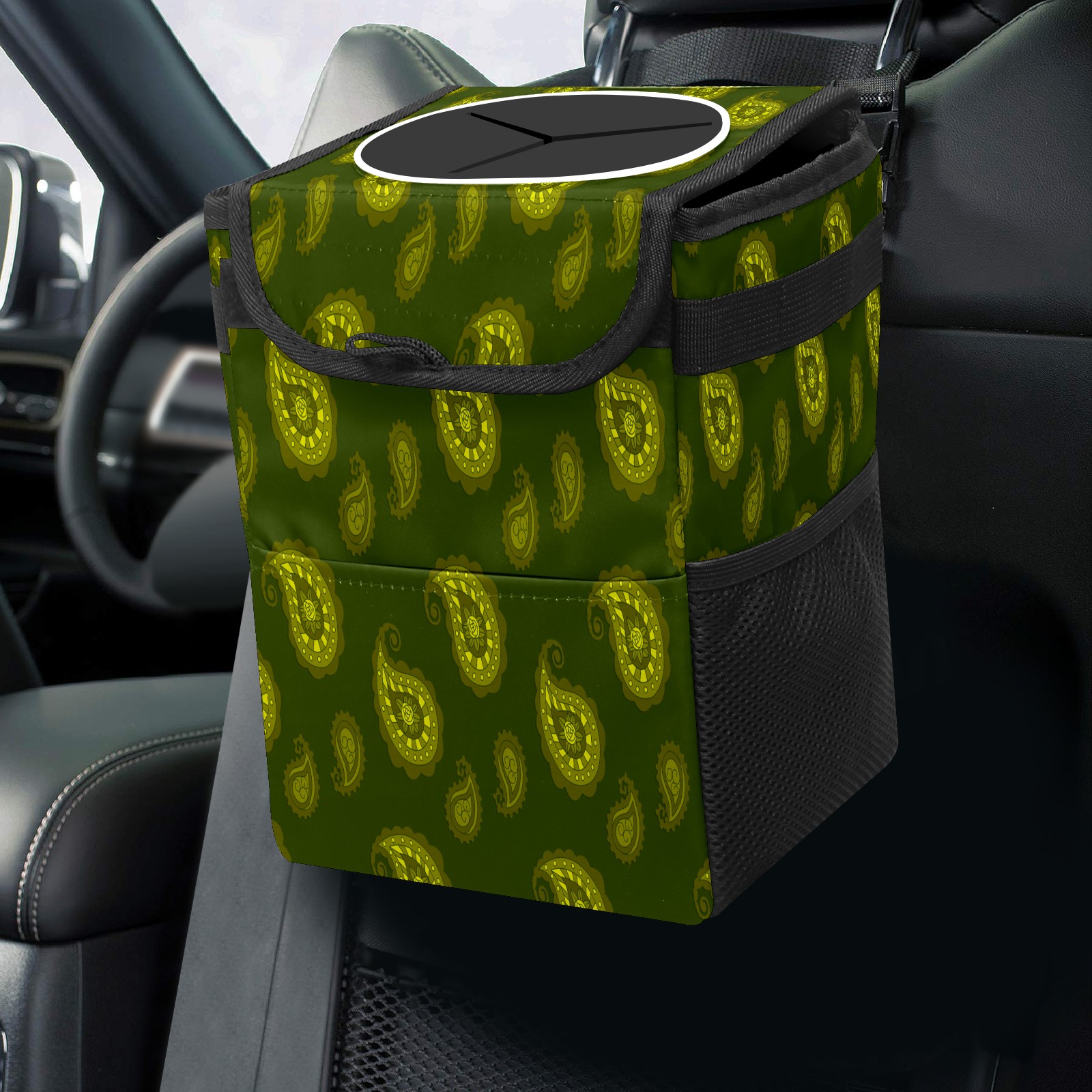 Car Garbage Can — Multi-functional, Lightweight Portable, Reusable Vehicle Trash Can, Waterproof with Sufficient Storage Capacity Dark Green Water Drop Pattern