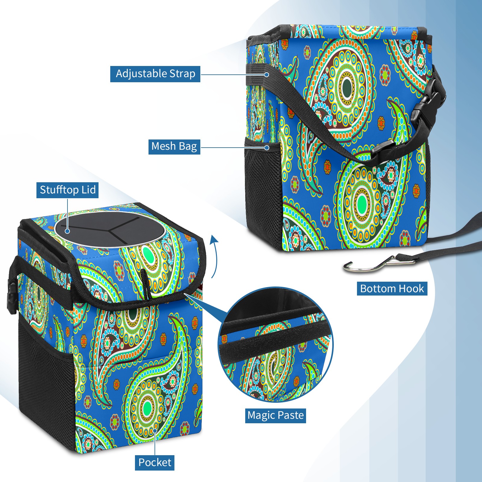 • <p>Keep your car neat with this practical car trash can—built for durability, versatility, and on-the-go convenience! Crafted from quality twill fabric with a waterproof lining, it prevents leaks, keeping seats/floors clean. Clean easily: empty directly or secure a disposable bag with side clips. Adjustable pull cord fits floor, seat, or headrest. 9.5x6.3x6.7 inches, ample space for daily trash, folds flat for storage. More than a trash can, it doubles as a storage bag for cups, toys, docs, and small gadgets—must-have car interior accessory. Installs in seconds on seats, console, or gear shift; adjustable straps keep it stable, no slipping on bumpy roads. Perfect gift for new car owners!</p>