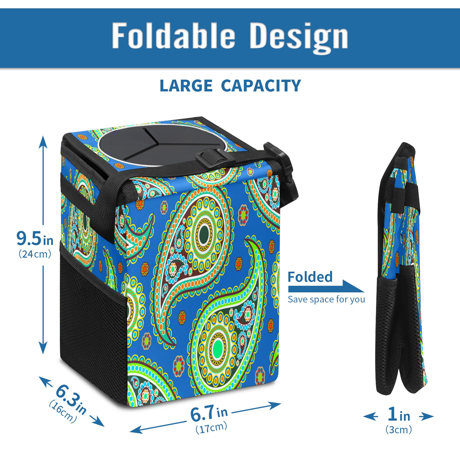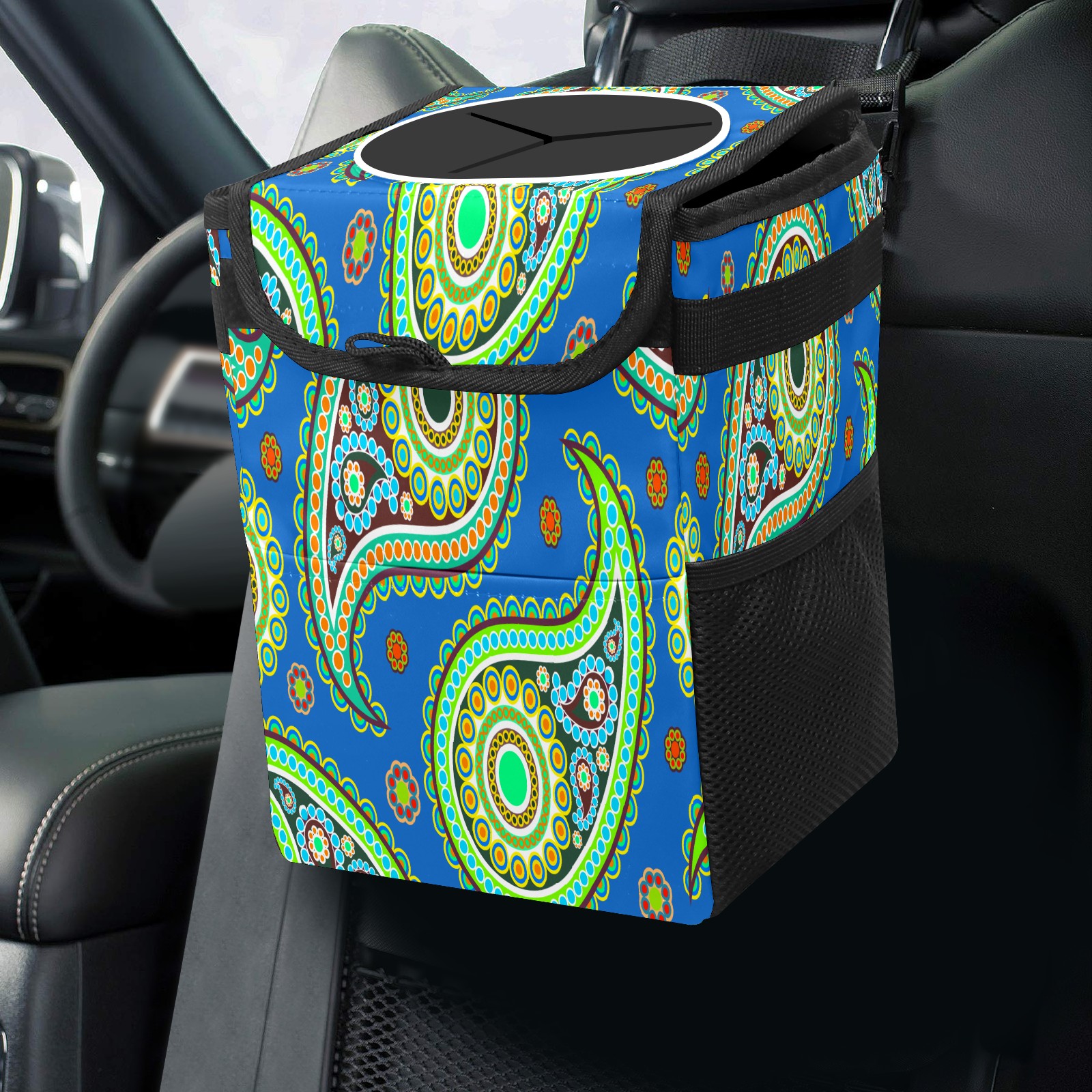 Car Garbage Can — Multi-functional, Lightweight Portable, Reusable Vehicle Trash Can, Waterproof with Sufficient Storage Capacity Colorful Water Drops Pattern