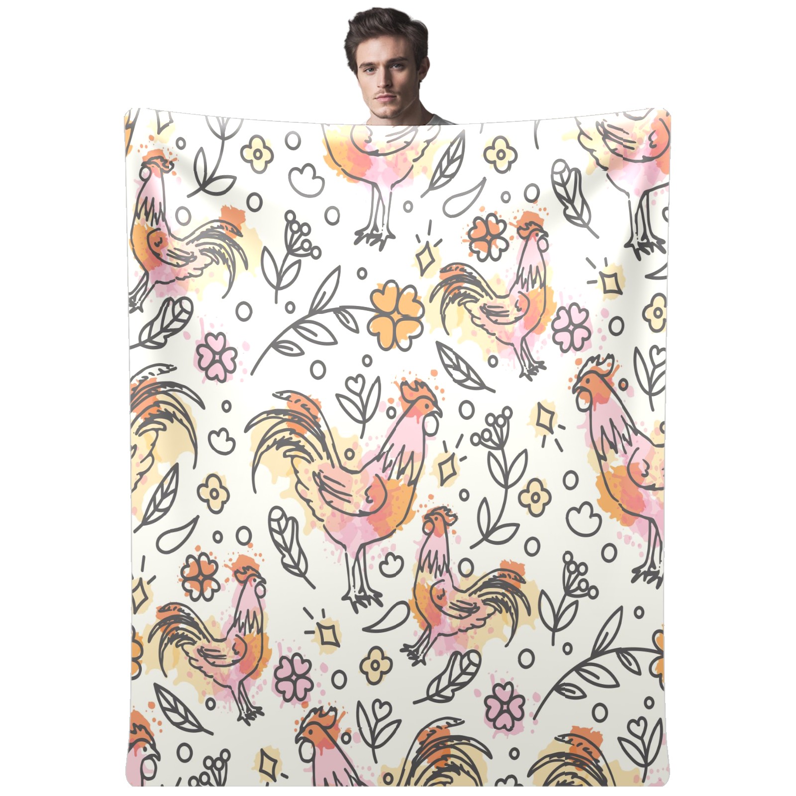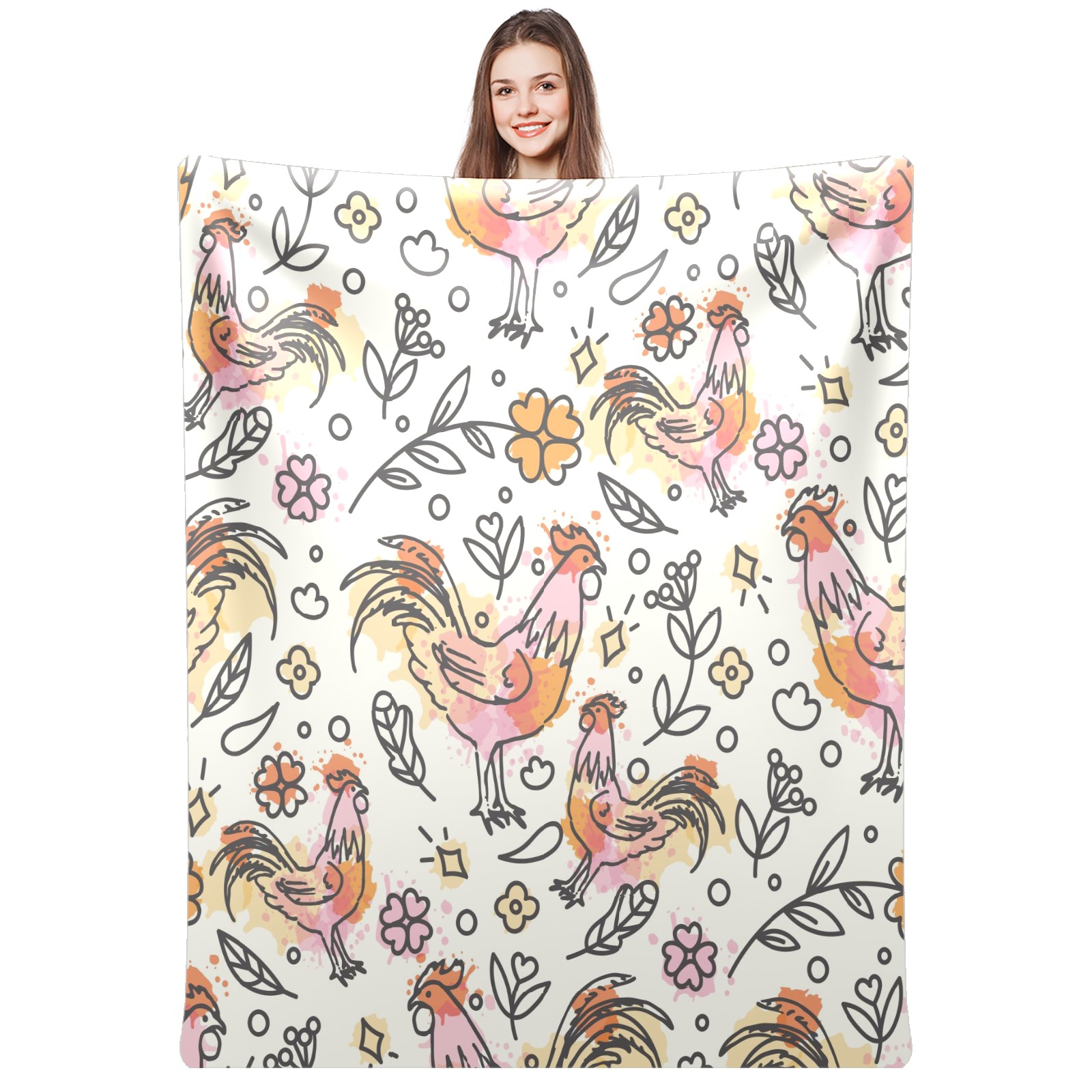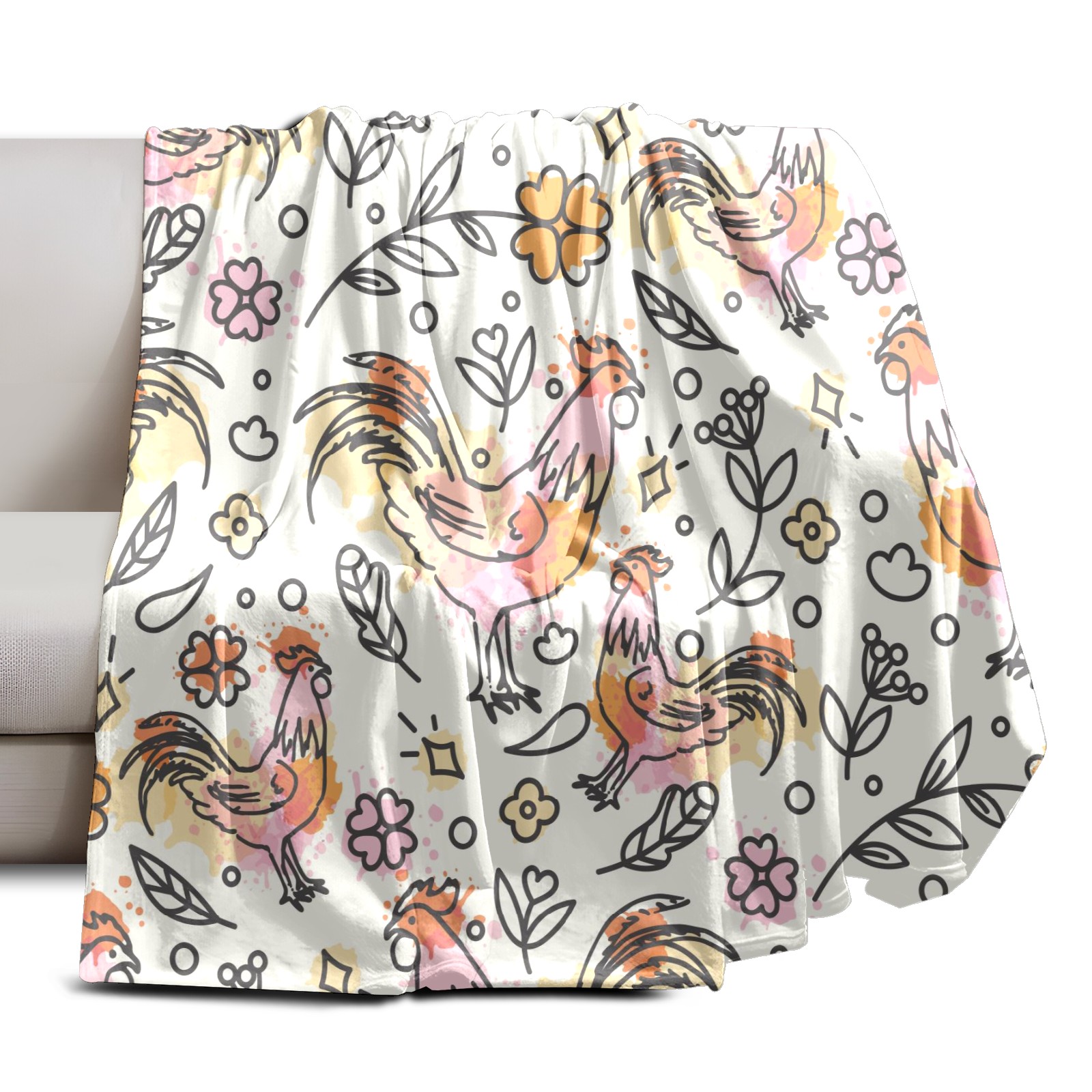 Flannel Blanket, Ultra-Soft Comfortable Home Decor Rug, The Perfect Comfort Gift for Both Men Women, Suitable for Beds, Sofas, Loungewear, and Travel 30x39in(Hand Drawn Rooster Plant Pattern)