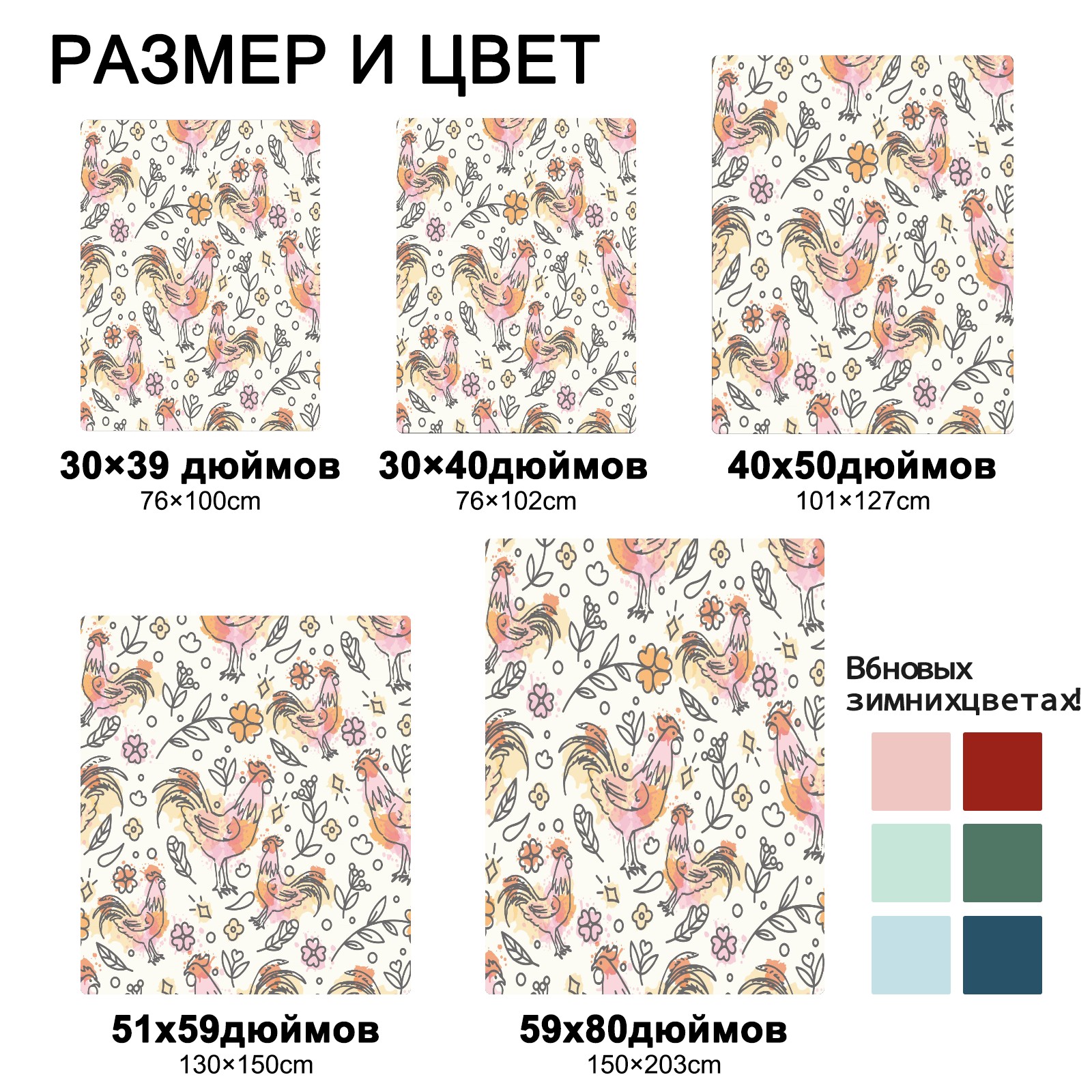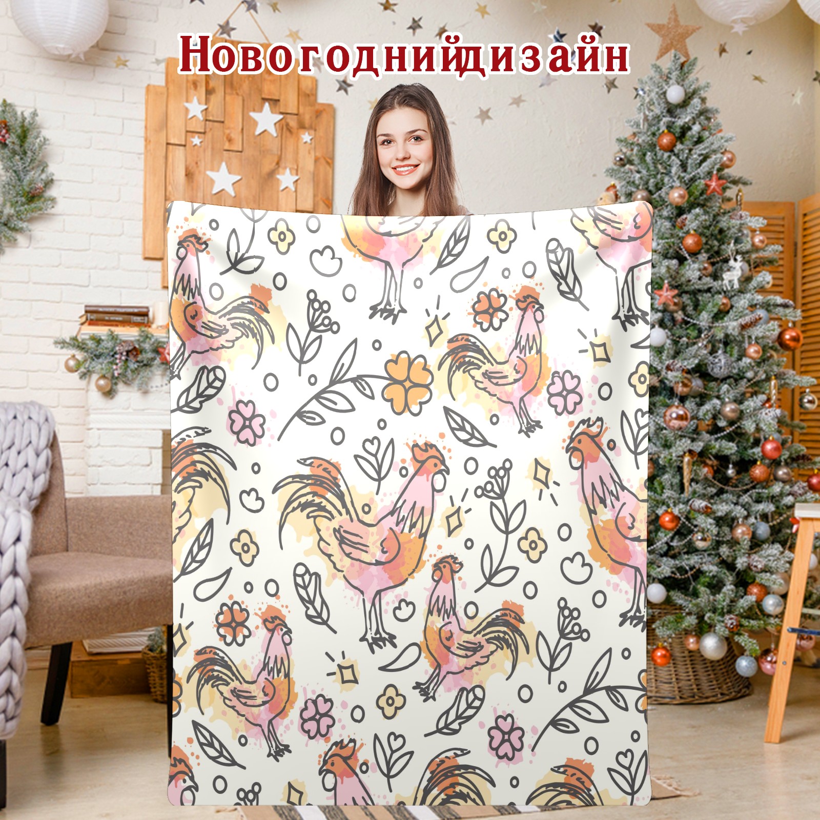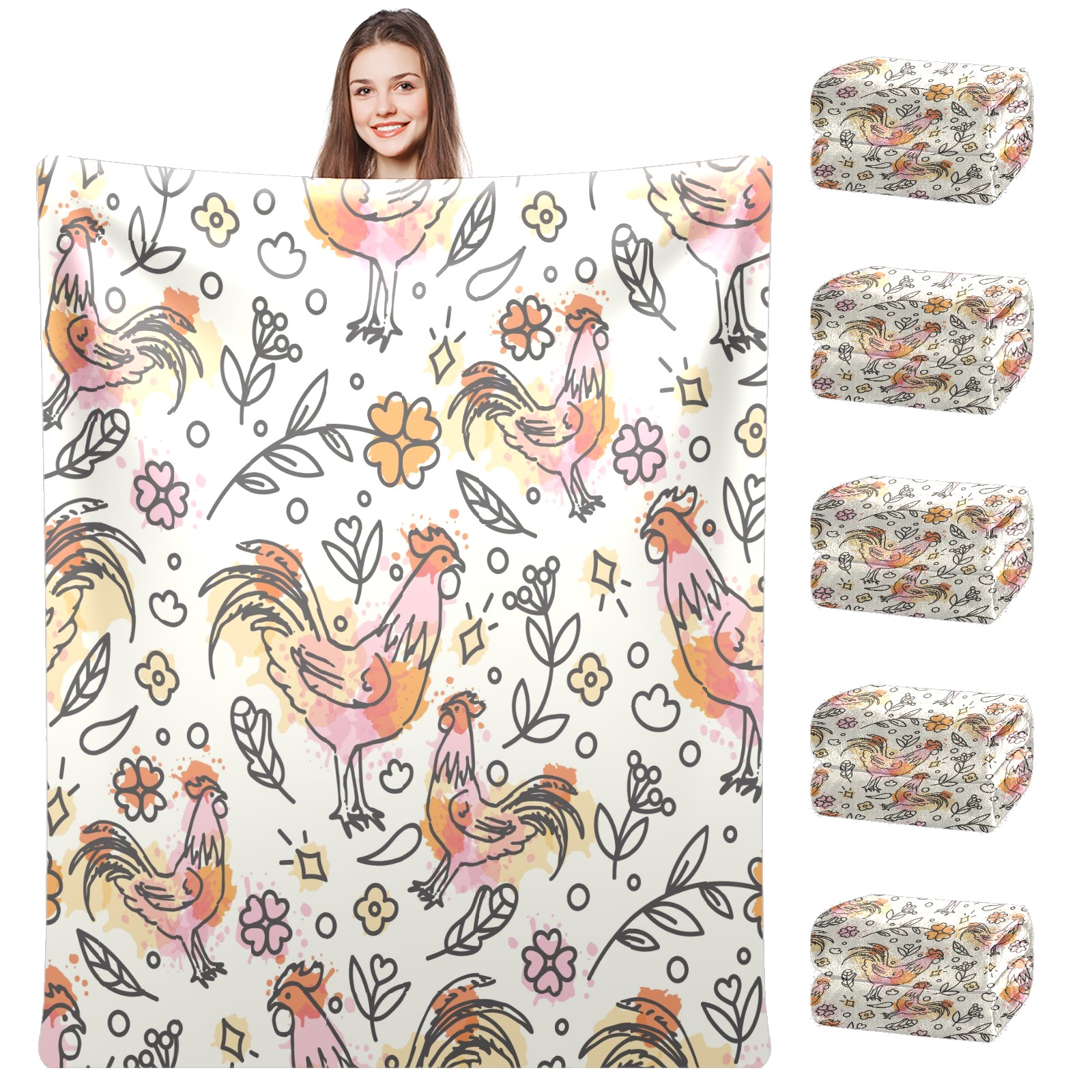 Flannel Blanket, Ultra-Soft Comfortable Home Decor Rug, The Perfect Comfort Gift for Both Men Women, Suitable for Beds, Sofas, Loungewear, and Travel 30x39in(Hand Drawn Rooster Plant Pattern)