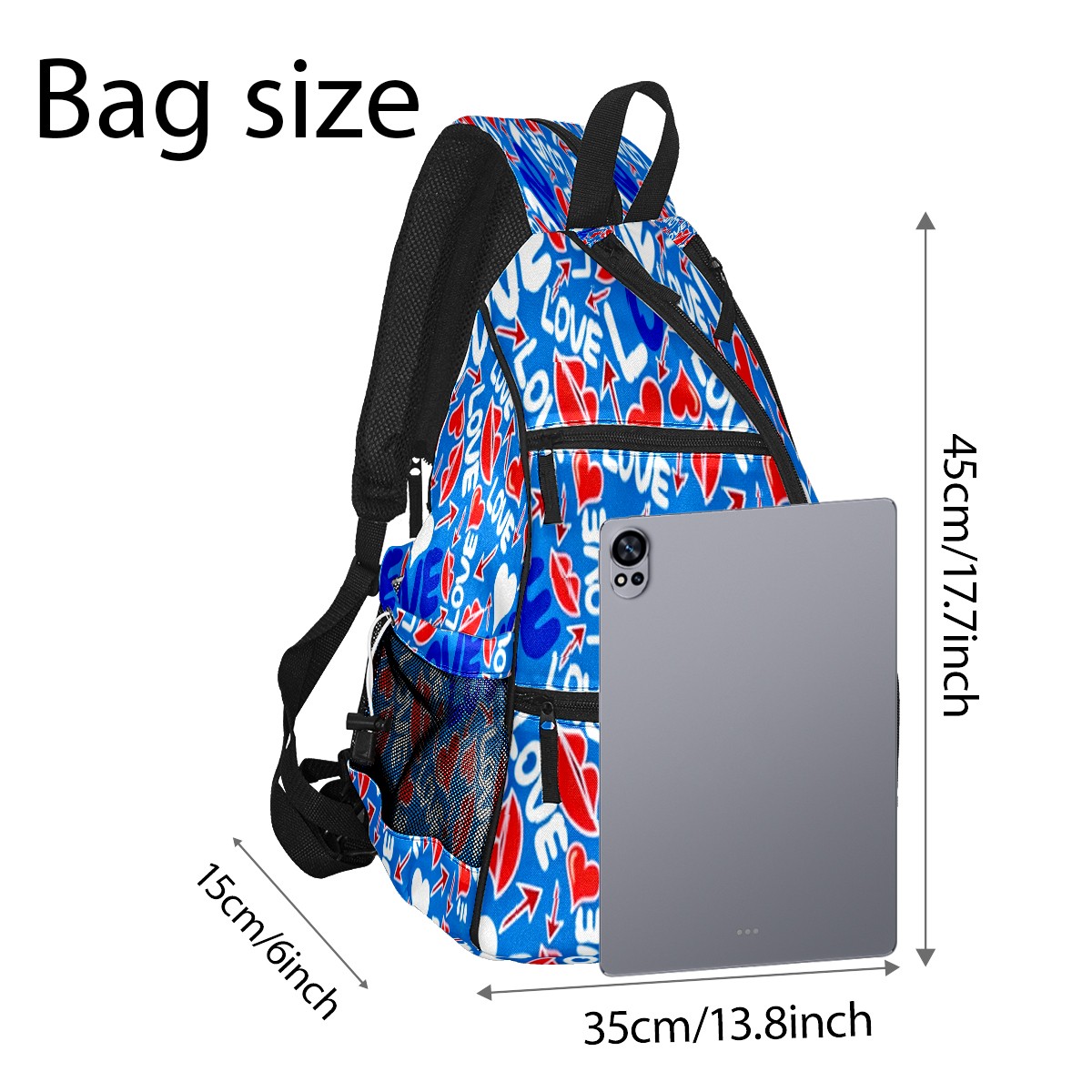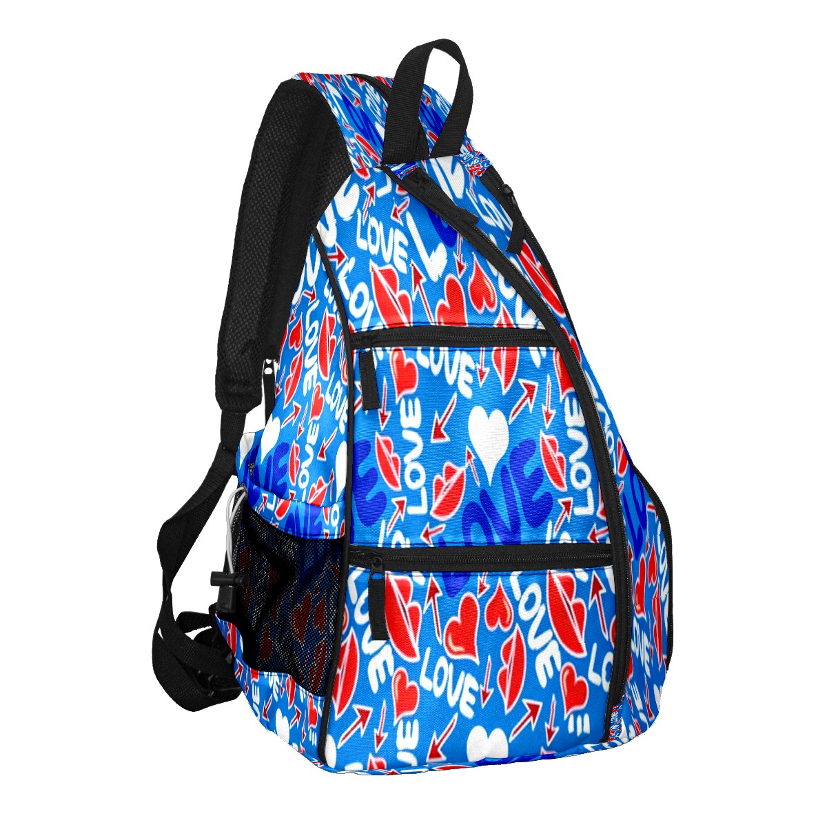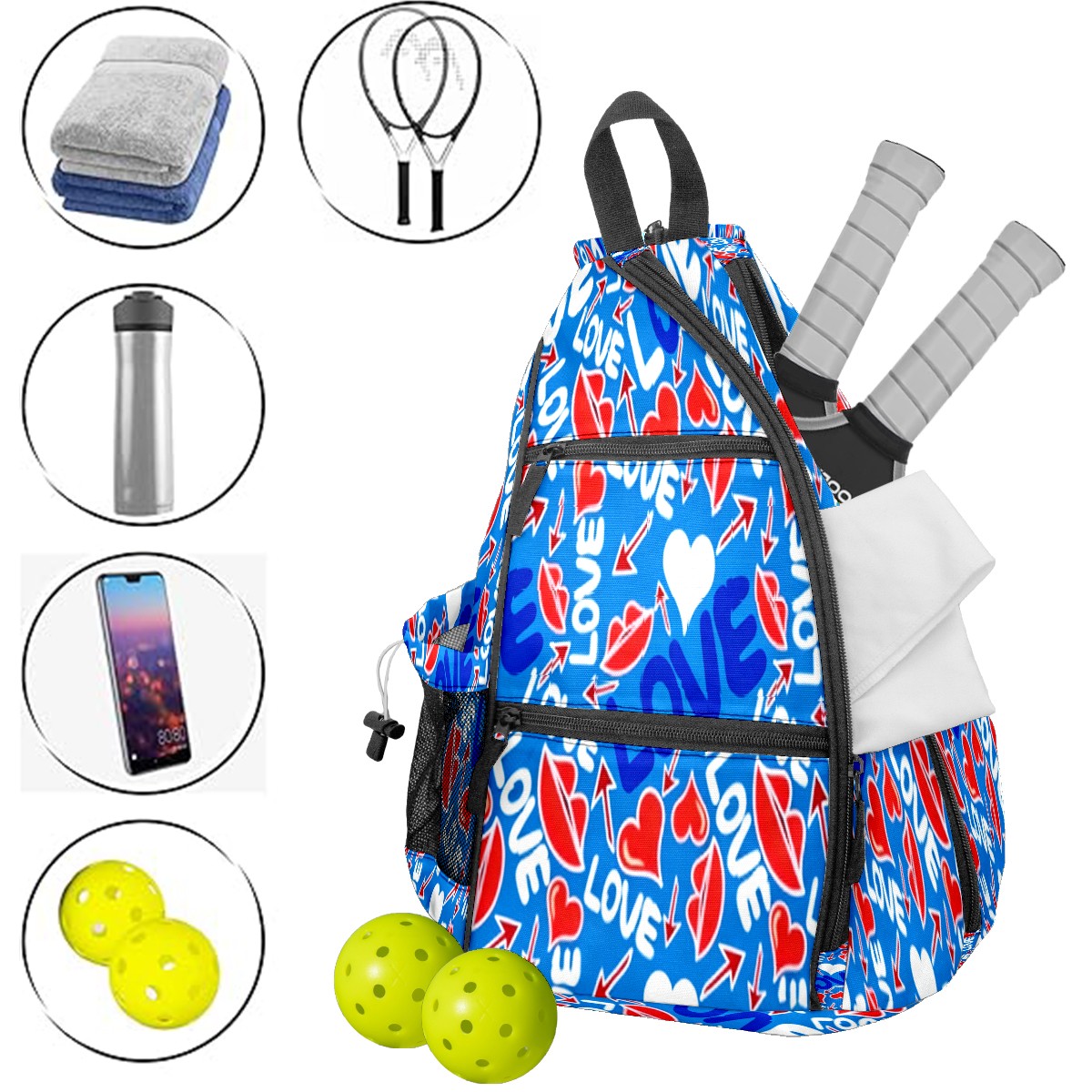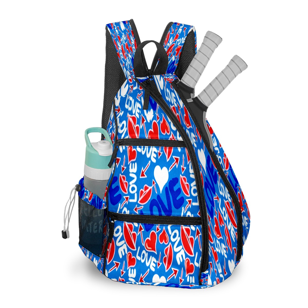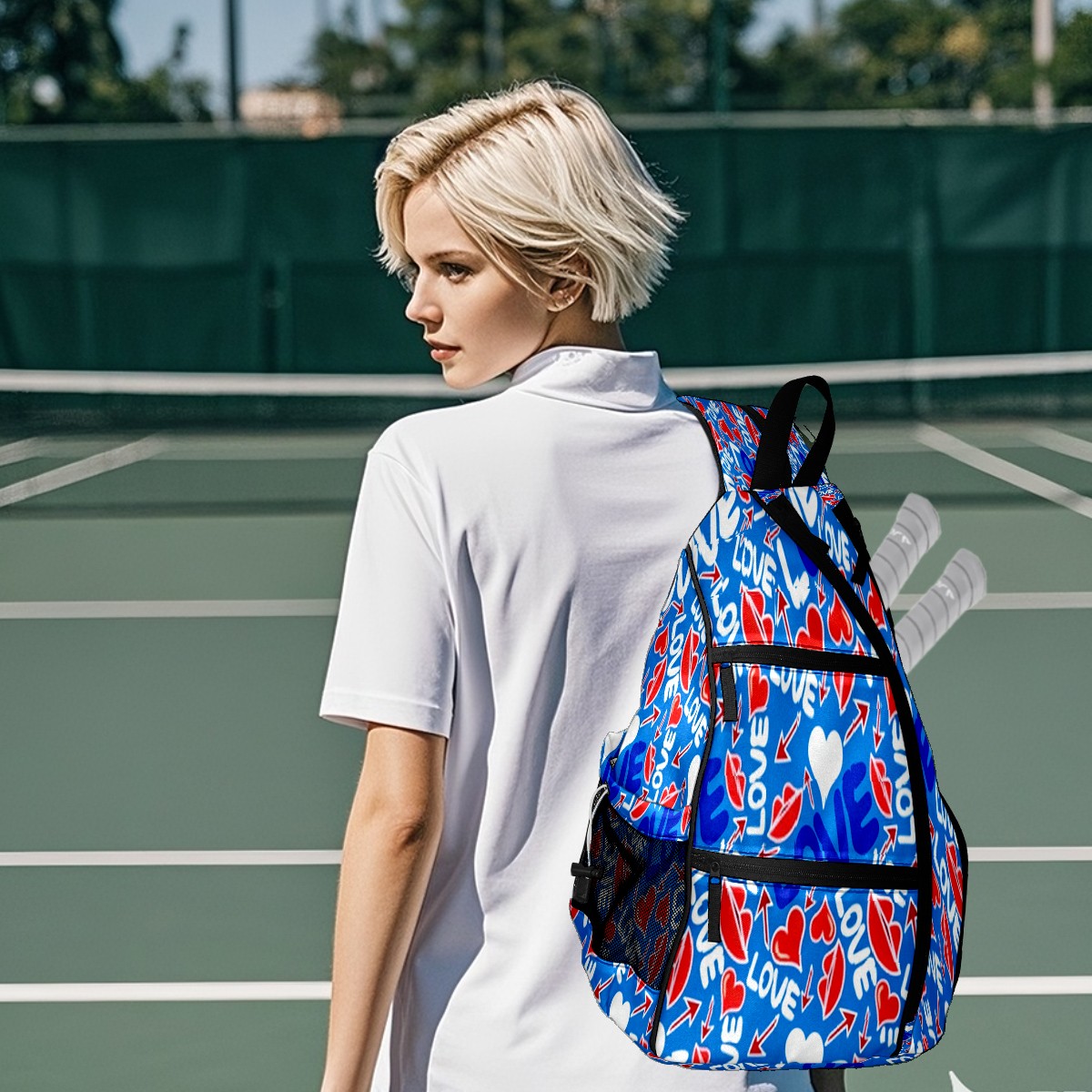 Counullo Pickleball Bag for Women & Men – Lightweight Sports Backpack with Paddle Compartments, Dual Carry Modes, Detachable Zippered Strap, LOVE & Heart Blue | Great Gift for Players