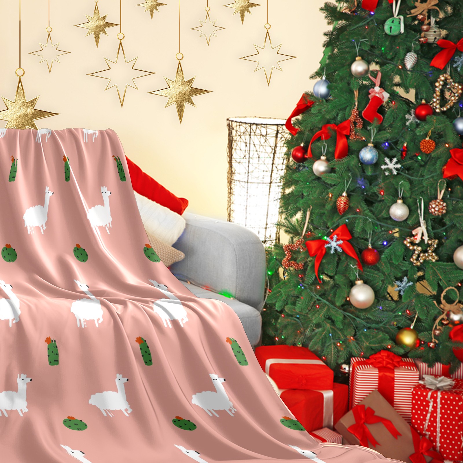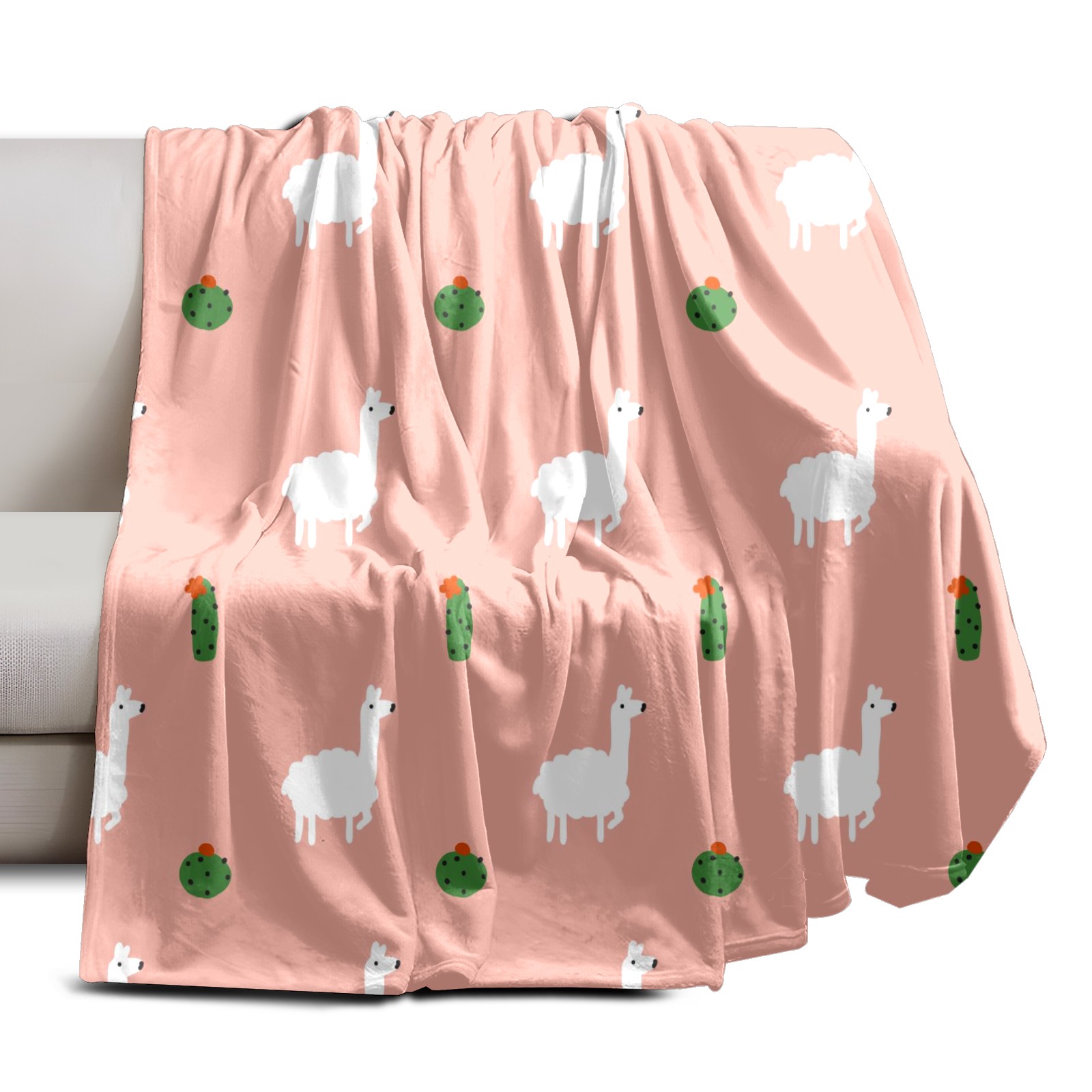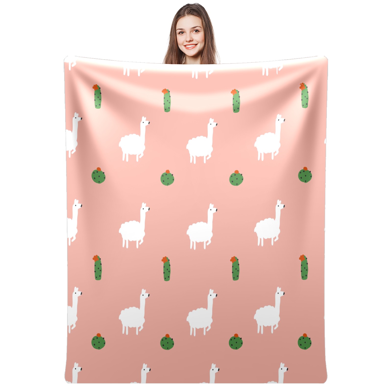 Flannel Blanket, Ultra-Soft Comfortable Home Decor Rug, The Perfect Comfort Gift for Both Men Women, Suitable for Beds, Sofas, Loungewear, and Travel 30x39in(White Llama Green Cactus Pattern)