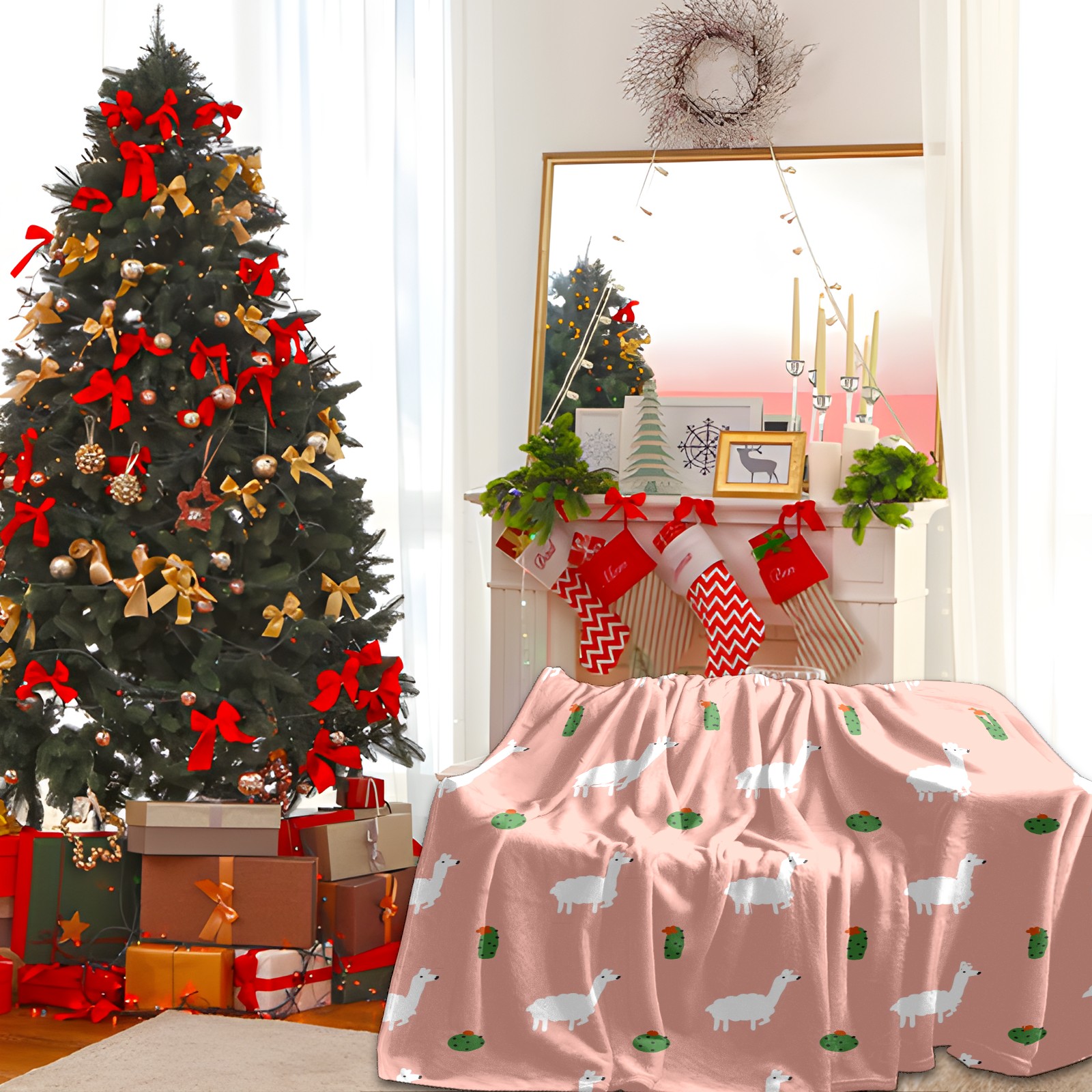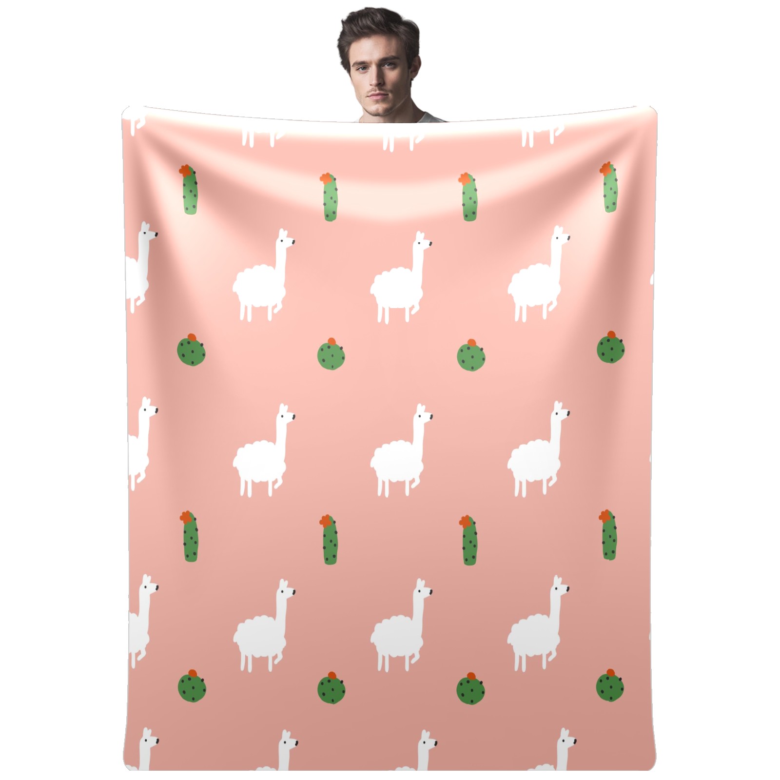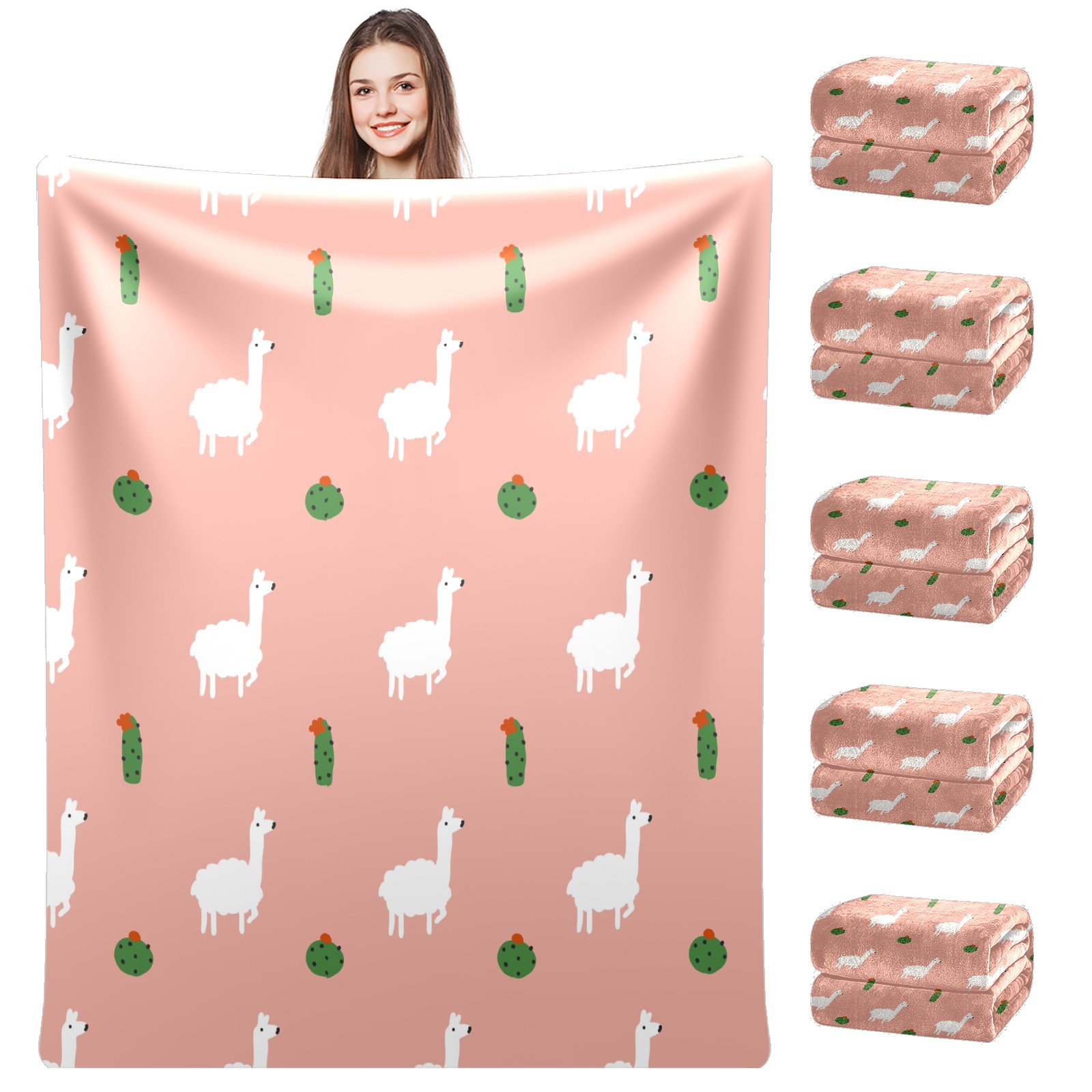 Flannel Blanket, Ultra-Soft Comfortable Home Decor Rug, The Perfect Comfort Gift for Both Men Women, Suitable for Beds, Sofas, Loungewear, and Travel 30x39in(White Llama Green Cactus Pattern)