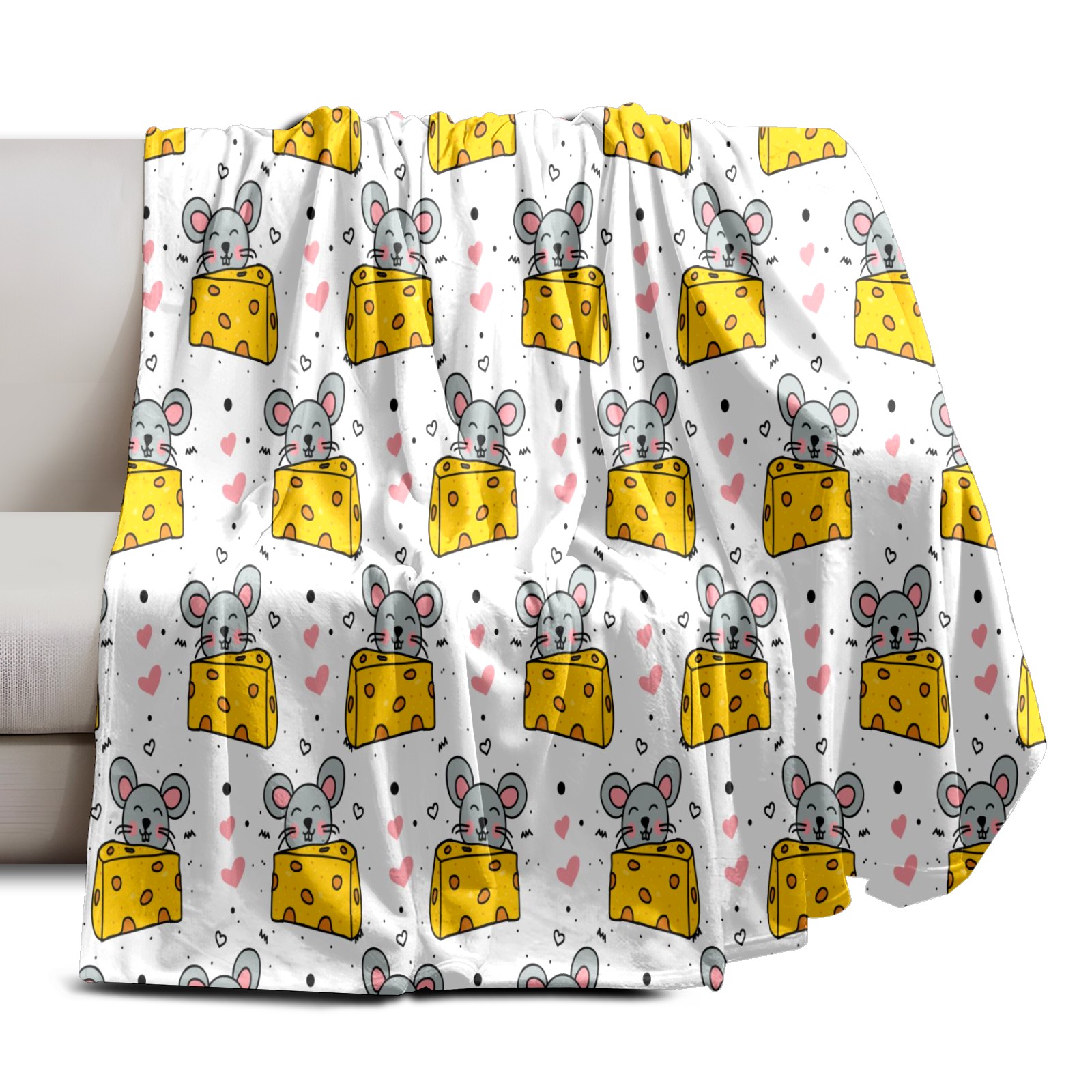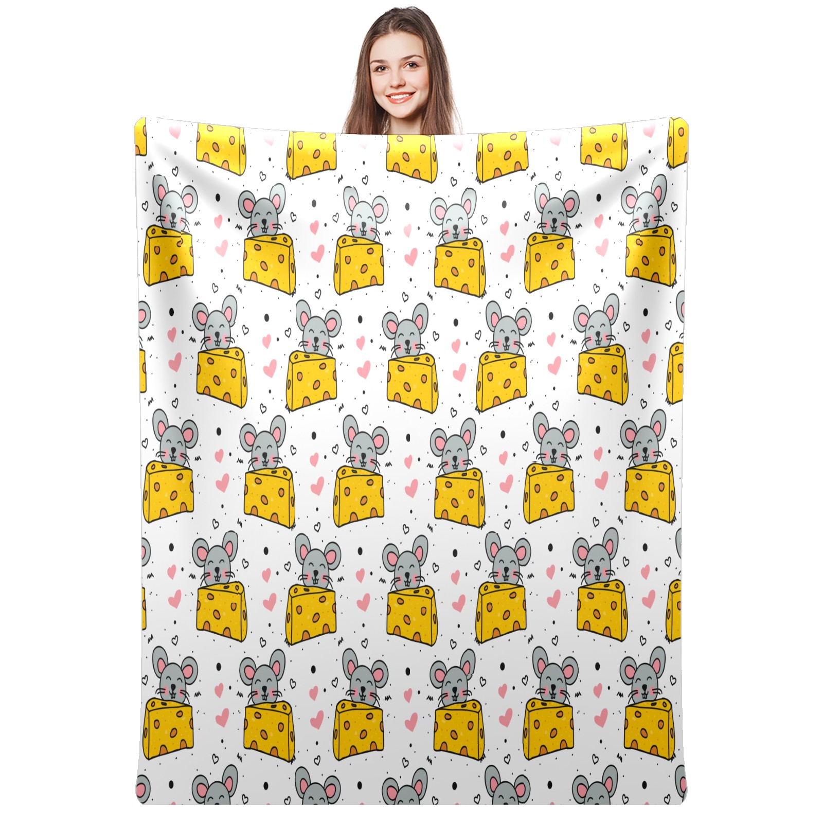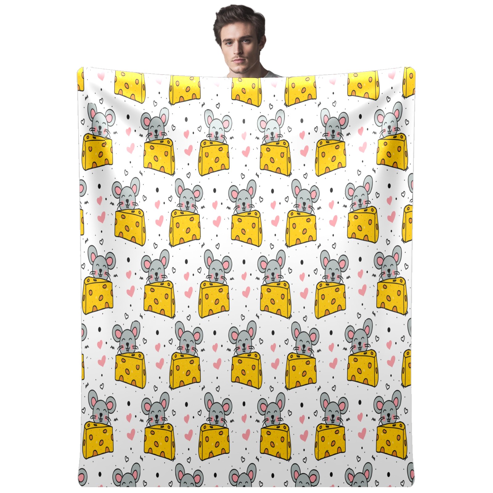 Flannel Blanket, Ultra-Soft Comfortable Home Decor Rug, The Perfect Comfort Gift for Both Men Women, Suitable for Beds, Sofas, Loungewear, and Travel 30x39in(Doodle Mouse Cheese Pattern)