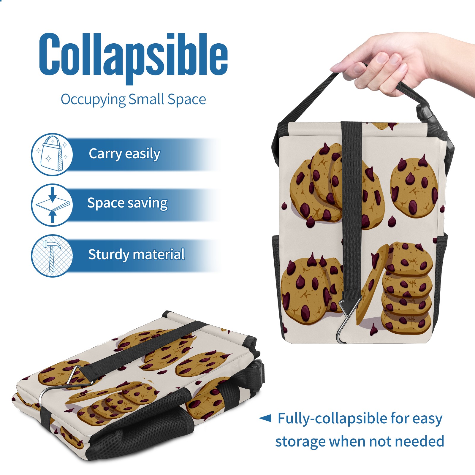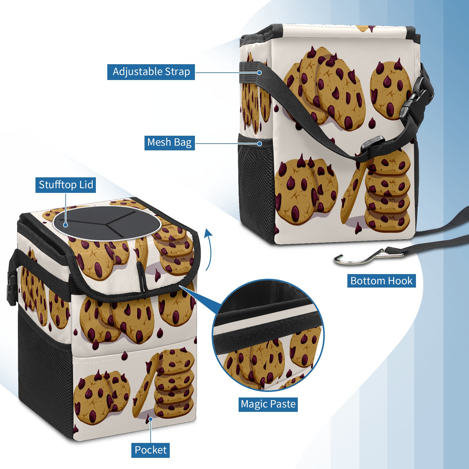 Car Garbage Can — Multi-functional, Lightweight Portable, Reusable Vehicle Trash Can, Waterproof with Sufficient Storage Capacity Chocolate Chip Cookies