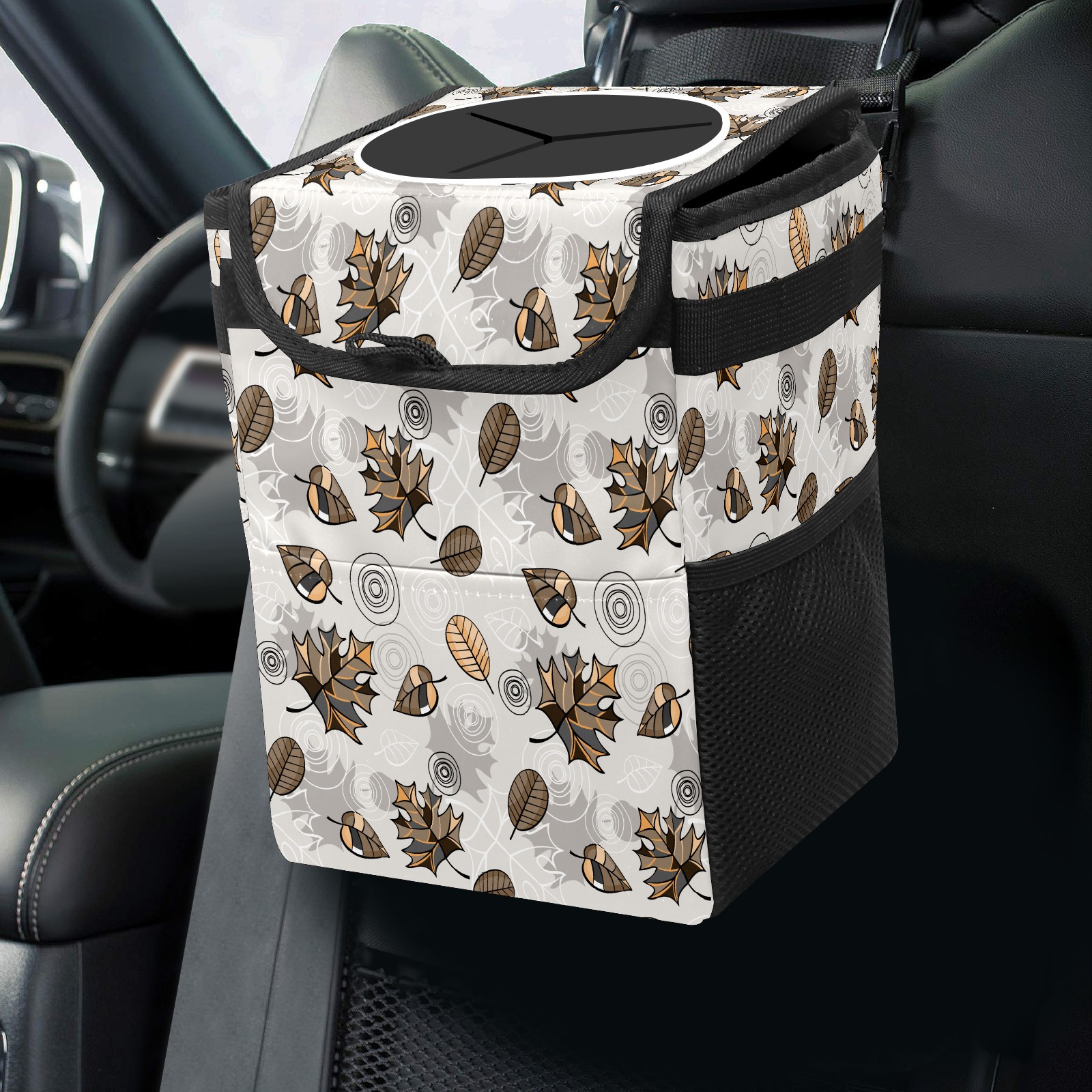 Car Garbage Can — Multi-functional, Lightweight Portable, Reusable Vehicle Trash Can, Waterproof with Sufficient Storage Capacity Brown Maple Leaf