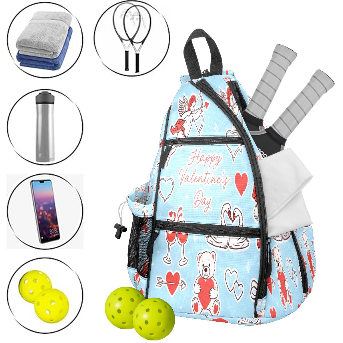 Counullo Pickleball Bag for Women & Men – Lightweight Sports Backpack with Paddle Compartments, Dual Carry Modes, Detachable Zippered Strap, Valentine's Element Blue | Great Gift for Players