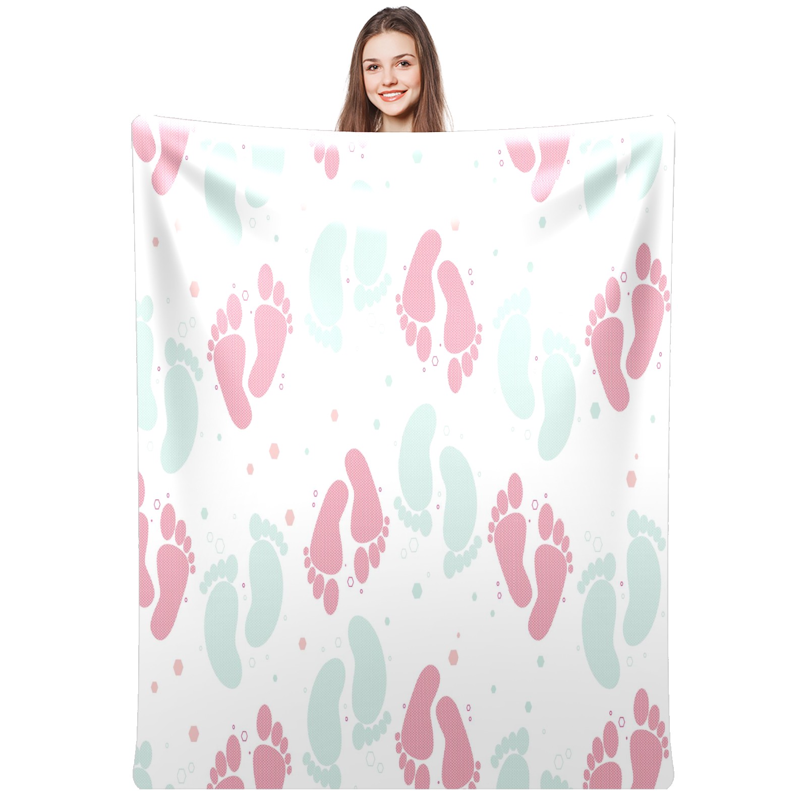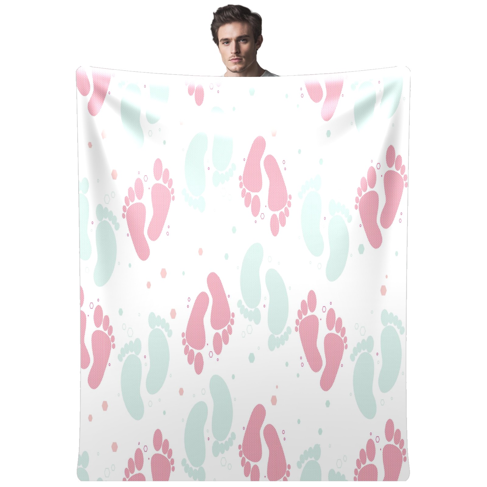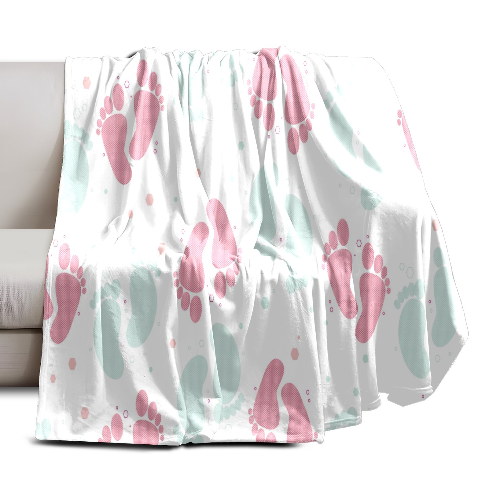 Flannel Blanket, Ultra-Soft Comfortable Home Decor Rug, The Perfect Comfort Gift for Both Men Women, Suitable for Beds, Sofas, Loungewear, and Travel 30x39in(Baby Footprint Pattern Pink Blue)