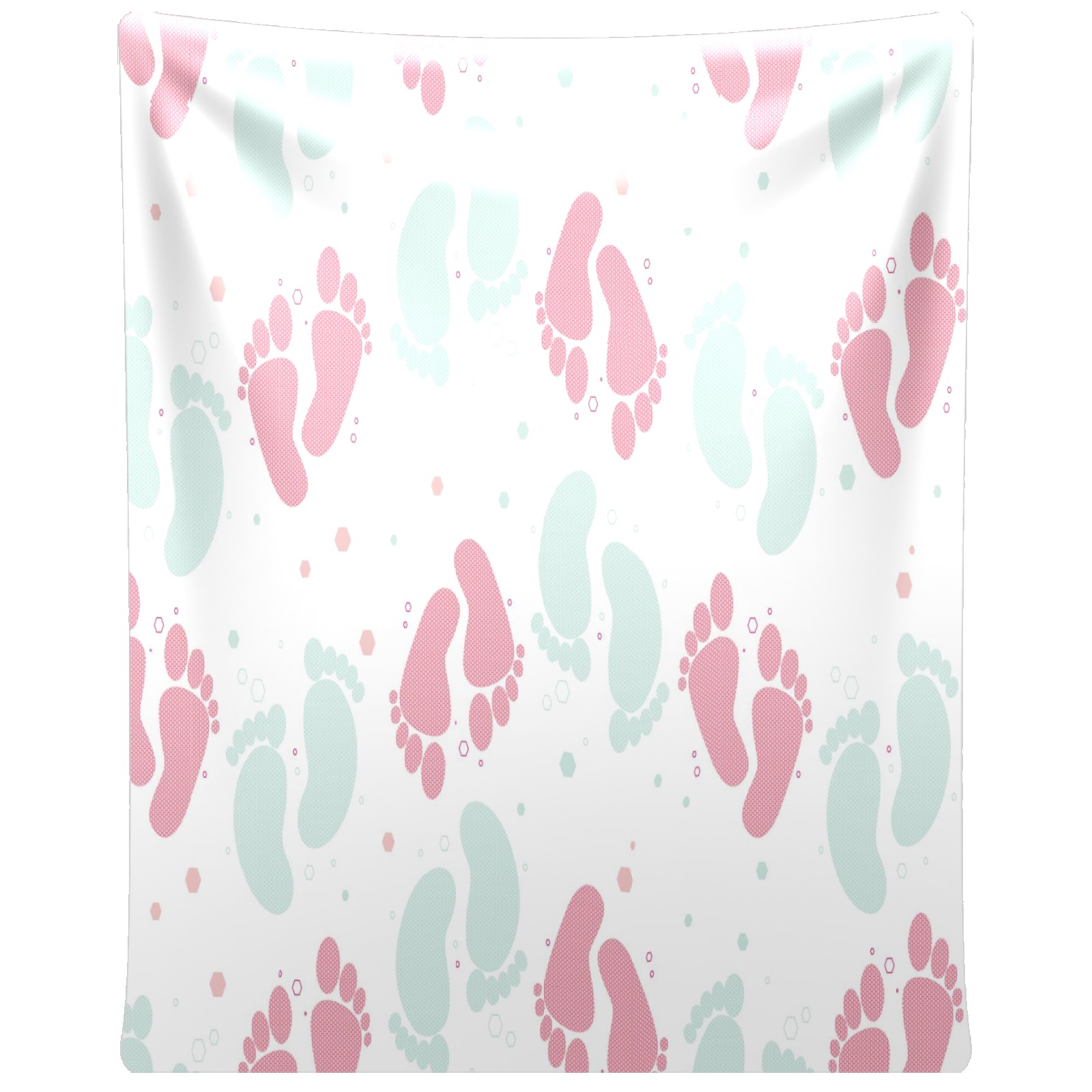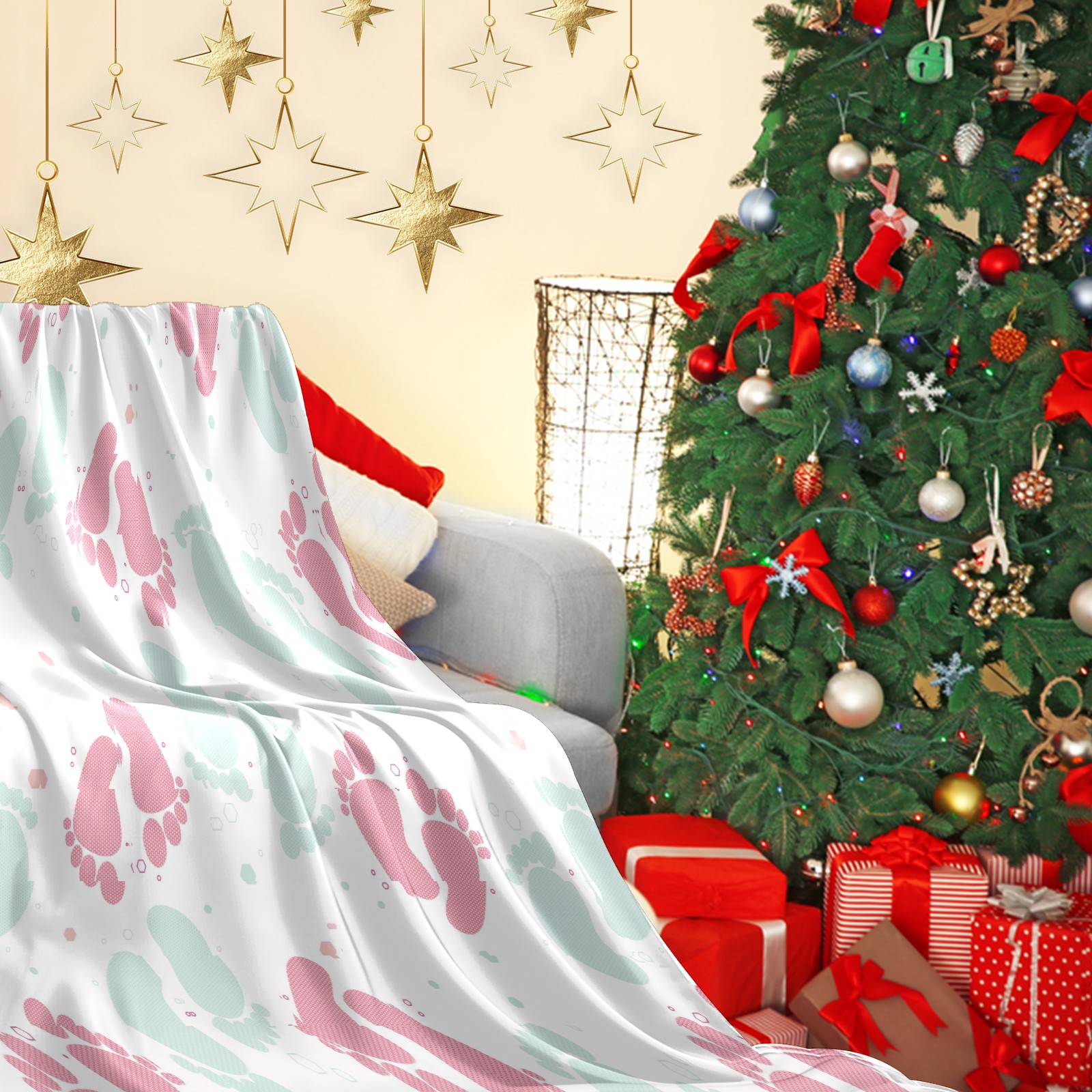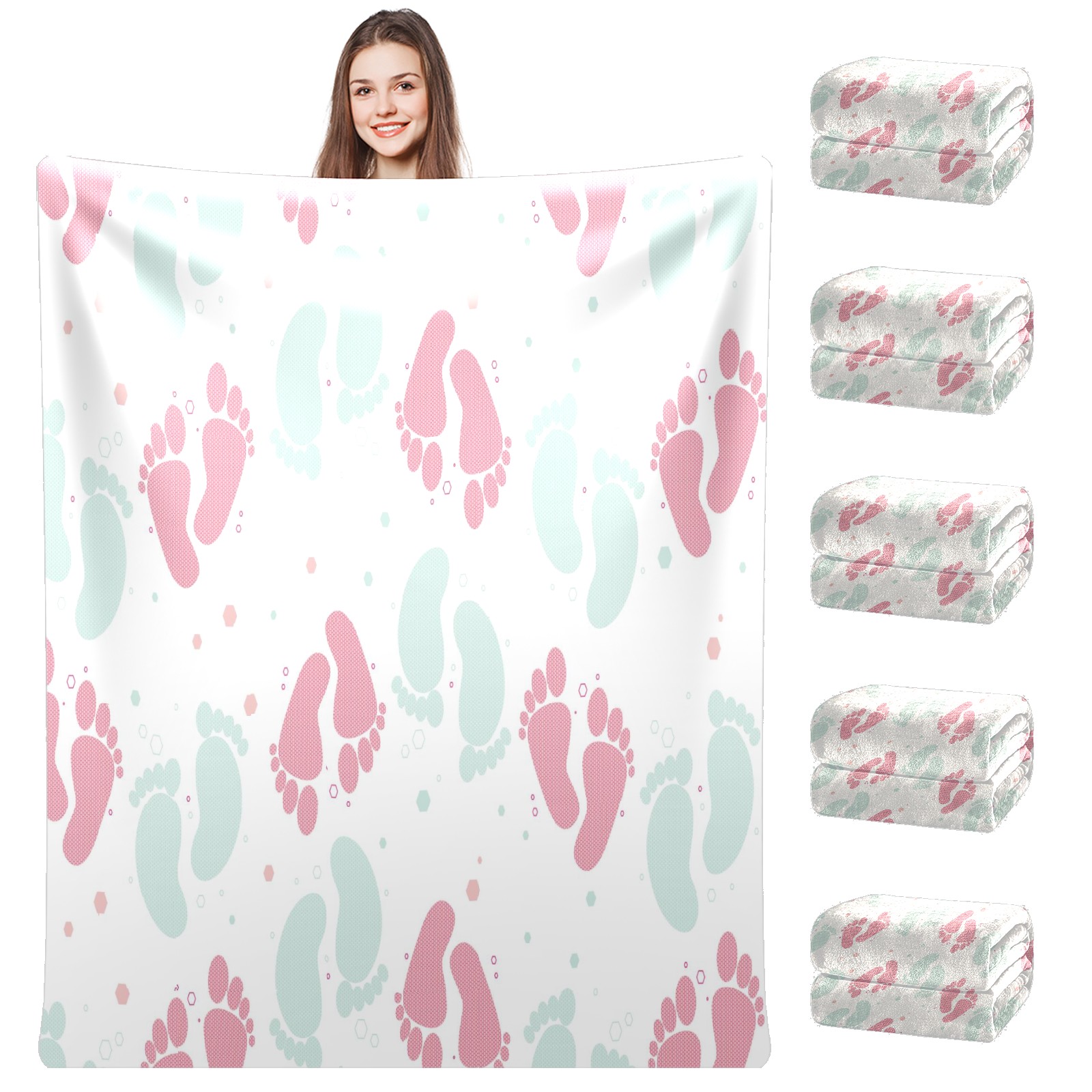 Flannel Blanket, Ultra-Soft Comfortable Home Decor Rug, The Perfect Comfort Gift for Both Men Women, Suitable for Beds, Sofas, Loungewear, and Travel 30x39in(Baby Footprint Pattern Pink Blue)