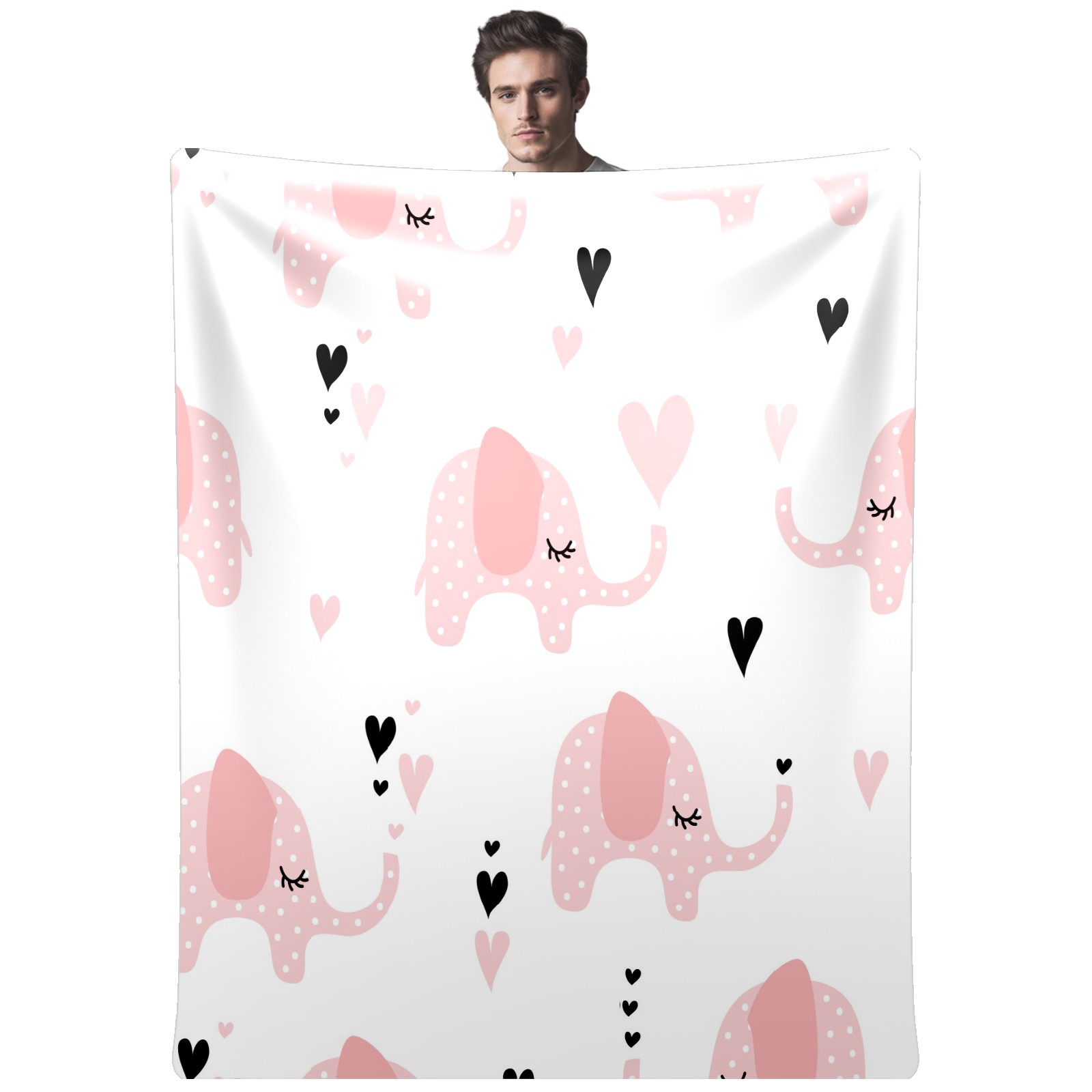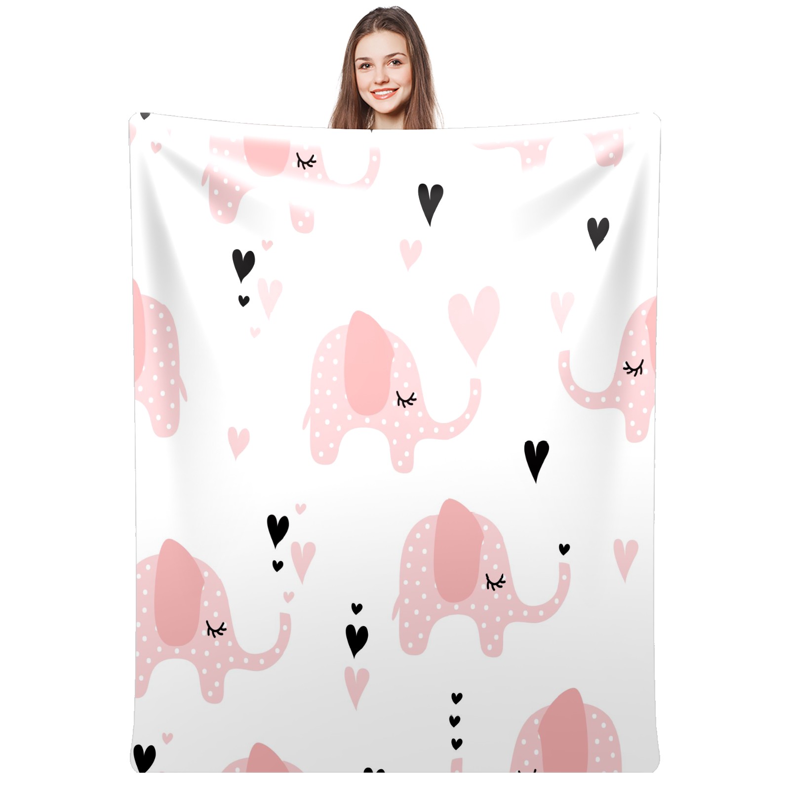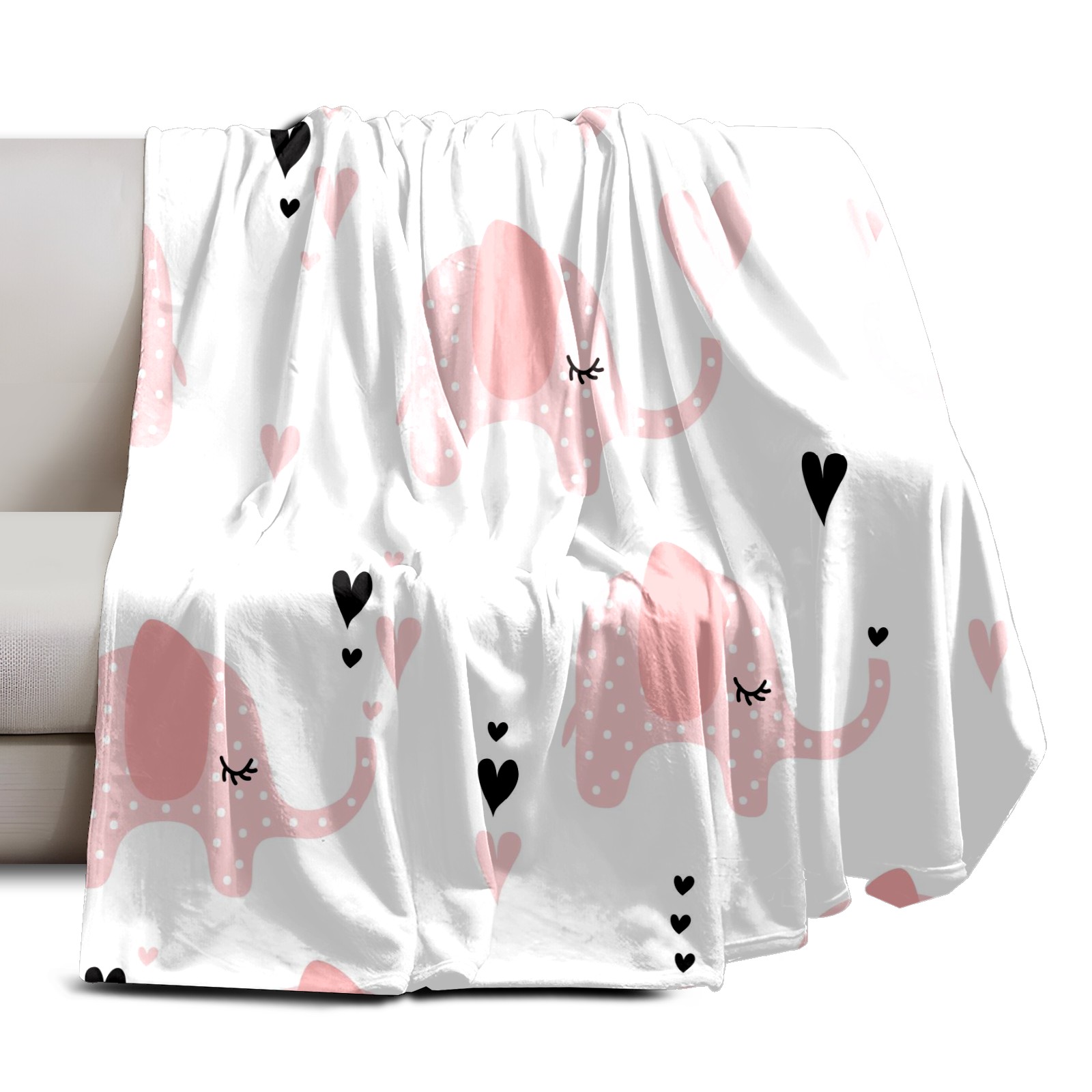 Flannel Blanket, Ultra-Soft Comfortable Home Decor Rug, The Perfect Comfort Gift for Both Men Women, Suitable for Beds, Sofas, Loungewear, and Travel 30x39in(Pink Elephants Black Heart Pattern)