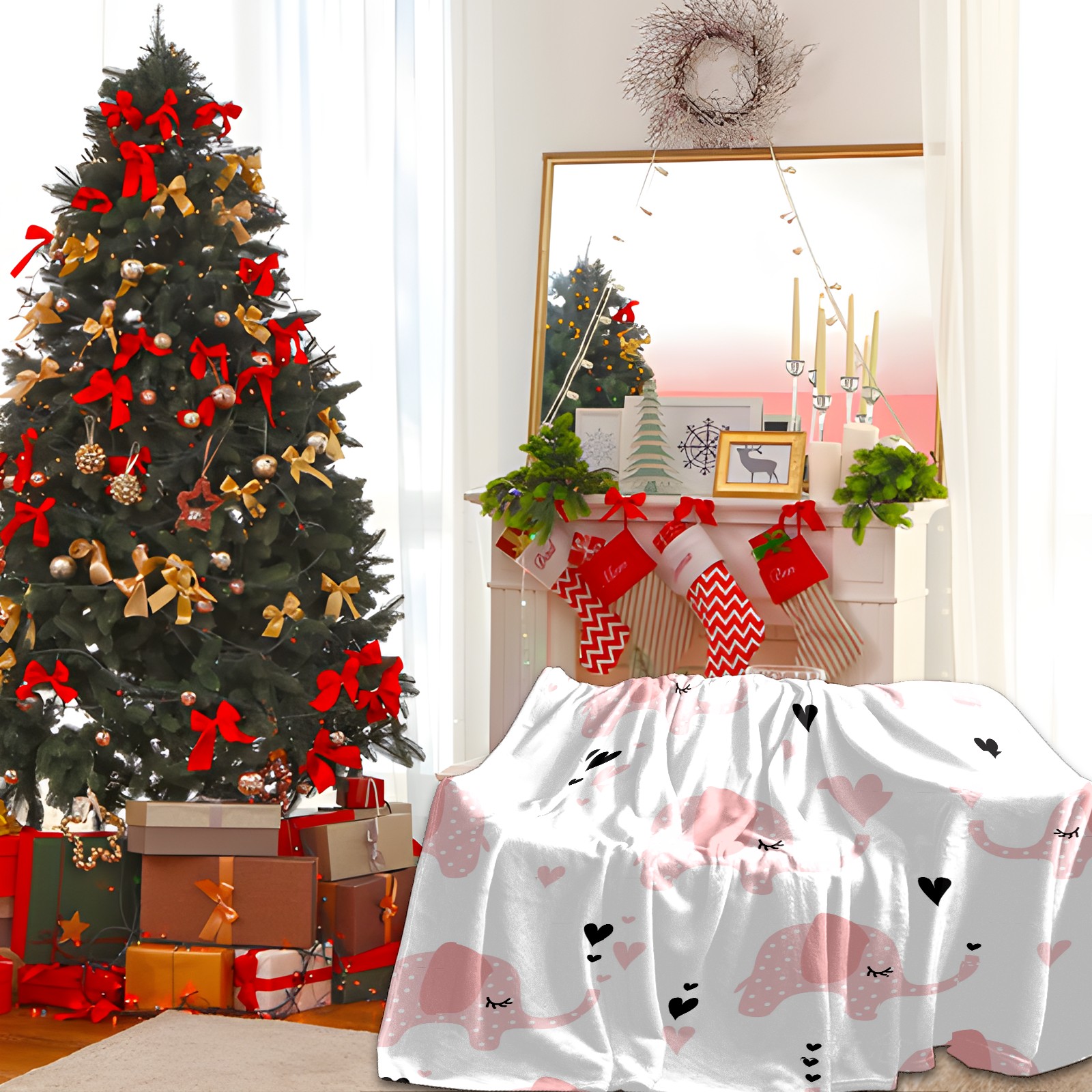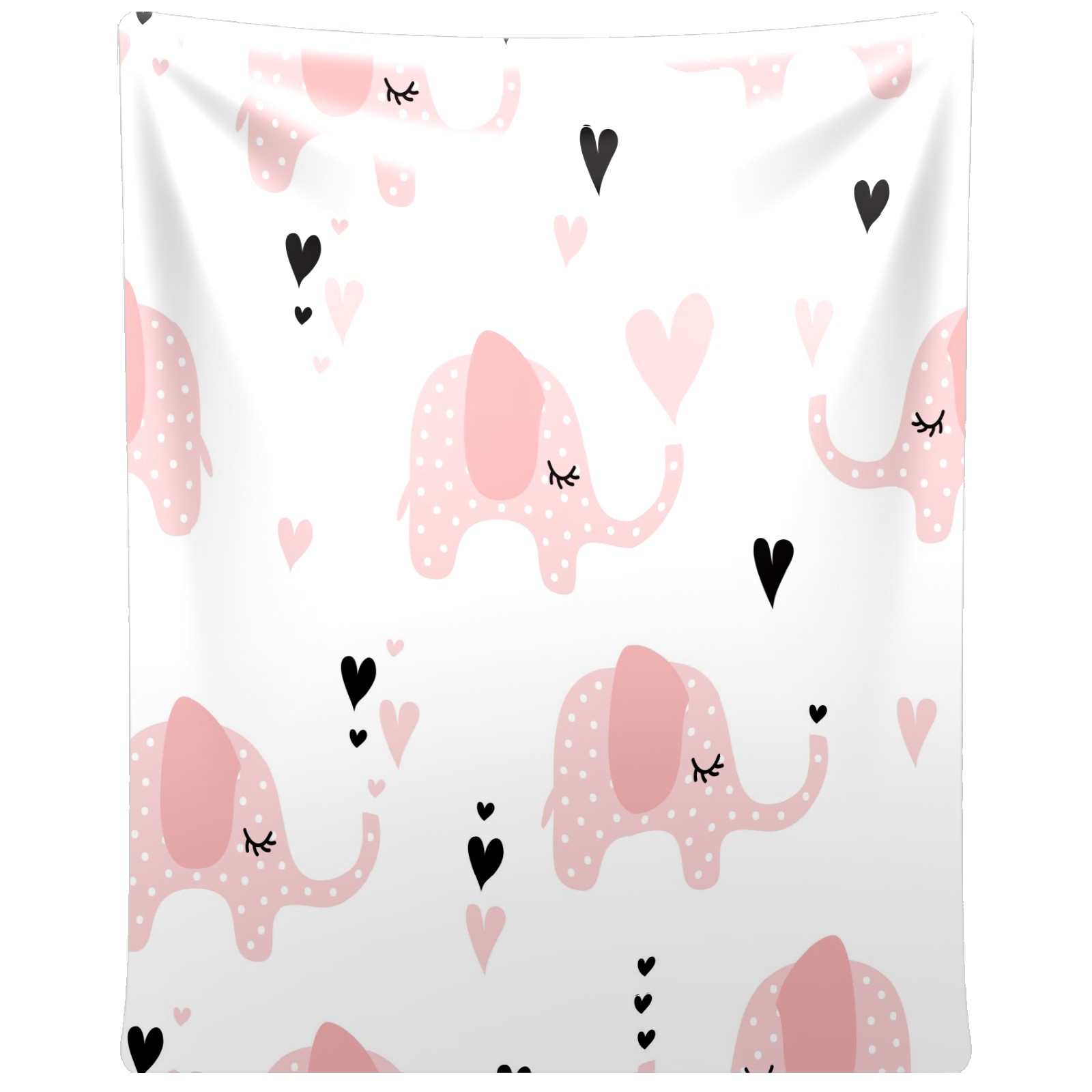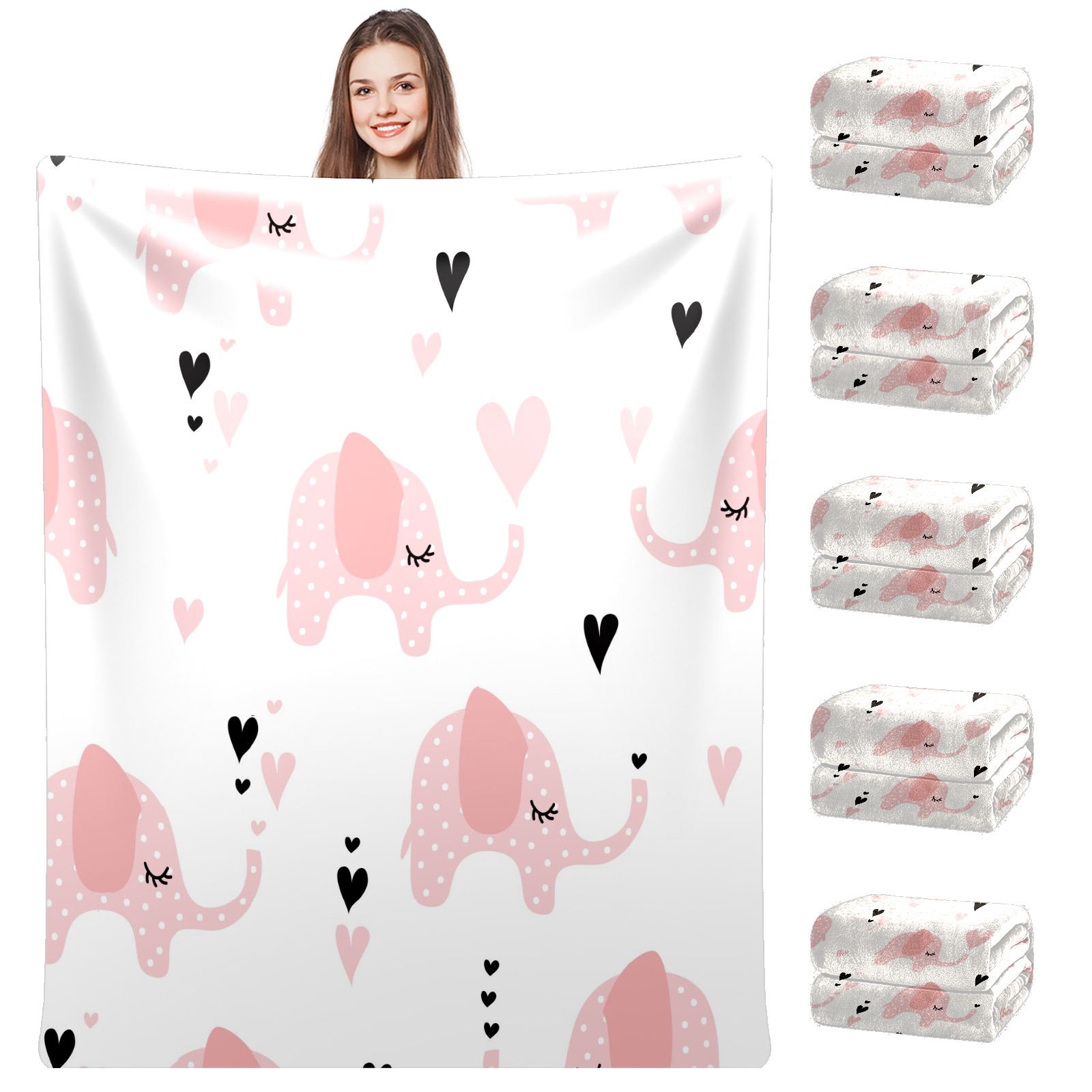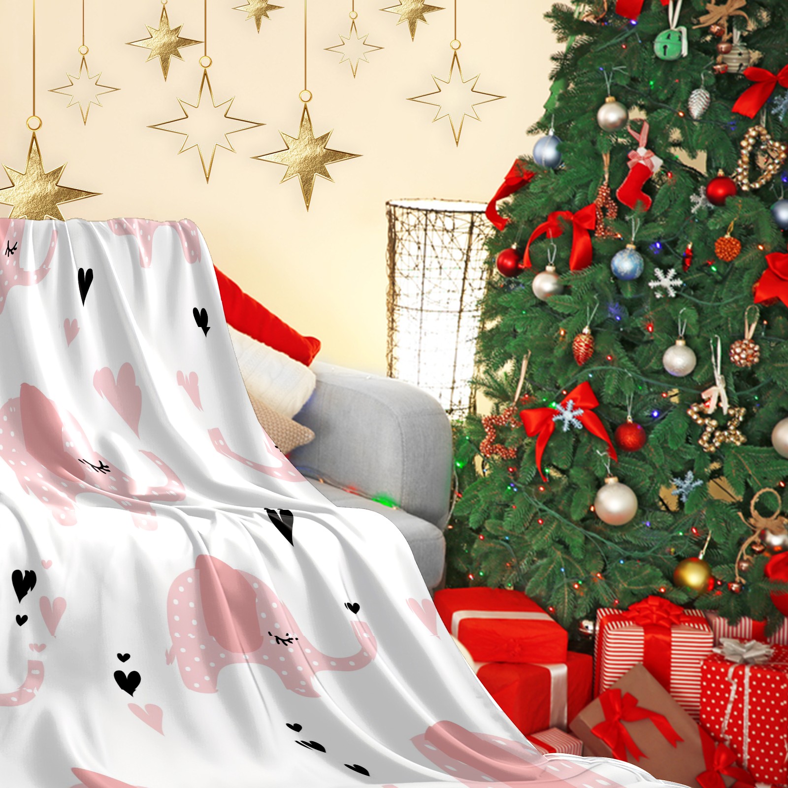 Flannel Blanket, Ultra-Soft Comfortable Home Decor Rug, The Perfect Comfort Gift for Both Men Women, Suitable for Beds, Sofas, Loungewear, and Travel 30x39in(Pink Elephants Black Heart Pattern)