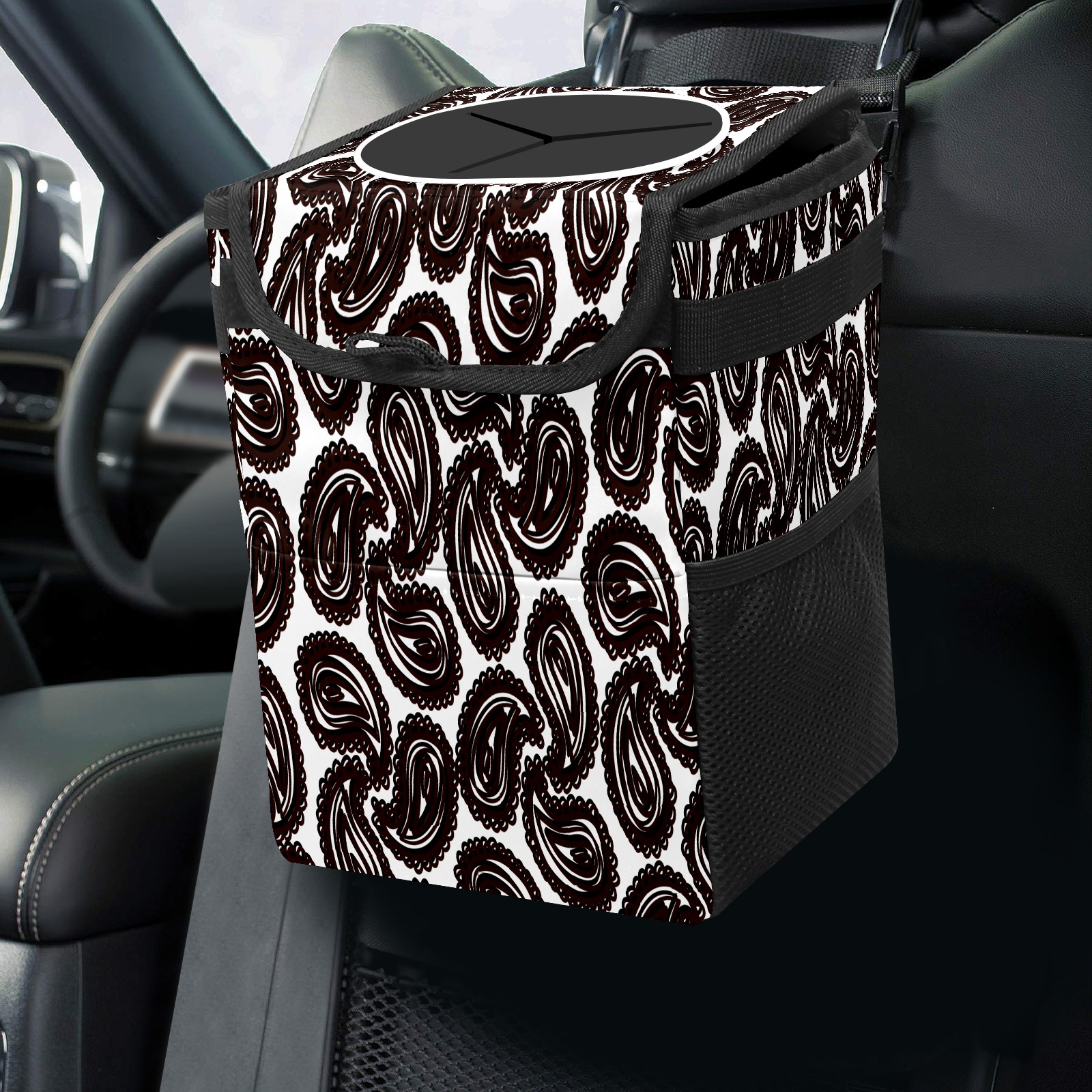 Car Garbage Can — Multi-functional, Lightweight Portable, Reusable Vehicle Trash Can, Waterproof with Sufficient Storage Capacity Black Ham Pattern