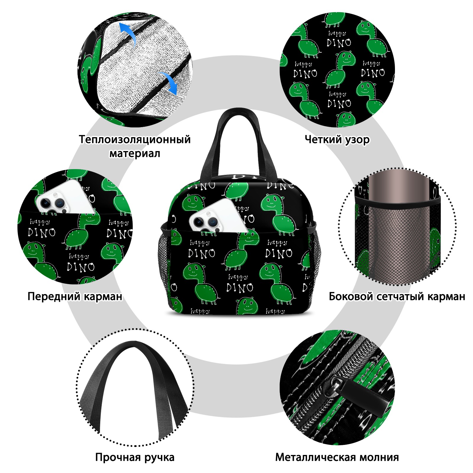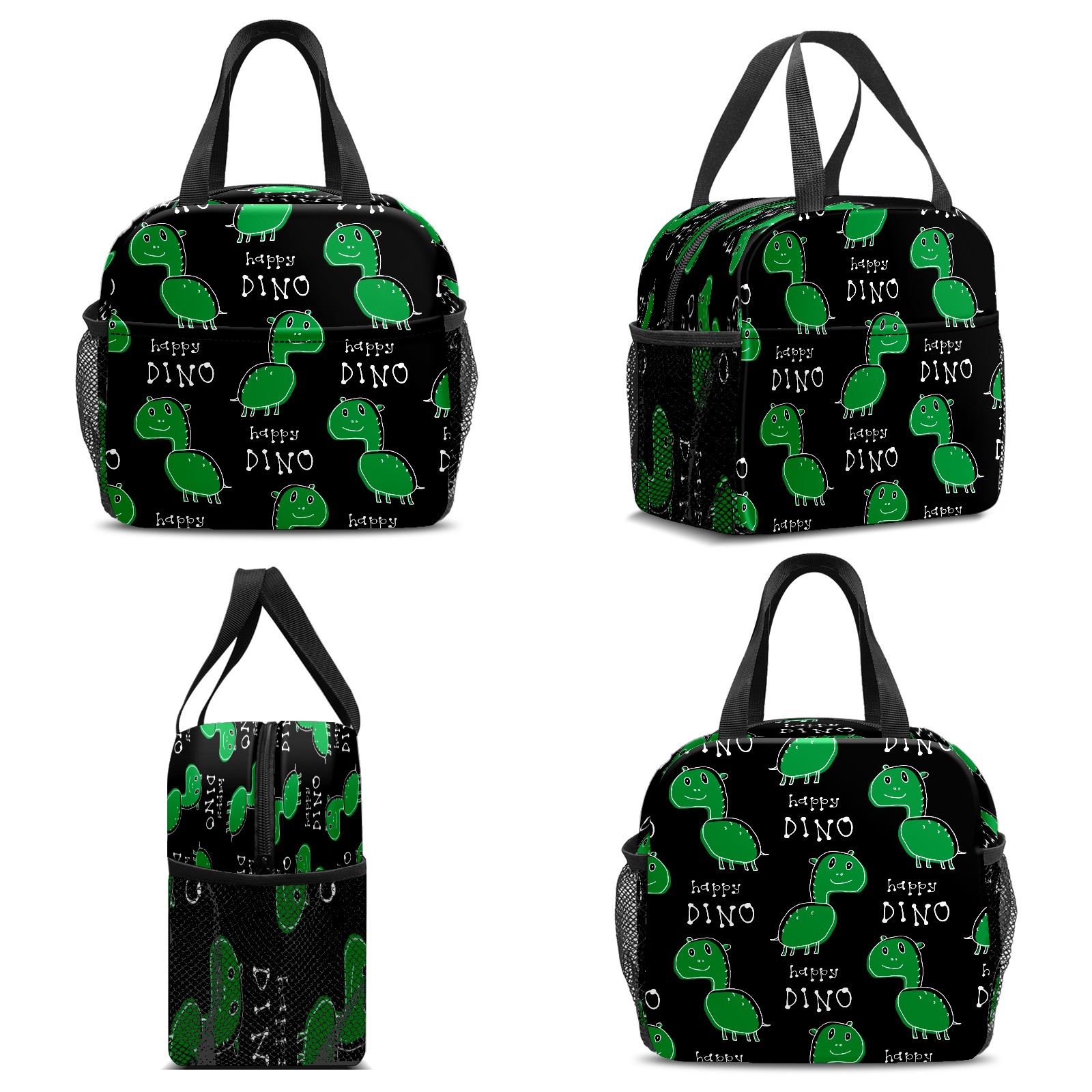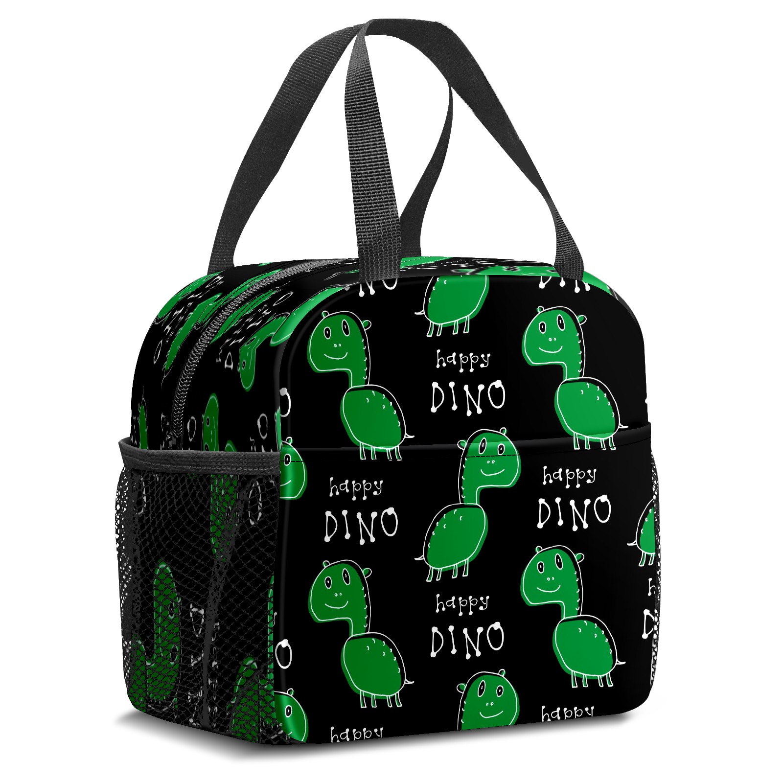 小餐包 Cute Green Doodle Dinosaur Happy Dino Black