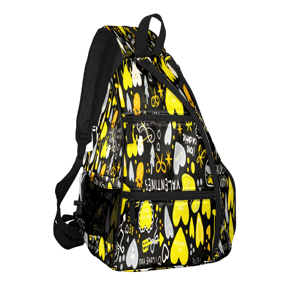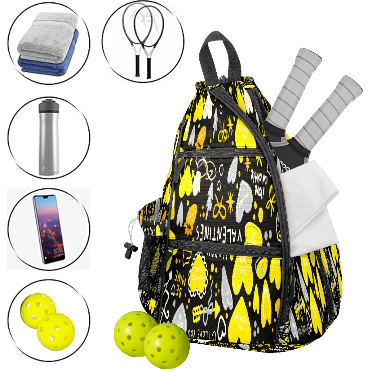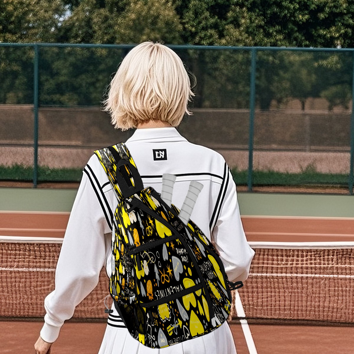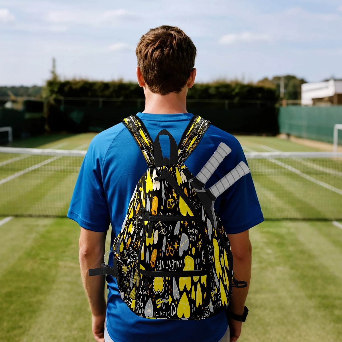 Counullo Pickleball Bag for Women & Men – Lightweight Sports Backpack with Paddle Compartments, Dual Carry Modes, Detachable Zippered Strap, Dynamic LOVE Black | Great Gift for Players