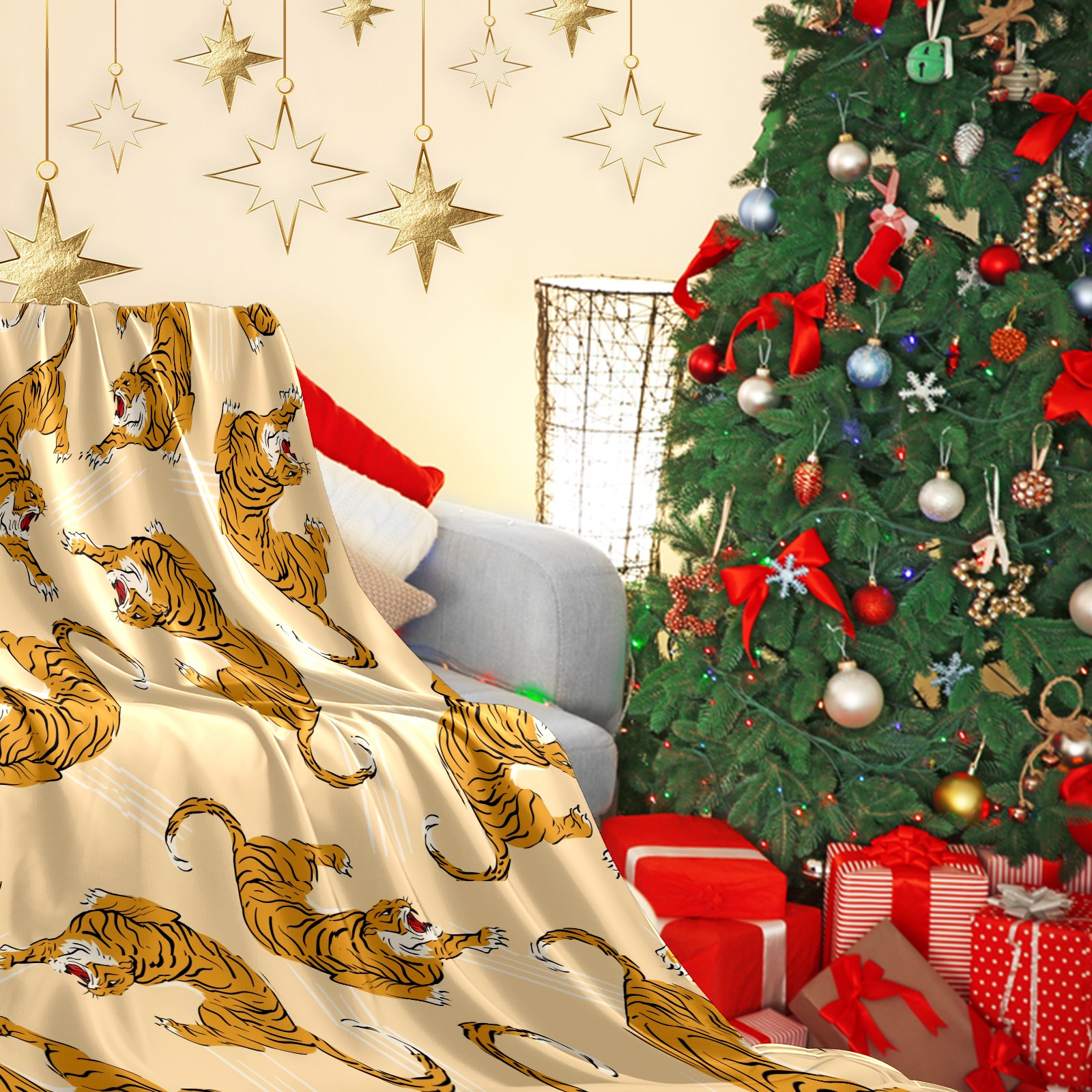 Flannel Blanket, Ultra-Soft Comfortable Home Decor Rug, The Perfect Comfort Gift for Both Men Women, Suitable for Beds, Sofas, Loungewear, and Travel 30x39in(Vintage Tiger Animal)