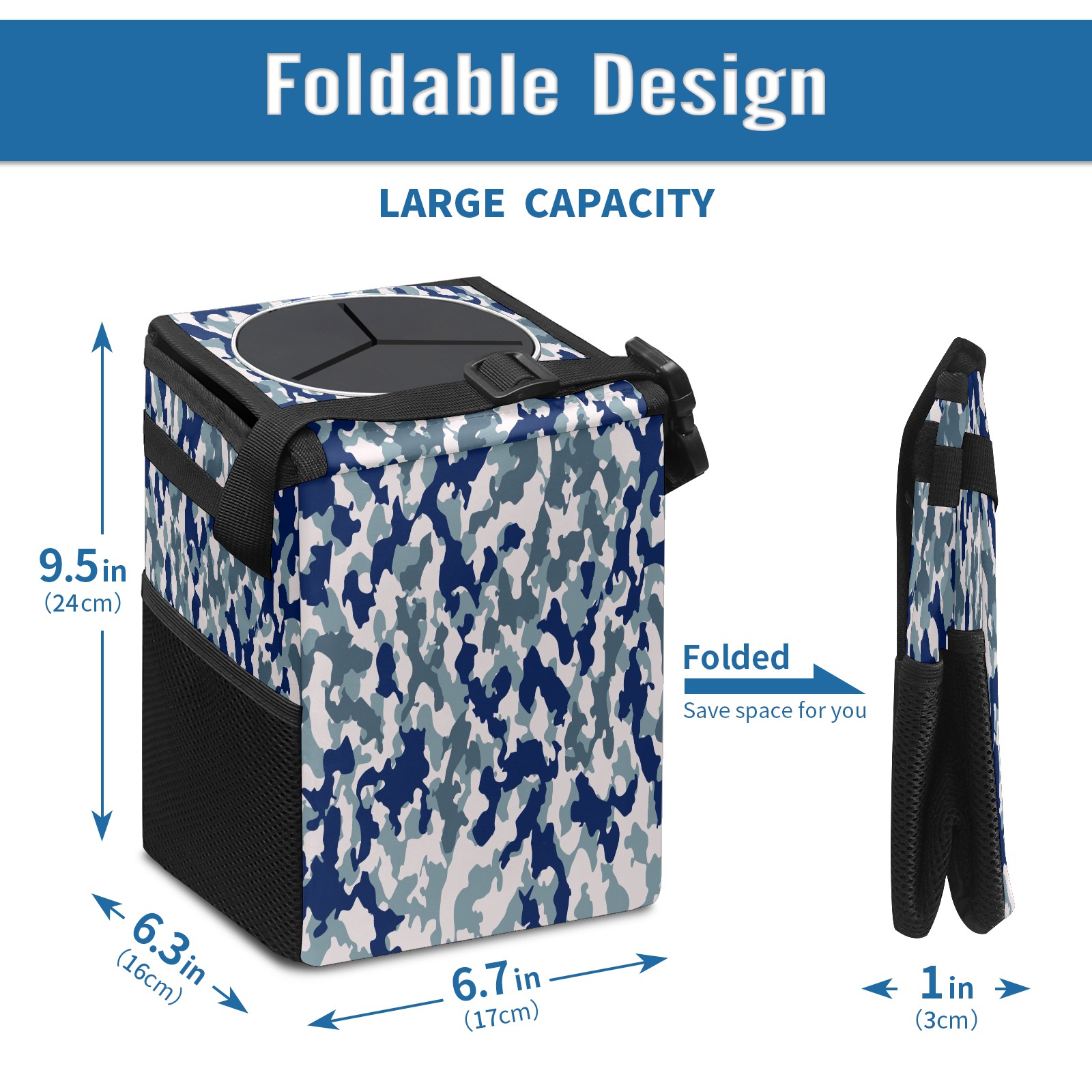 Car Garbage Can — Multi-functional, Lightweight Portable, Reusable Vehicle Trash Can, Waterproof with Sufficient Storage Capacity Blue Camouflage