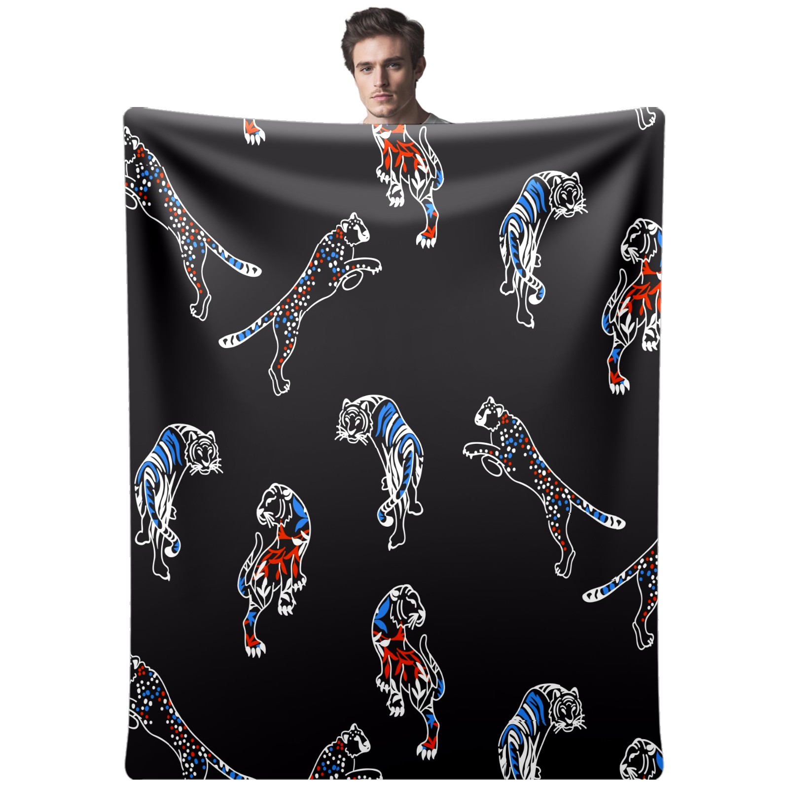 Flannel Blanket, Ultra-Soft Comfortable Home Decor Rug, The Perfect Comfort Gift for Both Men Women, Suitable for Beds, Sofas, Loungewear, and Travel 30x39in(White Line Tiger)