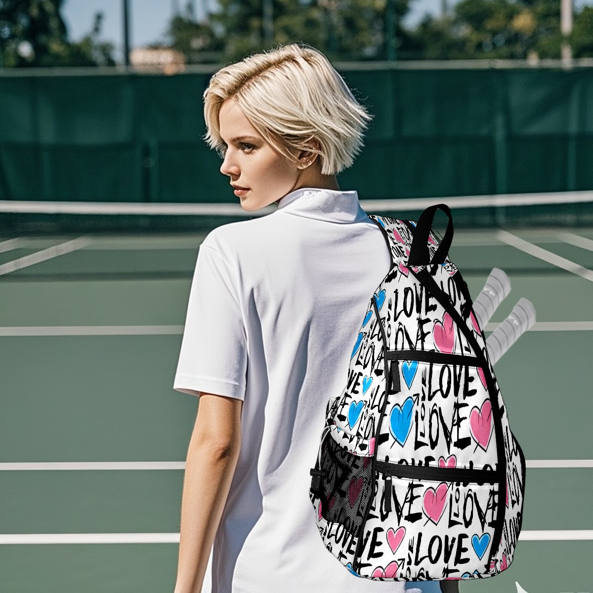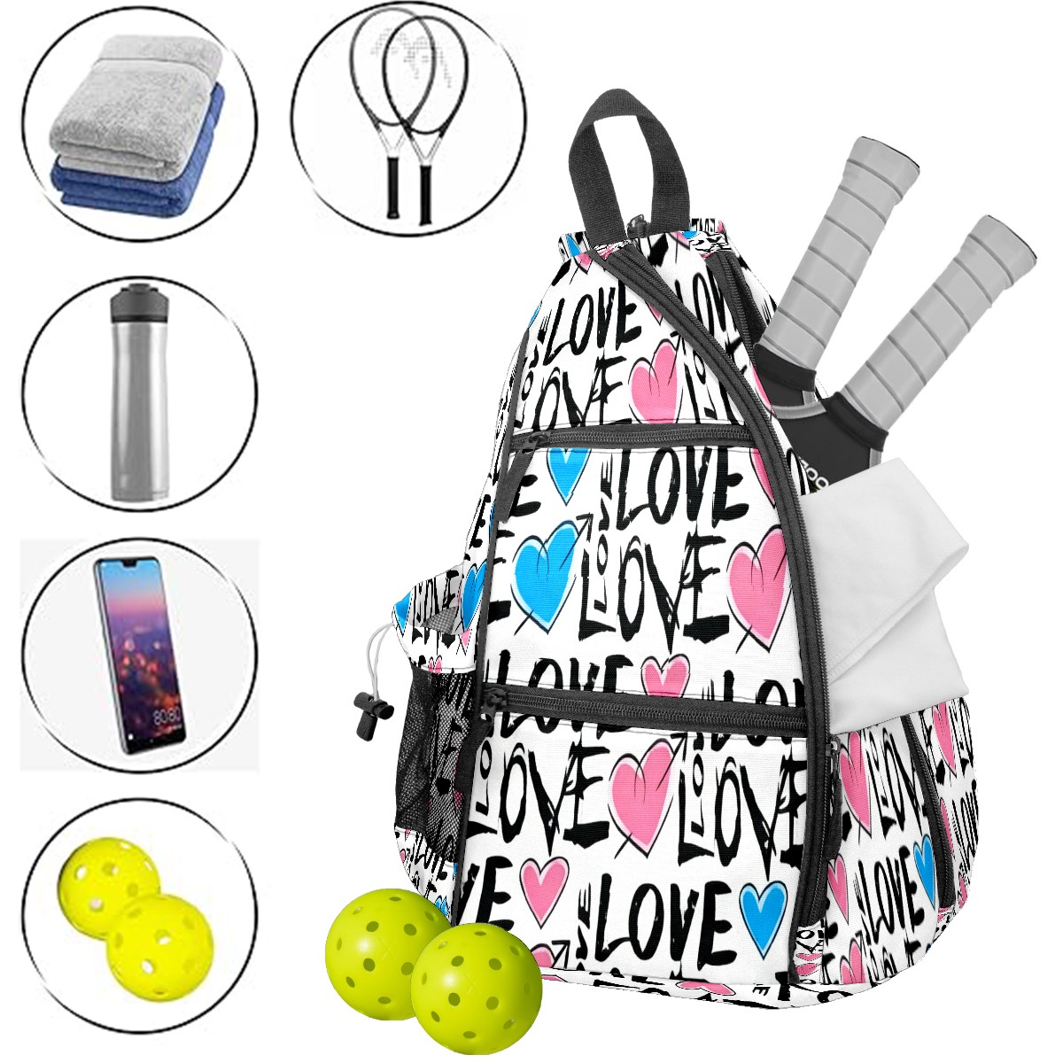 Counullo Pickleball Bag for Women & Men – Lightweight Sports Backpack with Paddle Compartments, Dual Carry Modes, Detachable Zippered Strap, Fresh LOVE White | Great Gift for Players