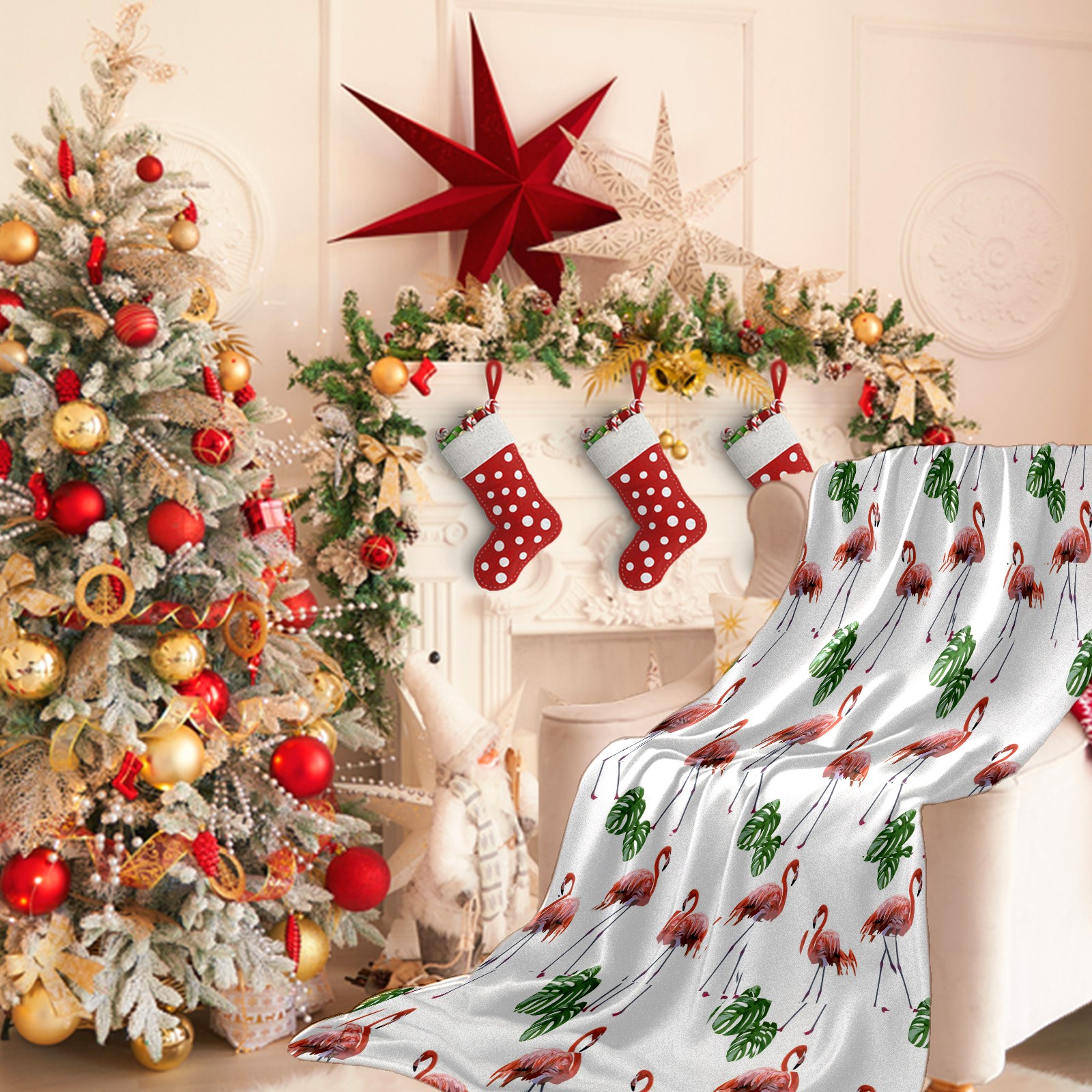 Flannel Blanket, Ultra-Soft Comfortable Home Decor Rug, The Perfect Comfort Gift for Both Men Women, Suitable for Beds, Sofas, Loungewear, and Travel 30x39in(Flamingos Leaf Animal)