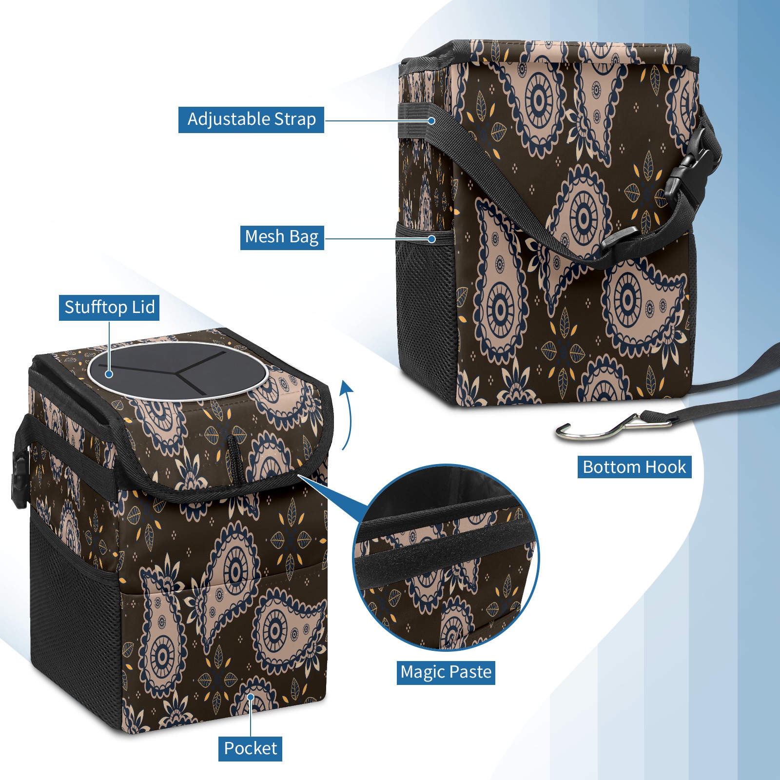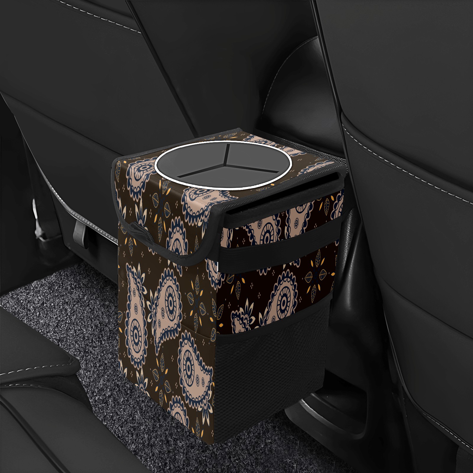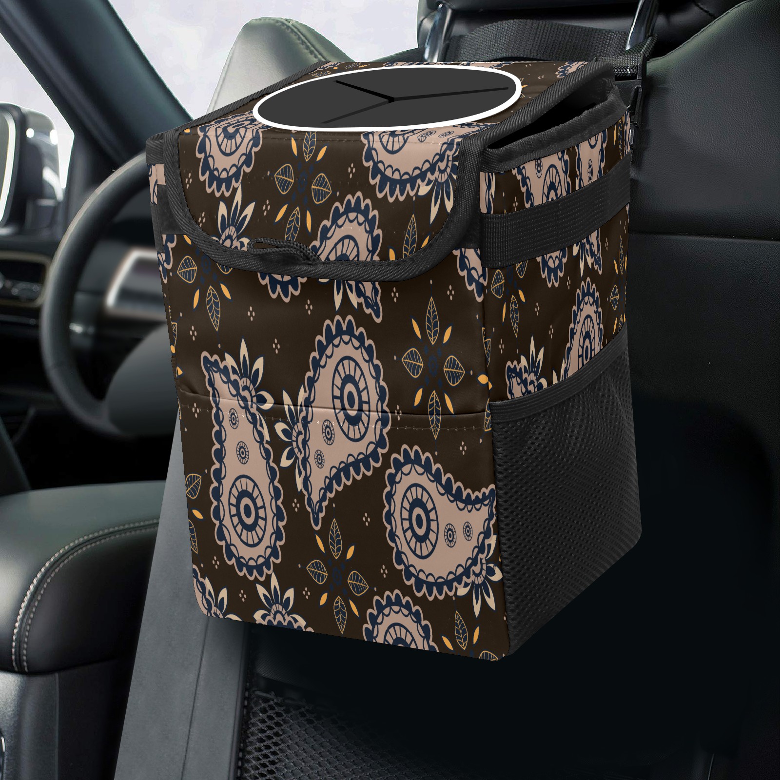 • <p>Keep your car neat with this practical car trash can—built for durability, versatility, and on-the-go convenience! Crafted from quality twill fabric with a waterproof lining, it prevents leaks, keeping seats/floors clean. Clean easily: empty directly or secure a disposable bag with side clips. Adjustable pull cord fits floor, seat, or headrest. 9.5x6.3x6.7 inches, ample space for daily trash, folds flat for storage. More than a trash can, it doubles as a storage bag for cups, toys, docs, and small gadgets—must-have car interior accessory. Installs in seconds on seats, console, or gear shift; adjustable straps keep it stable, no slipping on bumpy roads. Perfect gift for new car owners!</p>