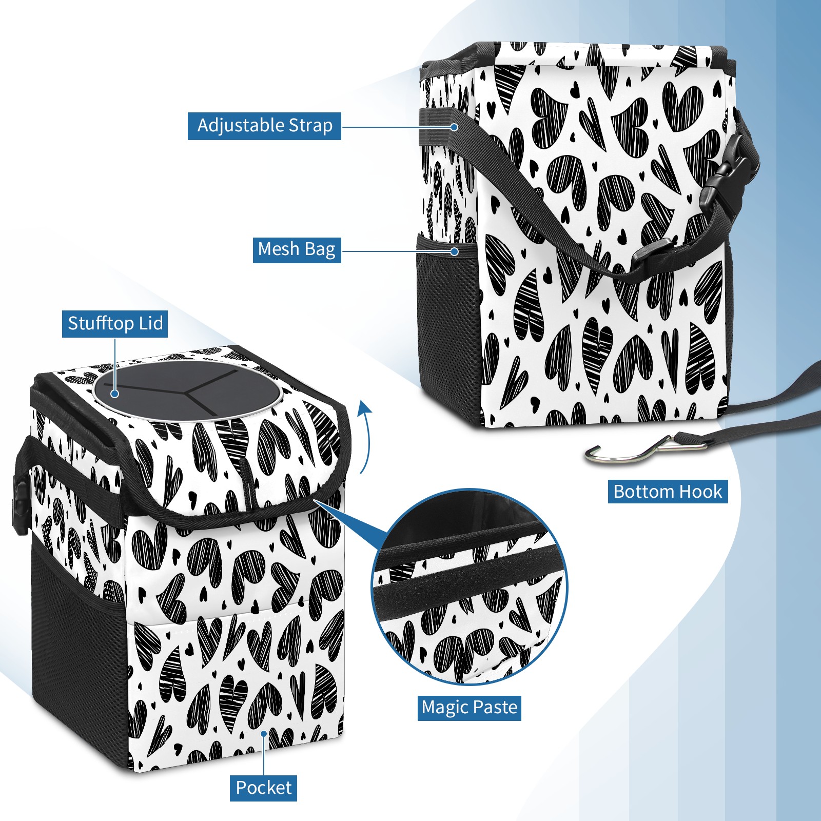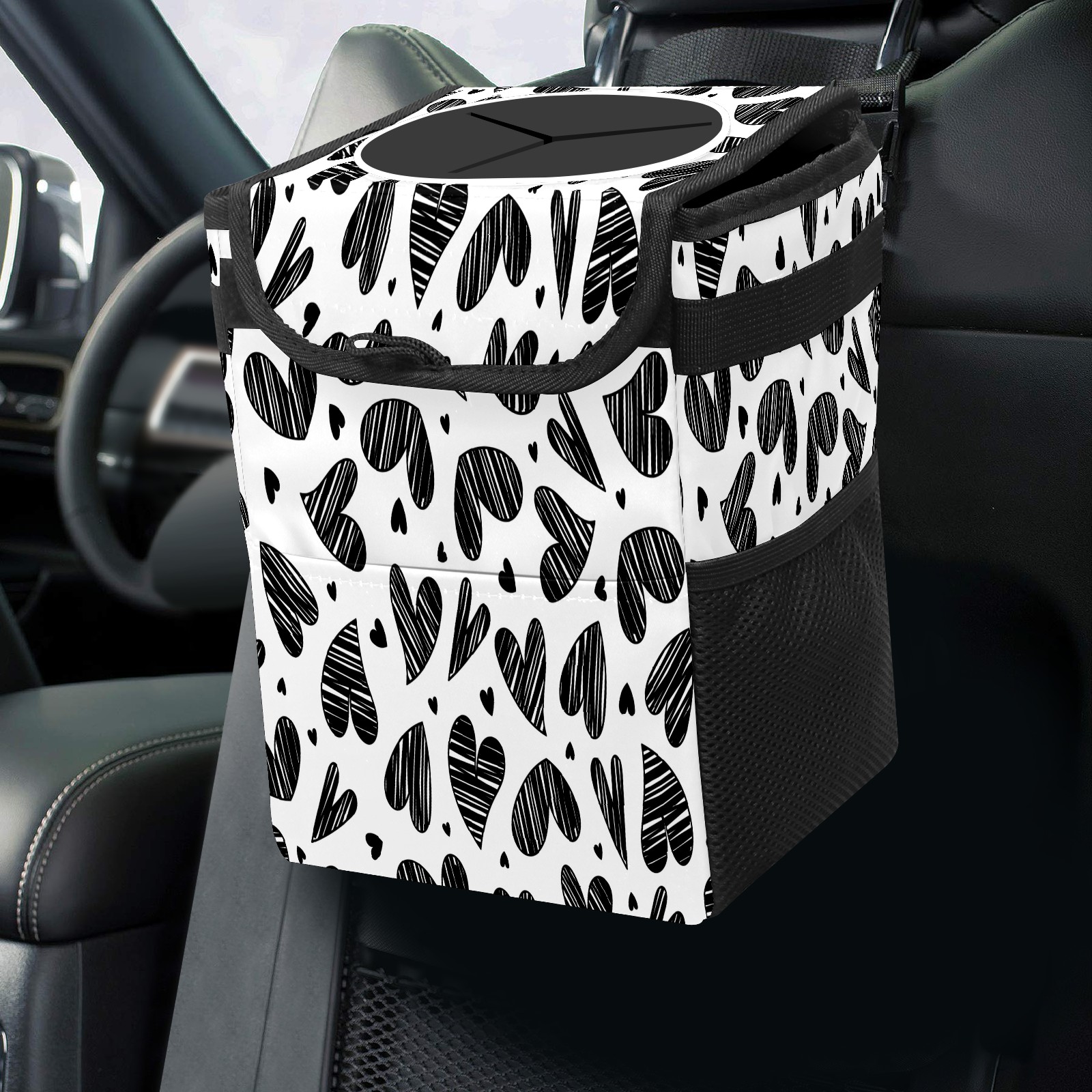 Car Garbage Can — Multi-functional, Lightweight Portable, Reusable Vehicle Trash Can, Waterproof with Sufficient Storage Capacity Black Heart