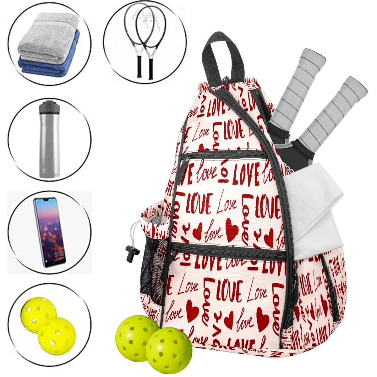Counullo Pickleball Bag for Women & Men – Lightweight Sports Backpack with Paddle Compartments, Dual Carry Modes, Detachable Zippered Strap, Fiery LOVE Text Red | Great Gift for Players
