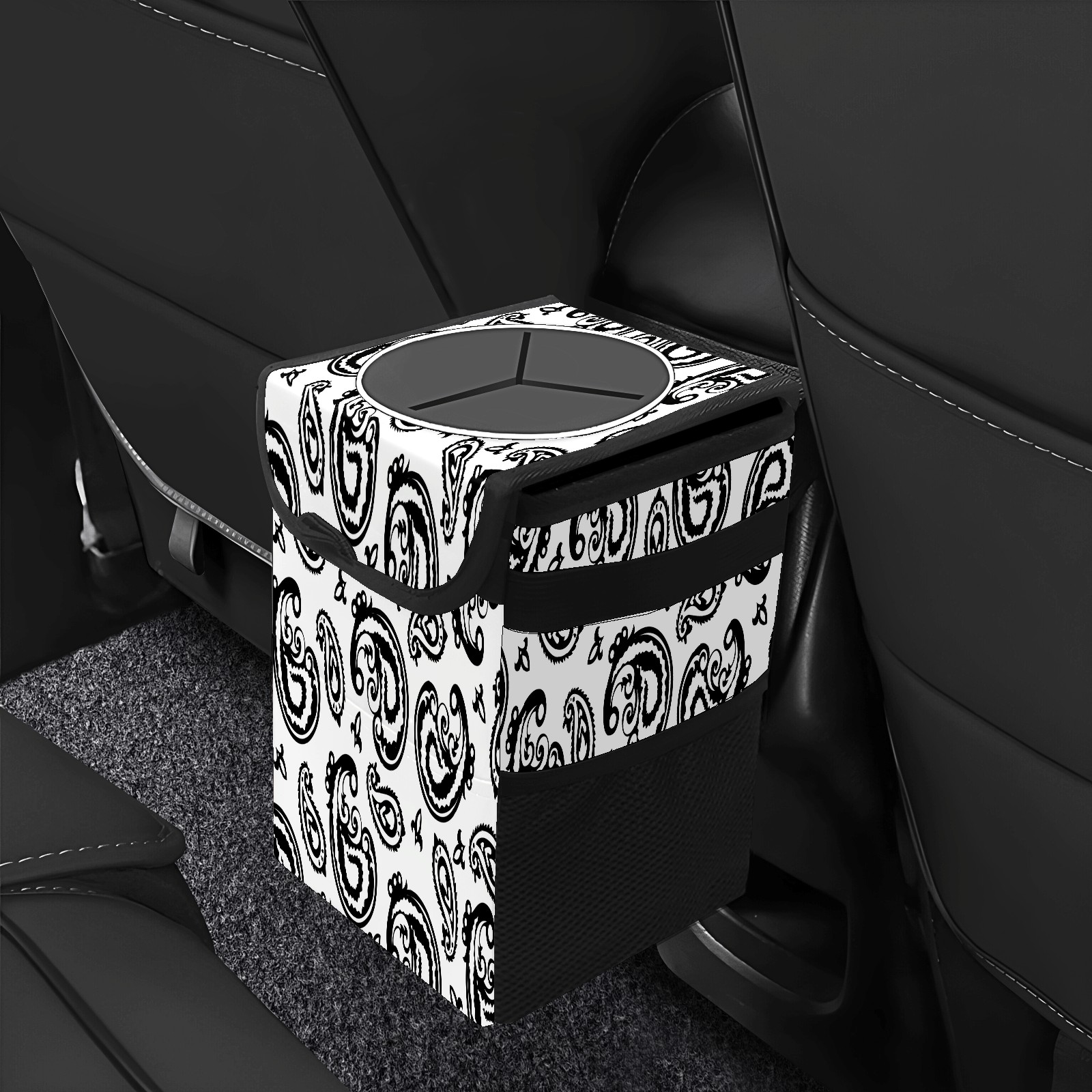 Car Garbage Can — Multi-functional, Lightweight Portable, Reusable Vehicle Trash Can, Waterproof with Sufficient Storage Capacity Black And White Water Drop Pattern
