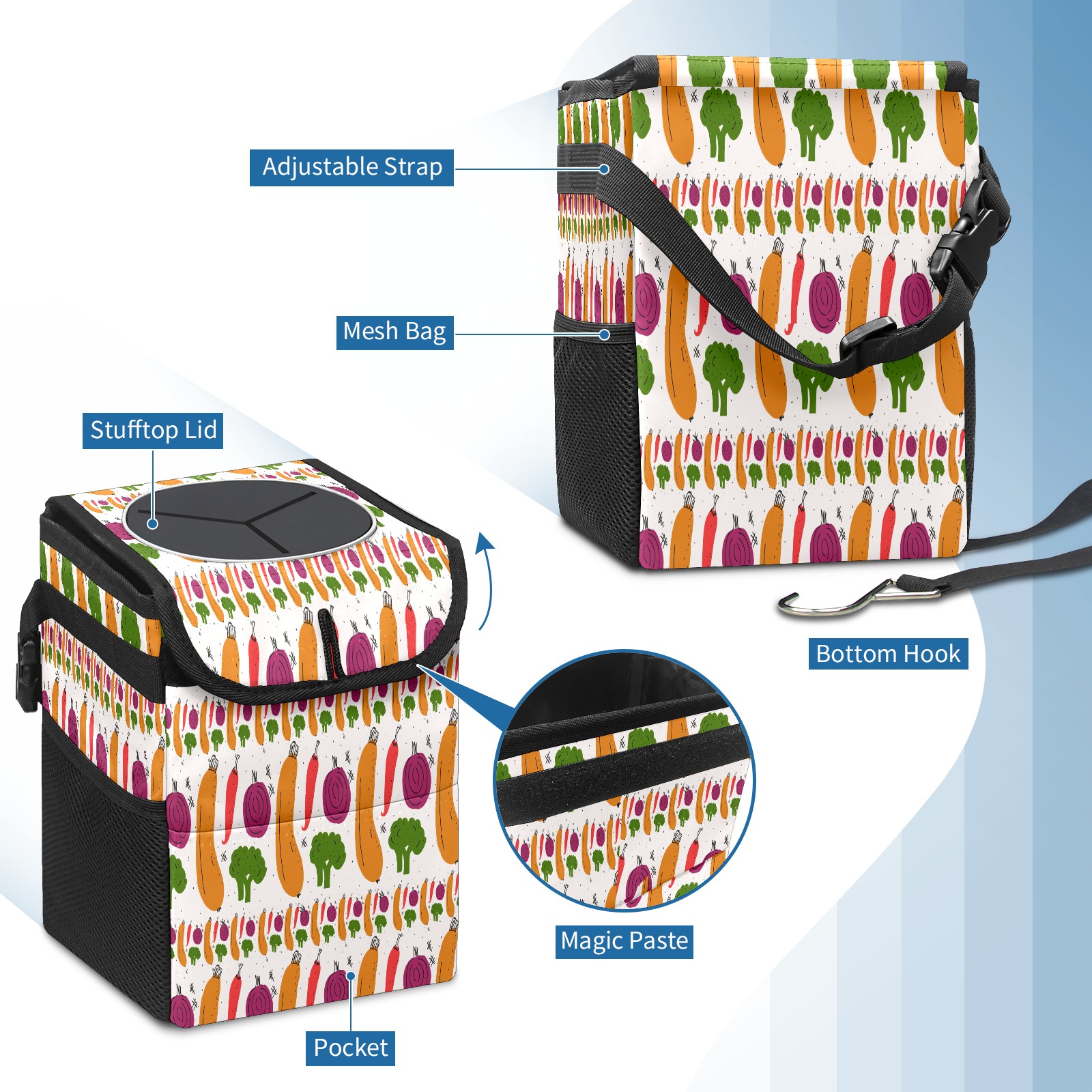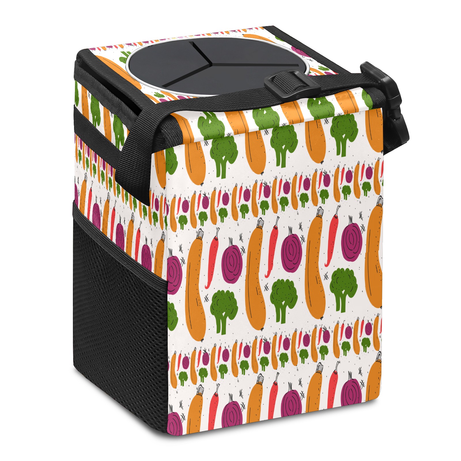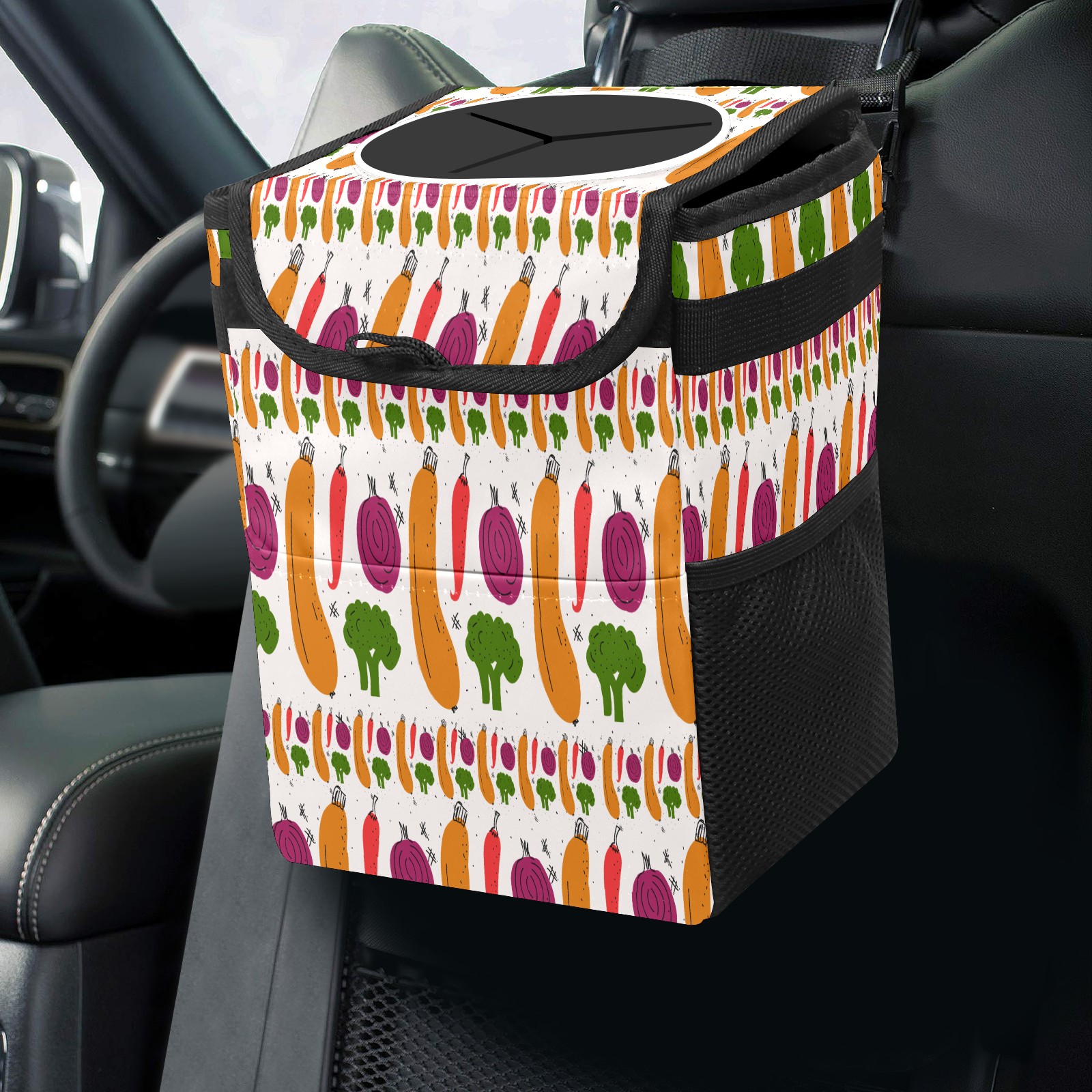 Car Garbage Can — Multi-functional, Lightweight Portable, Reusable Vehicle Trash Can, Waterproof with Sufficient Storage Capacity Vegetables Pattern