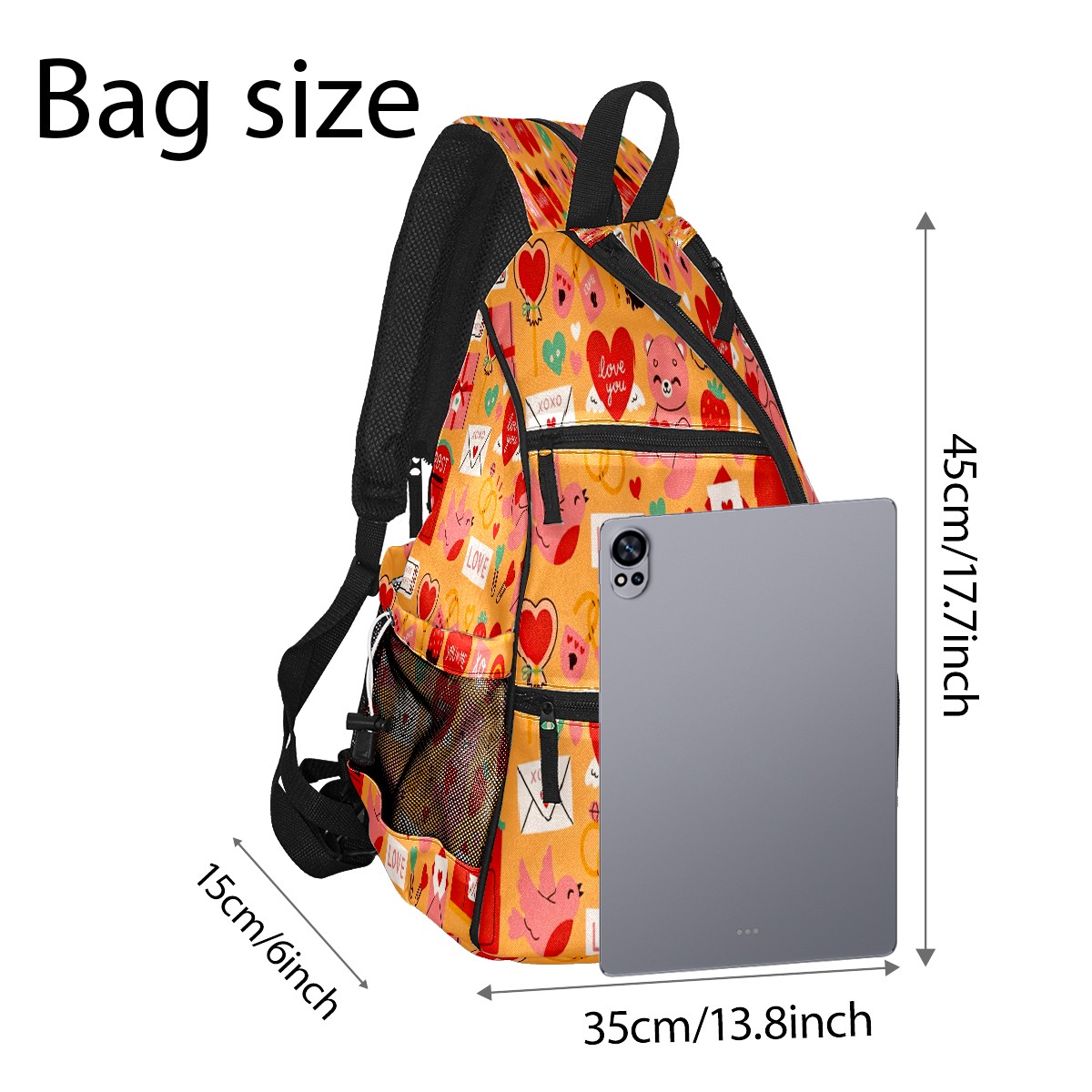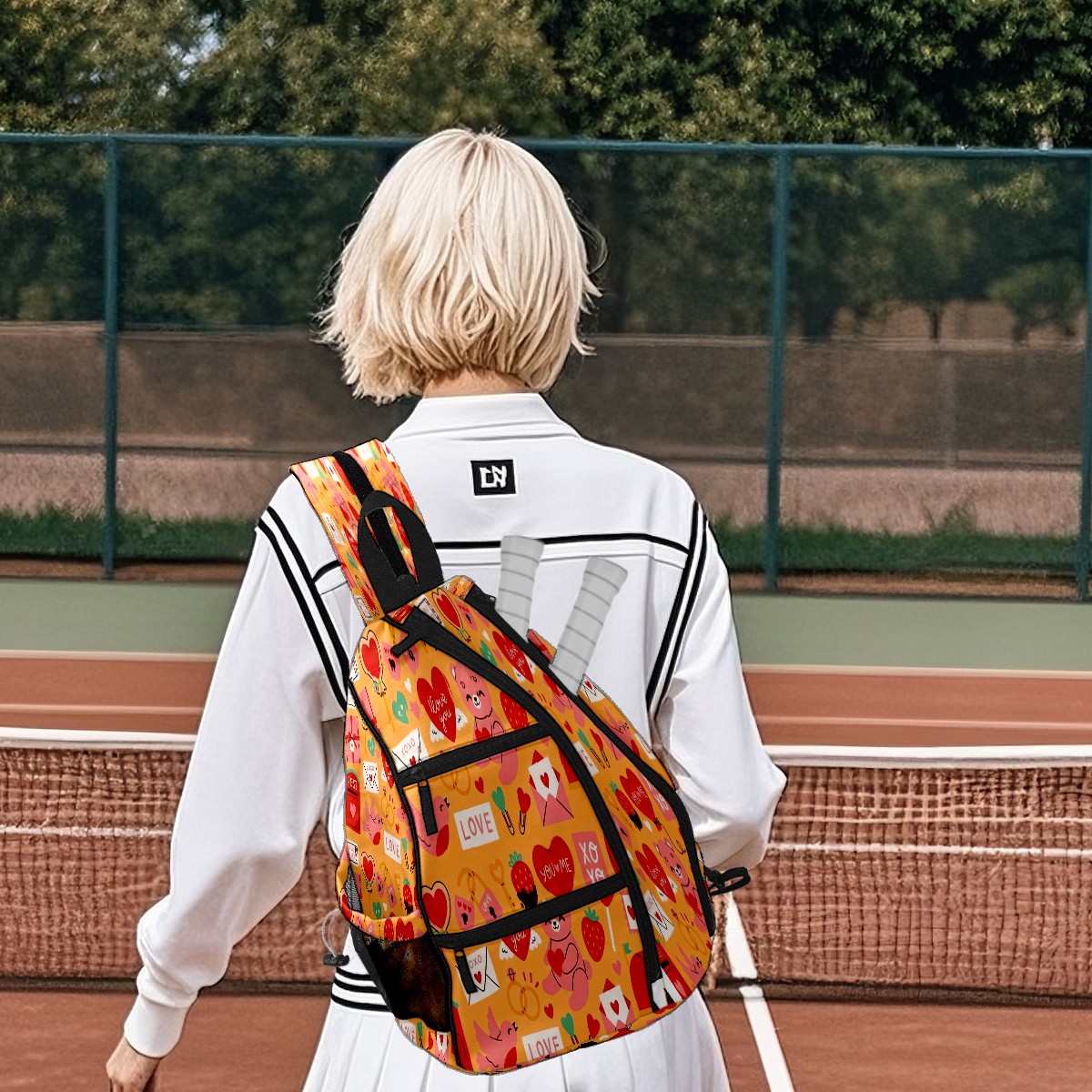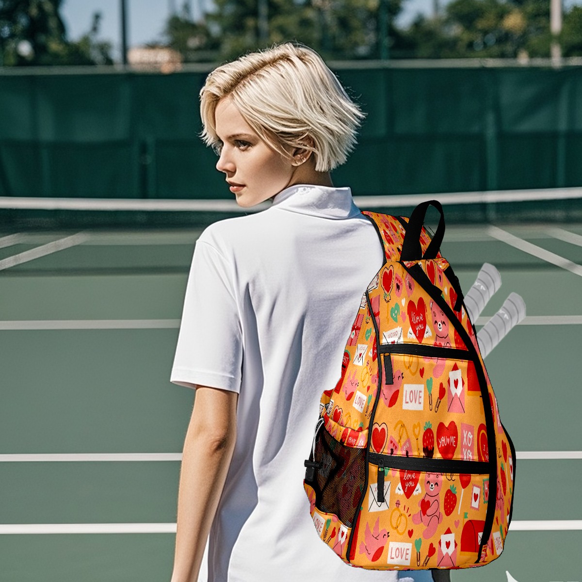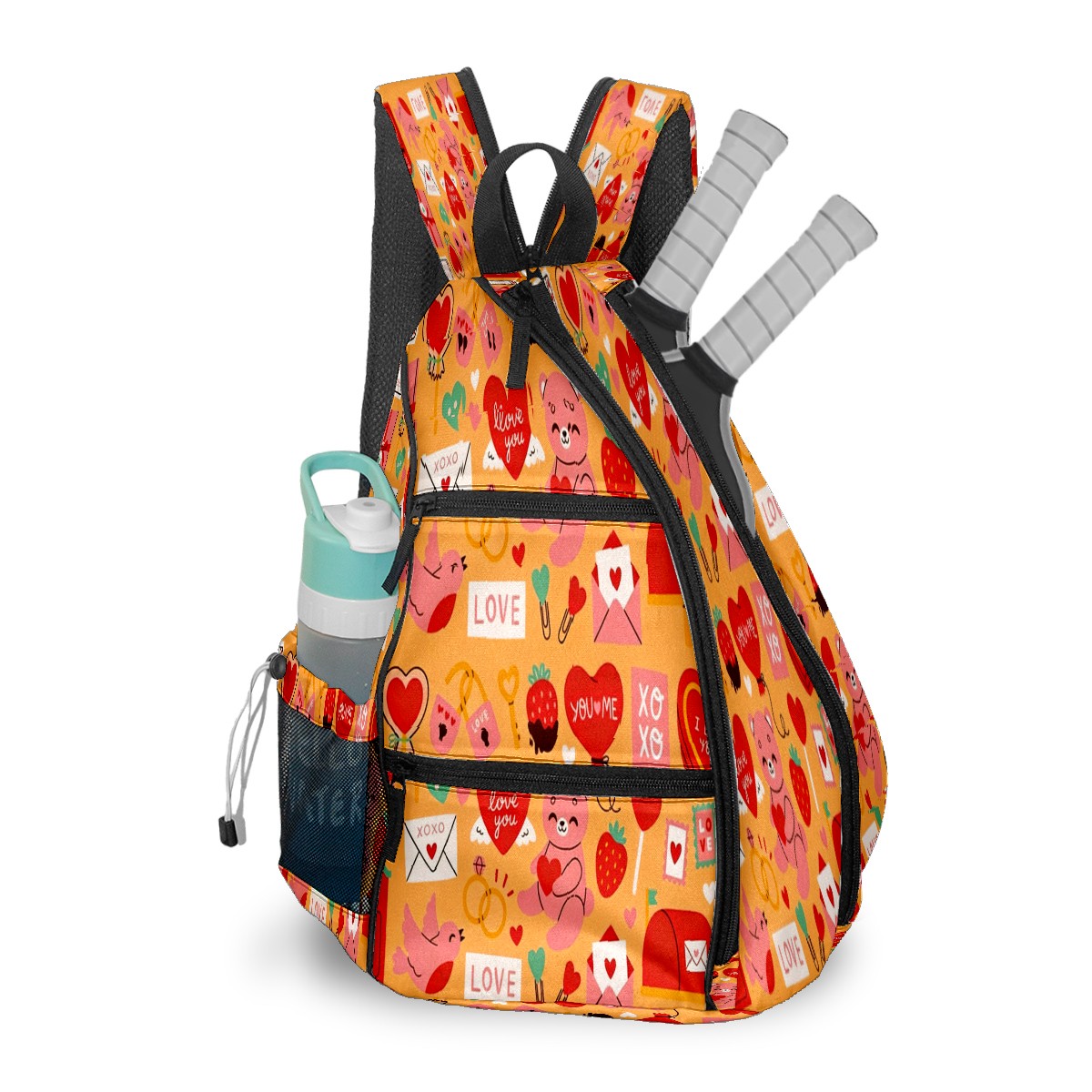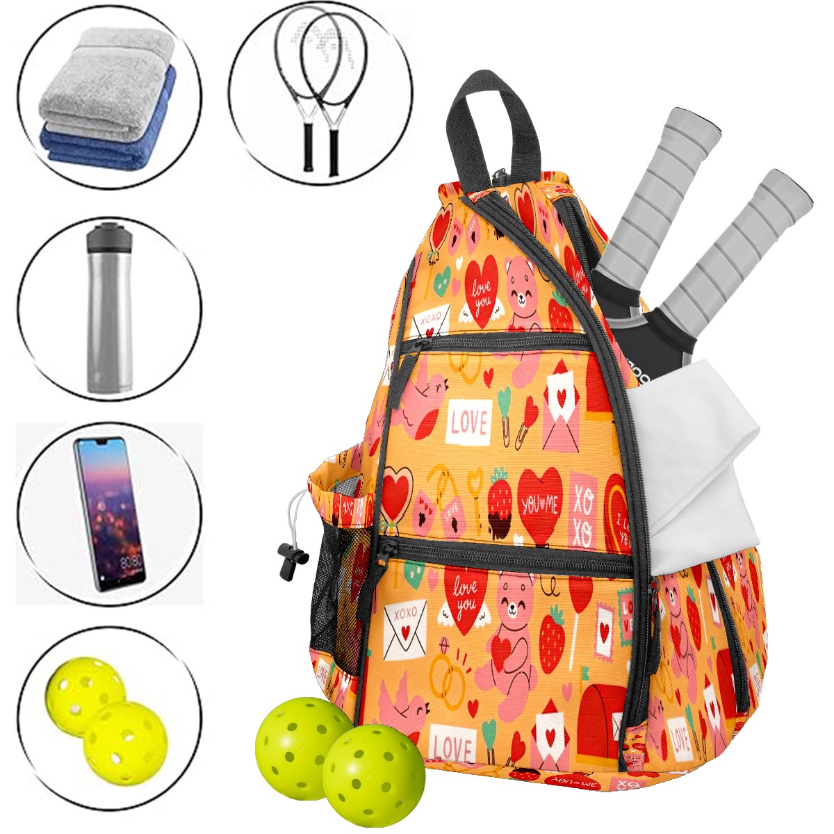 Counullo Pickleball Bag for Women & Men – Lightweight Sports Backpack with Paddle Compartments, Dual Carry Modes, Detachable Zippered Strap, LOVE & Heart Orange | Great Gift for Players