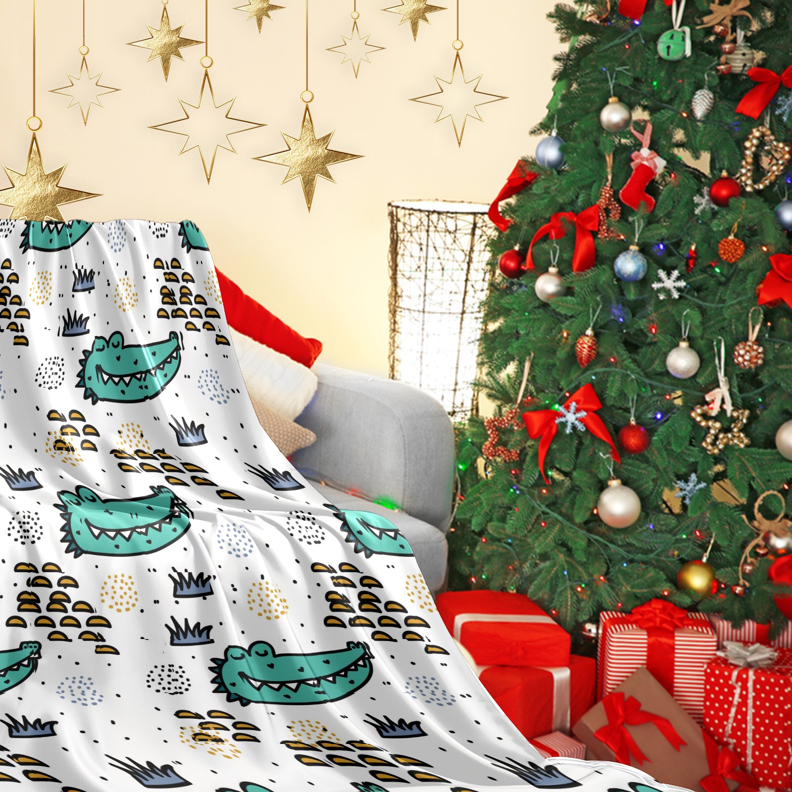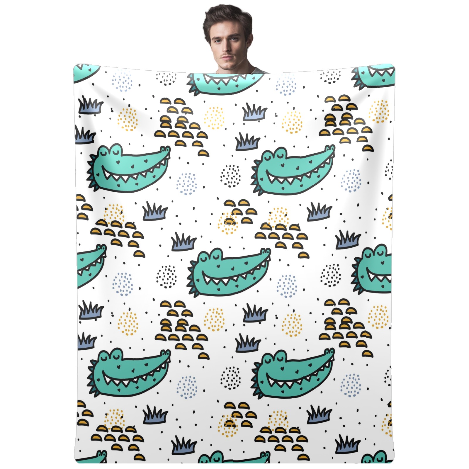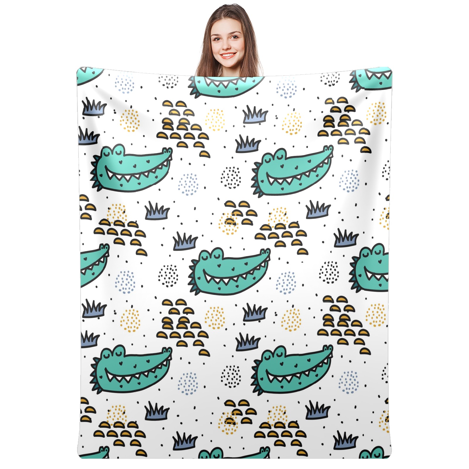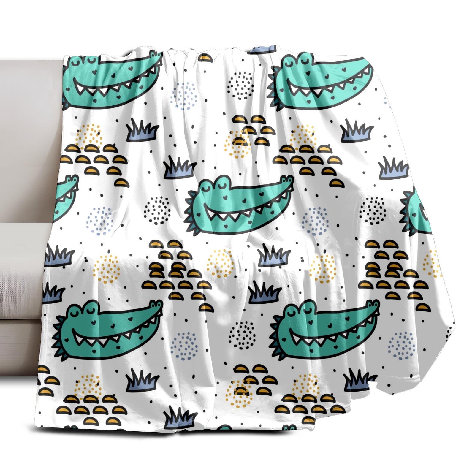 Flannel Blanket, Ultra-Soft Comfortable Home Decor Rug, The Perfect Comfort Gift for Both Men Women, Suitable for Beds, Sofas, Loungewear, and Travel 30x39in(Cute Crocodile Doodle)
