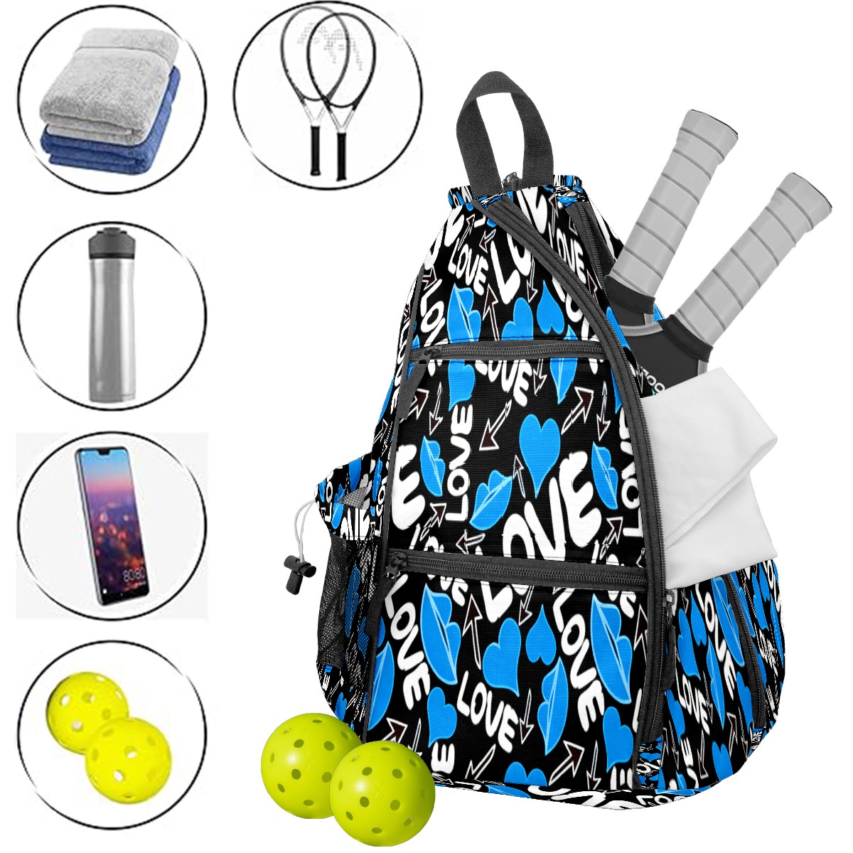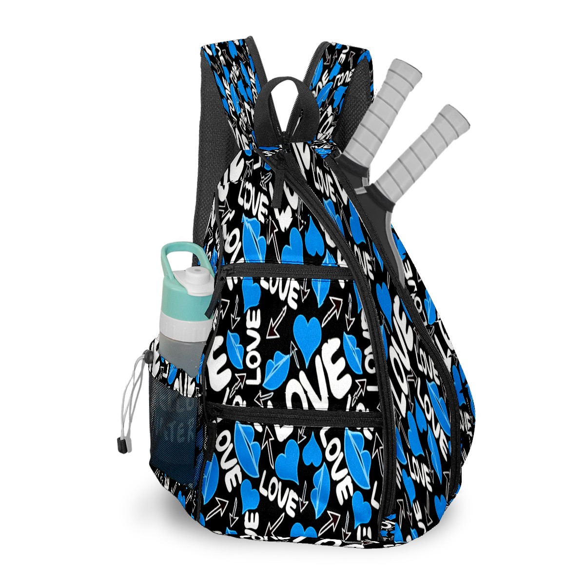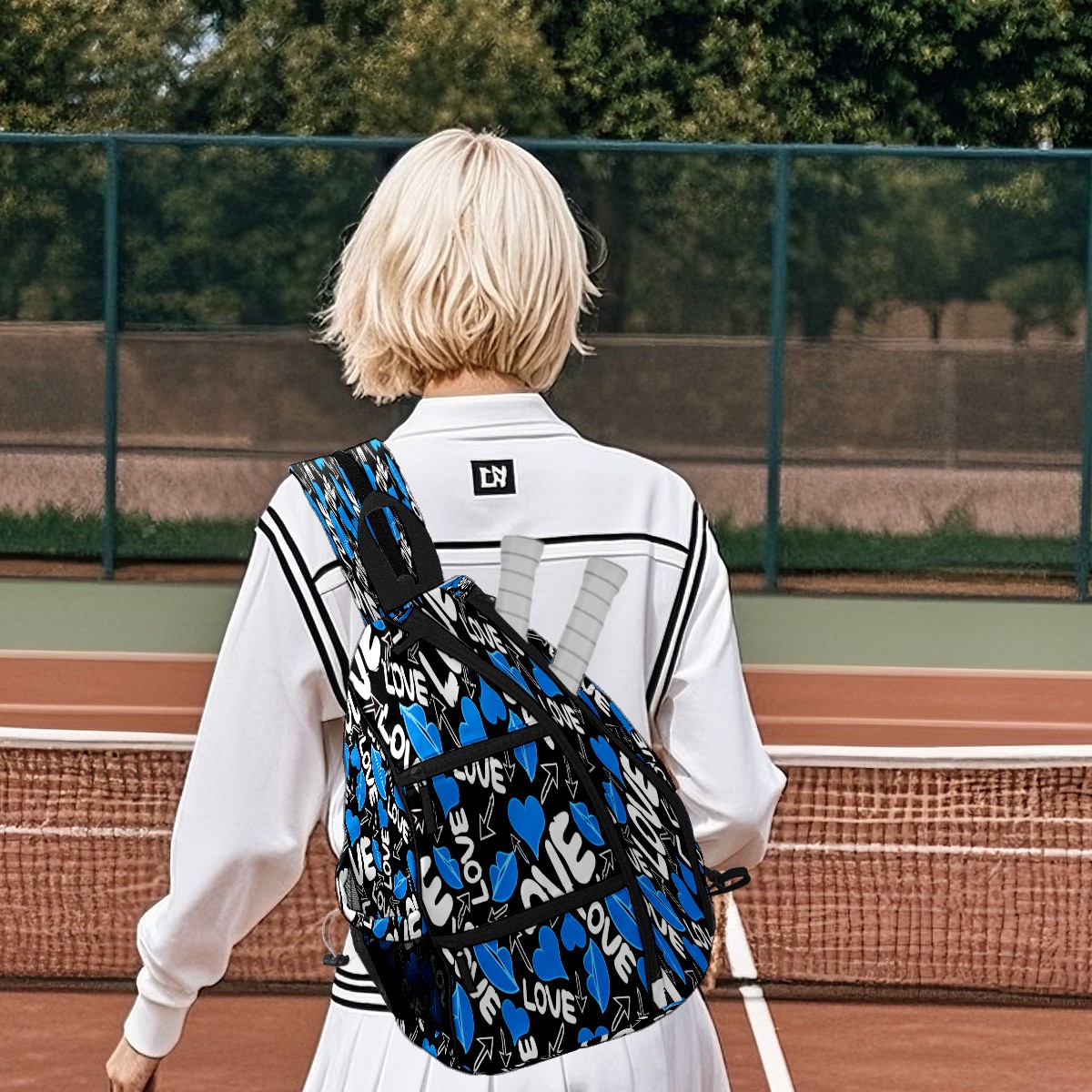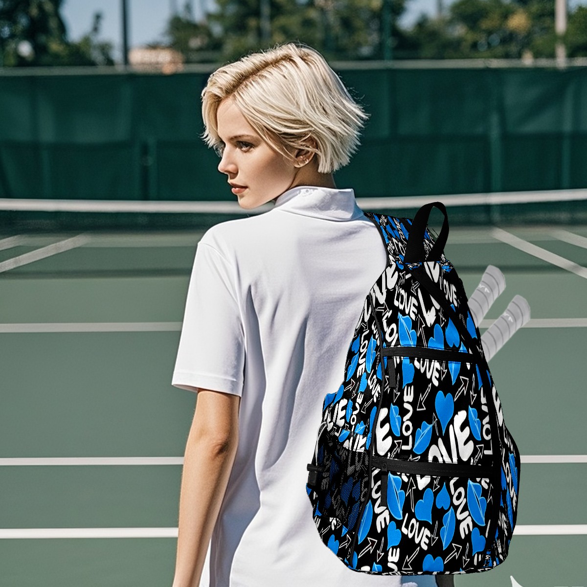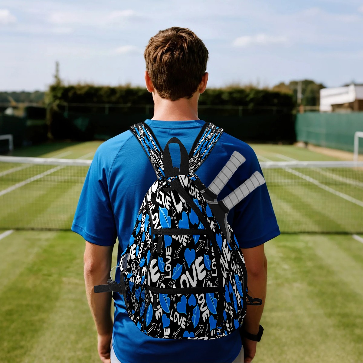 Counullo Pickleball Bag for Women & Men – Lightweight Sports Backpack with Paddle Compartments, Dual Carry Modes, Detachable Zippered Strap, Cool LOVE Blue | Great Gift for Players