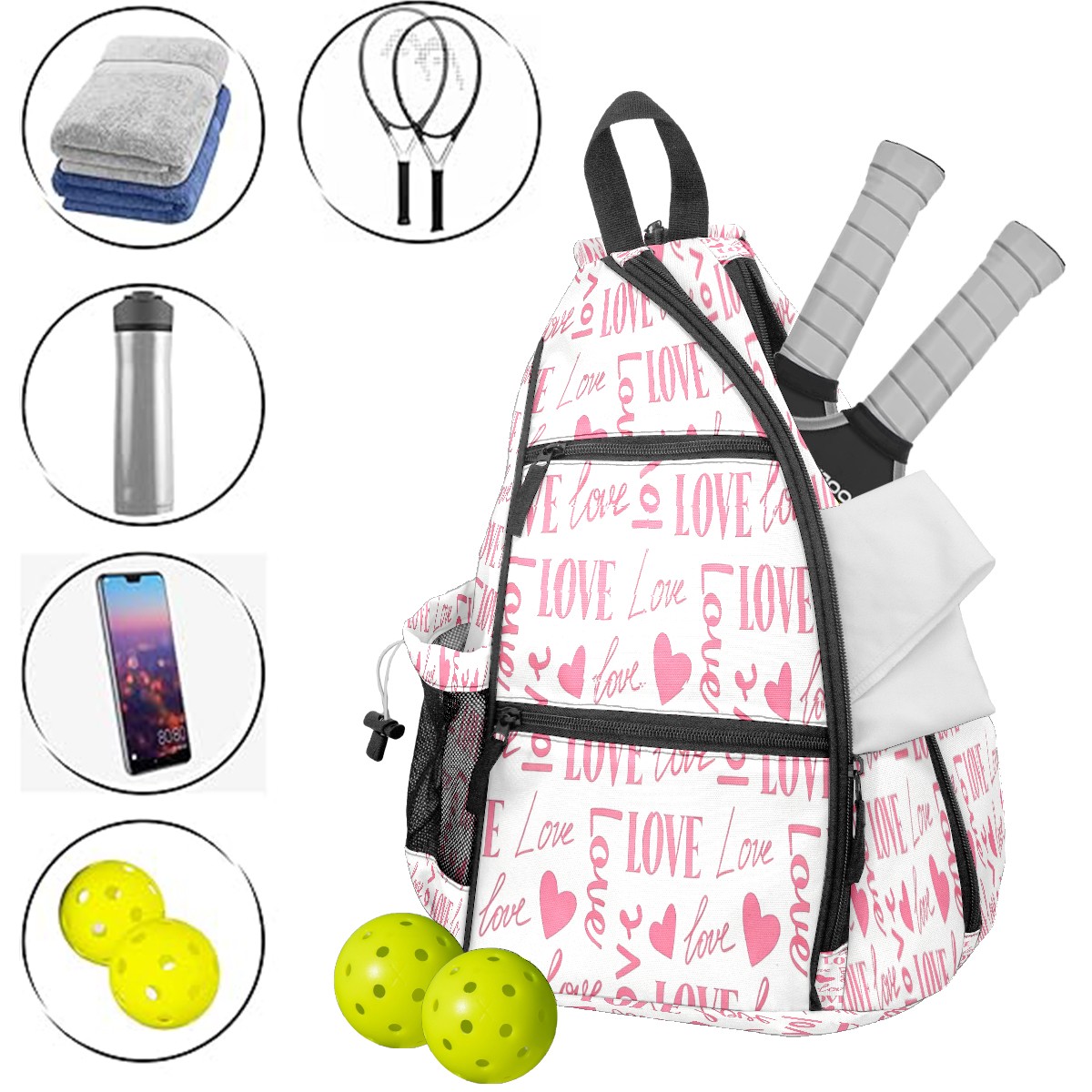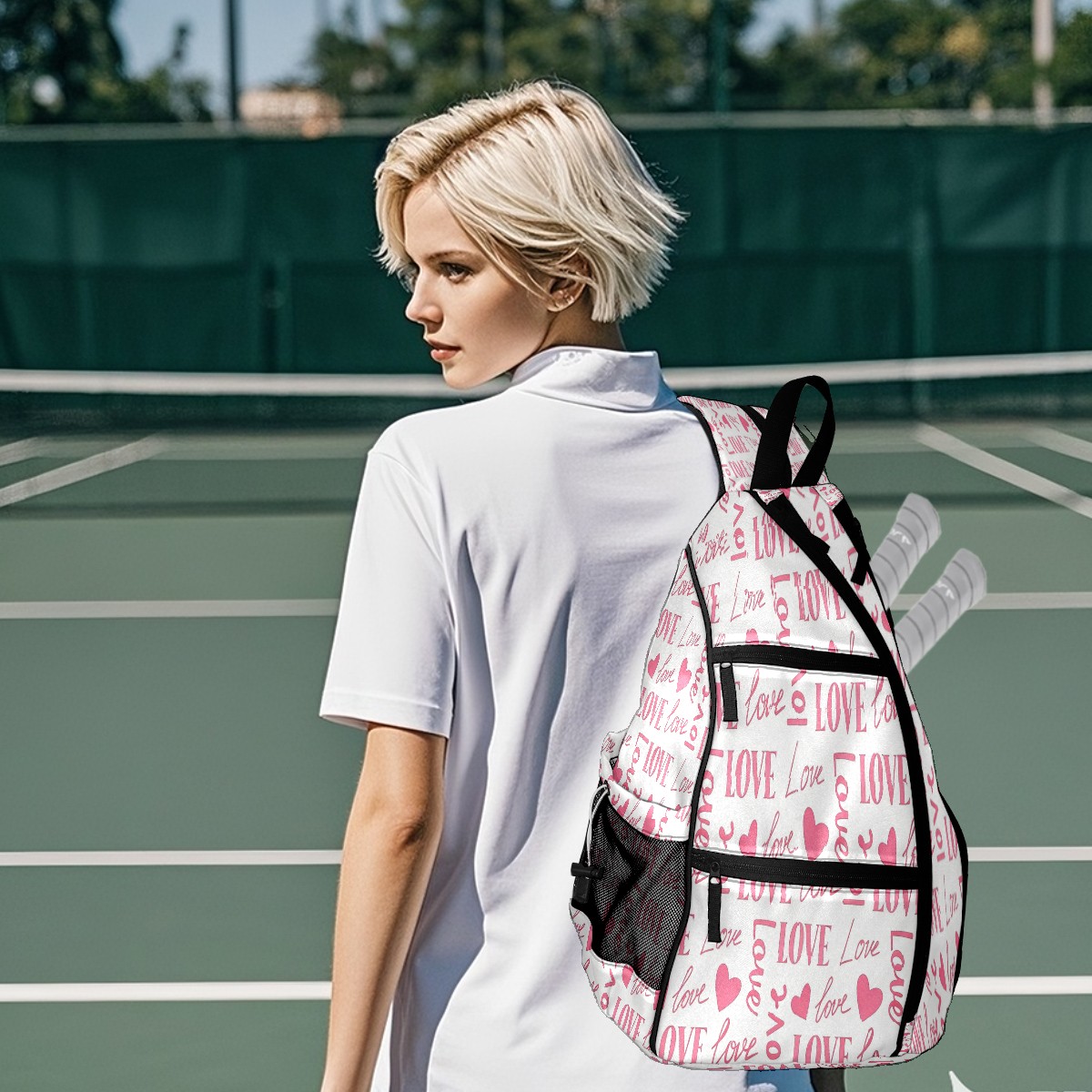 Counullo Pickleball Bag for Women & Men – Lightweight Sports Backpack with Paddle Compartments, Dual Carry Modes, Detachable Zippered Strap, LOVE Text Pink | Great Gift for Players