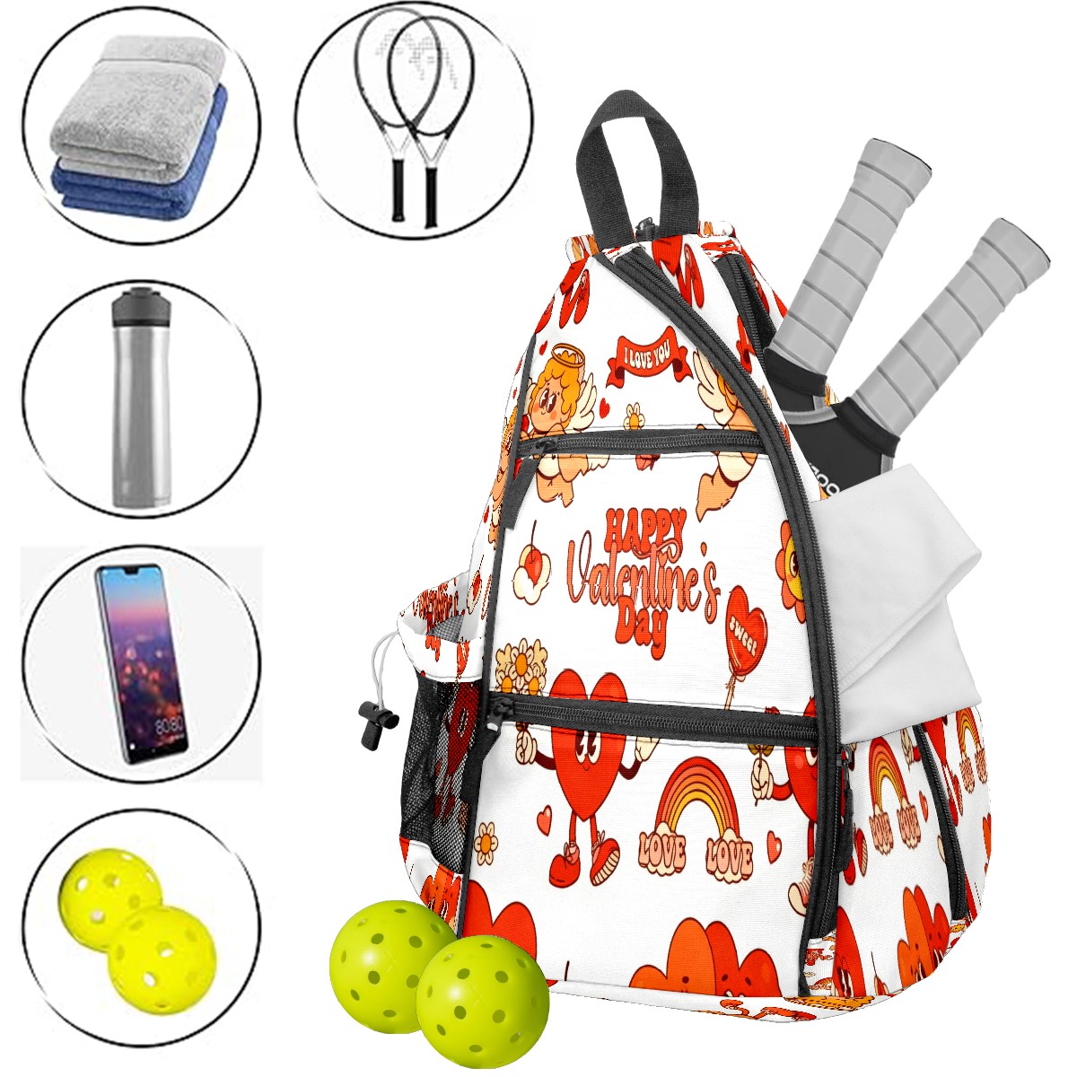 Counullo Pickleball Bag for Women & Men – Lightweight Sports Backpack with Paddle Compartments, Dual Carry Modes, Detachable Zippered Strap, Cheerful Valentine's Orange | Great Gift for Players
