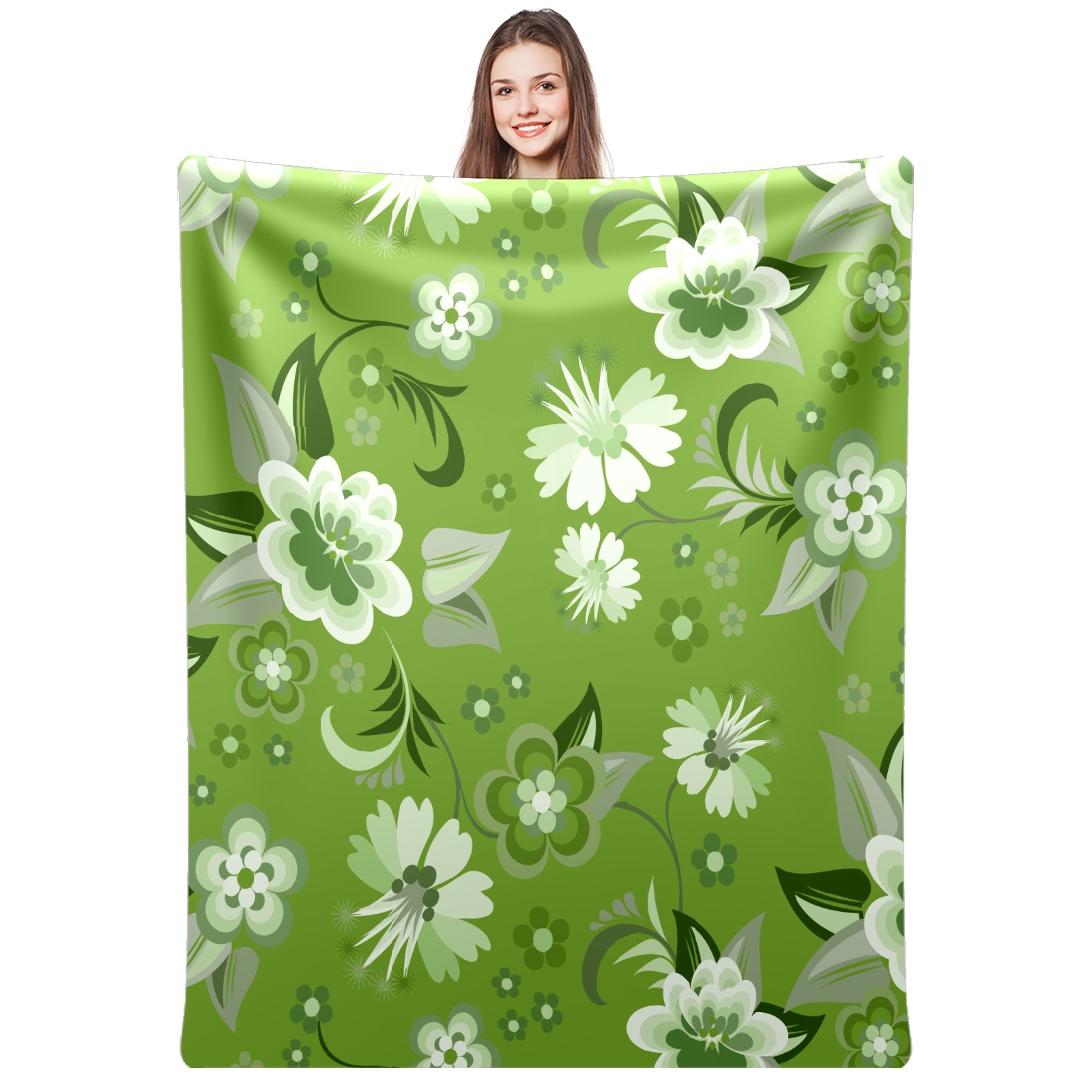 Flannel Blanket, Ultra-Soft Comfortable Home Decor Rug, The Perfect Comfort Gift for Both Men Women, Suitable for Beds, Sofas, Loungewear, and Travel 30x39in(Flower Plant Green)