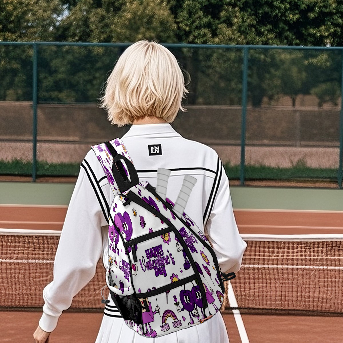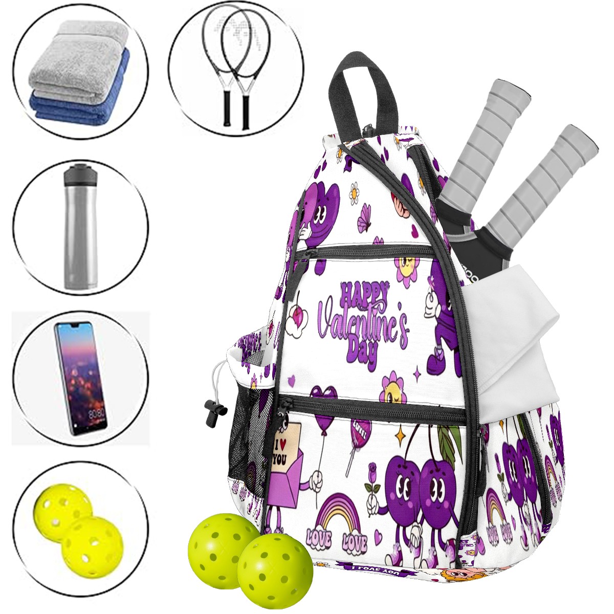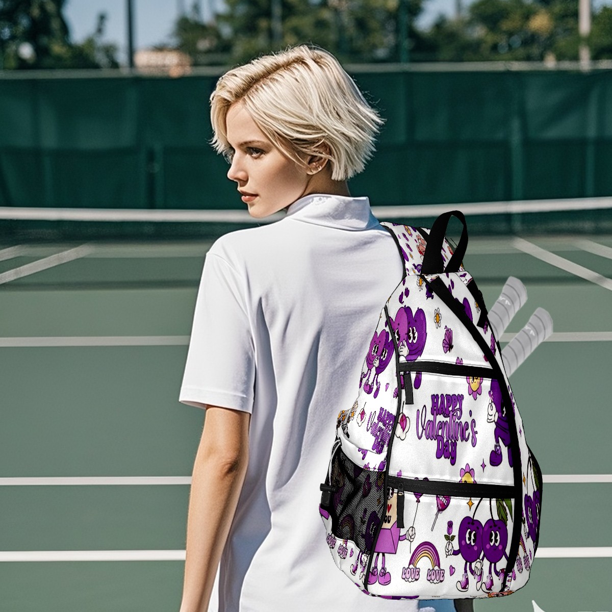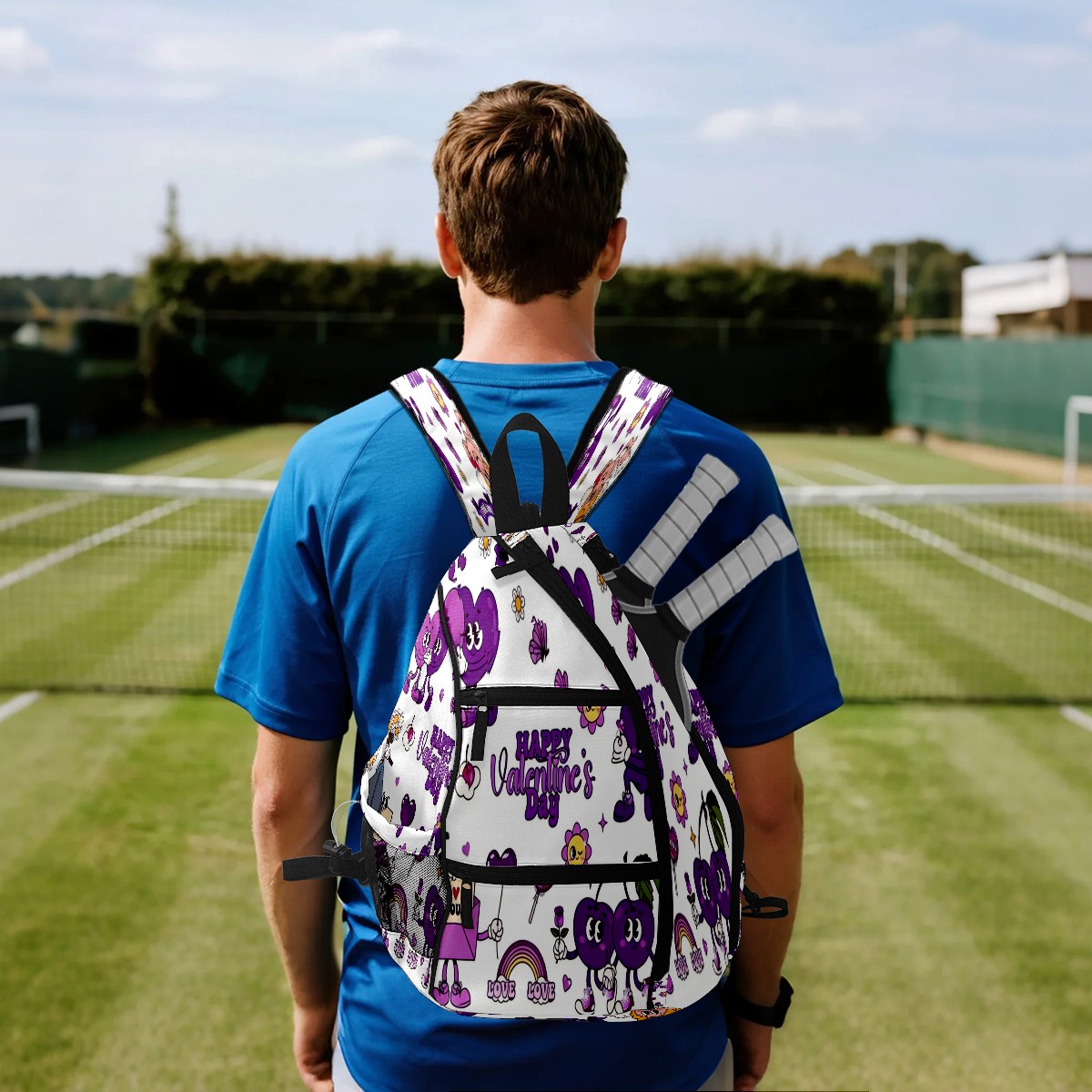 Counullo Pickleball Bag for Women & Men – Lightweight Sports Backpack with Paddle Compartments, Dual Carry Modes, Detachable Zippered Strap, Funny Cartoon Purple | Great Gift for Players