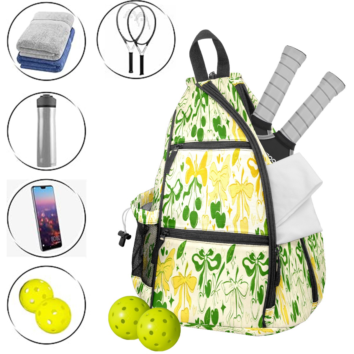 Counullo Pickleball Bag for Women & Men – Lightweight Sports Backpack with Paddle Compartments, Dual Carry Modes, Detachable Zippered Strap, Fresh Bow Yellow | Great Gift for Players
