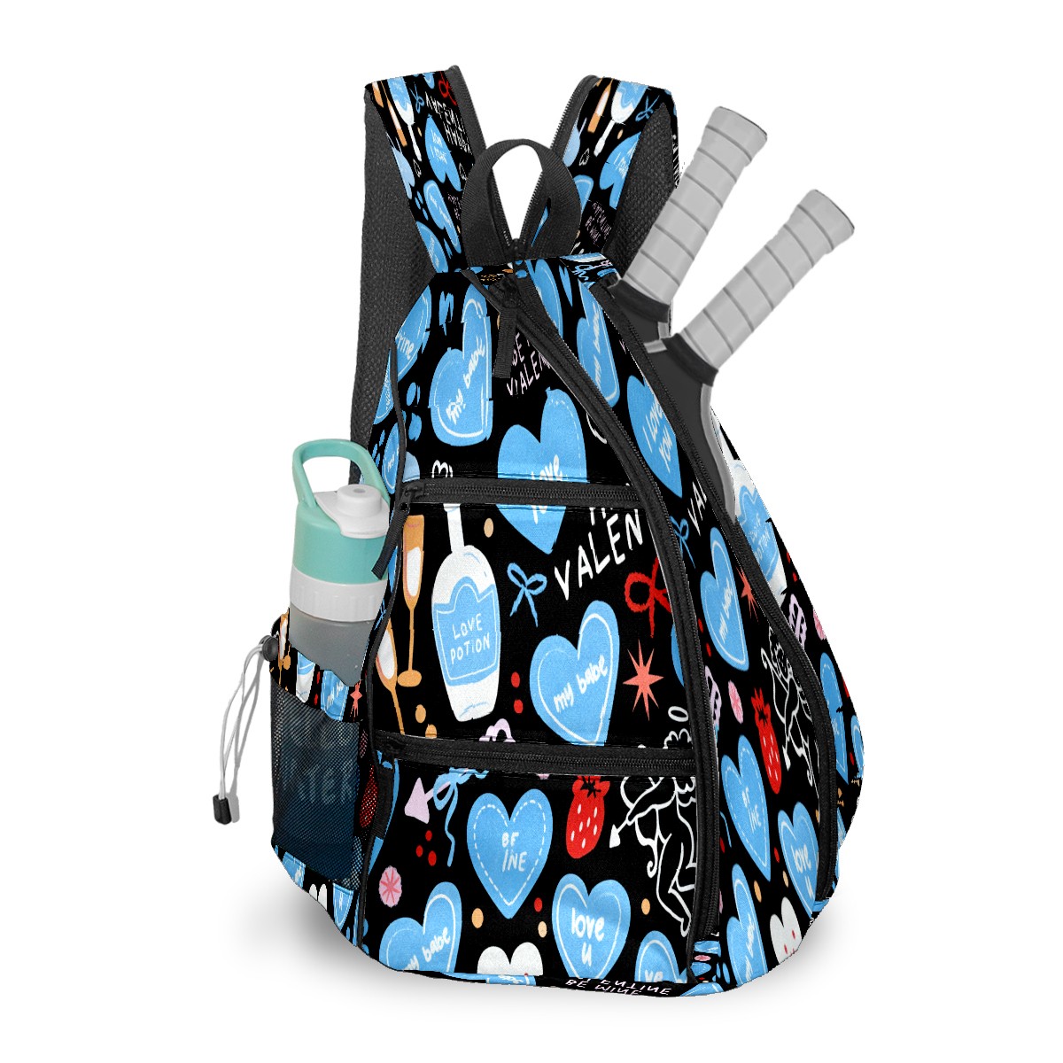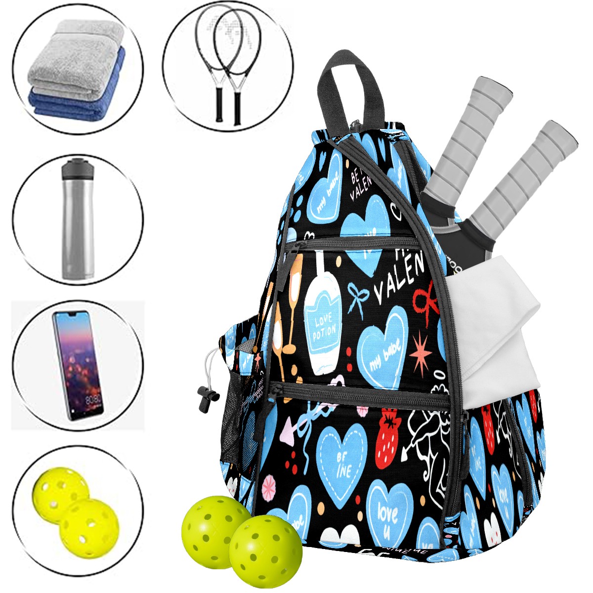 Counullo Pickleball Bag for Women & Men – Lightweight Sports Backpack with Paddle Compartments, Dual Carry Modes, Detachable Zippered Strap, Deep Heart Black | Great Gift for Players