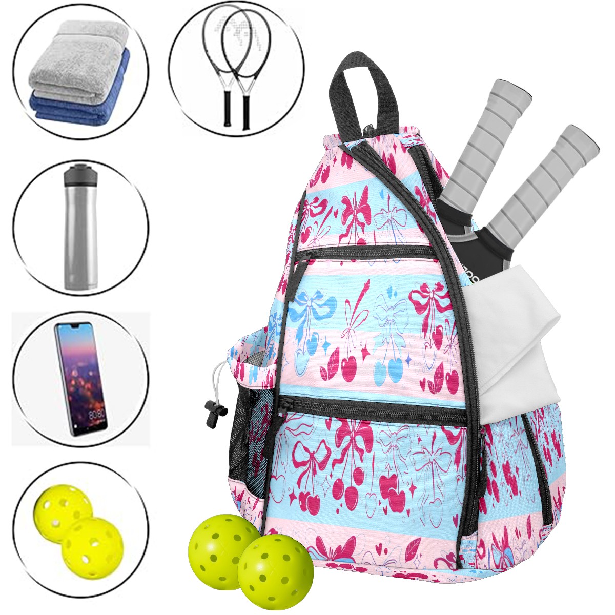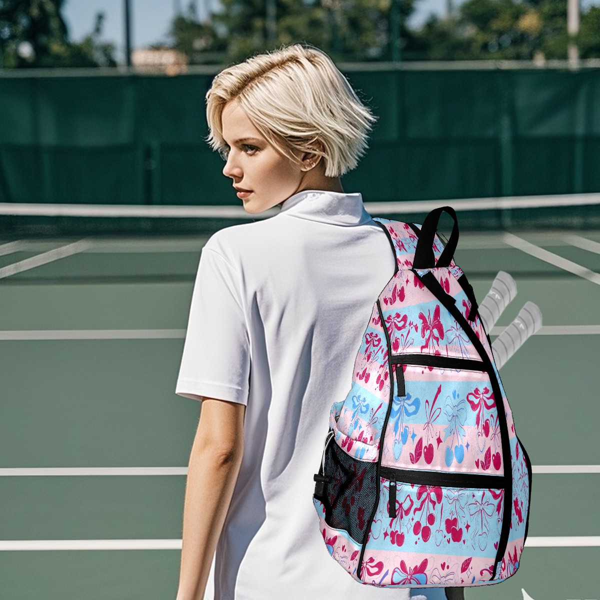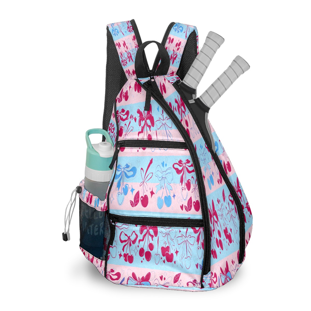 Counullo Pickleball Bag for Women & Men – Lightweight Sports Backpack with Paddle Compartments, Dual Carry Modes, Detachable Zippered Strap, Romantic Bow Pink | Great Gift for Players