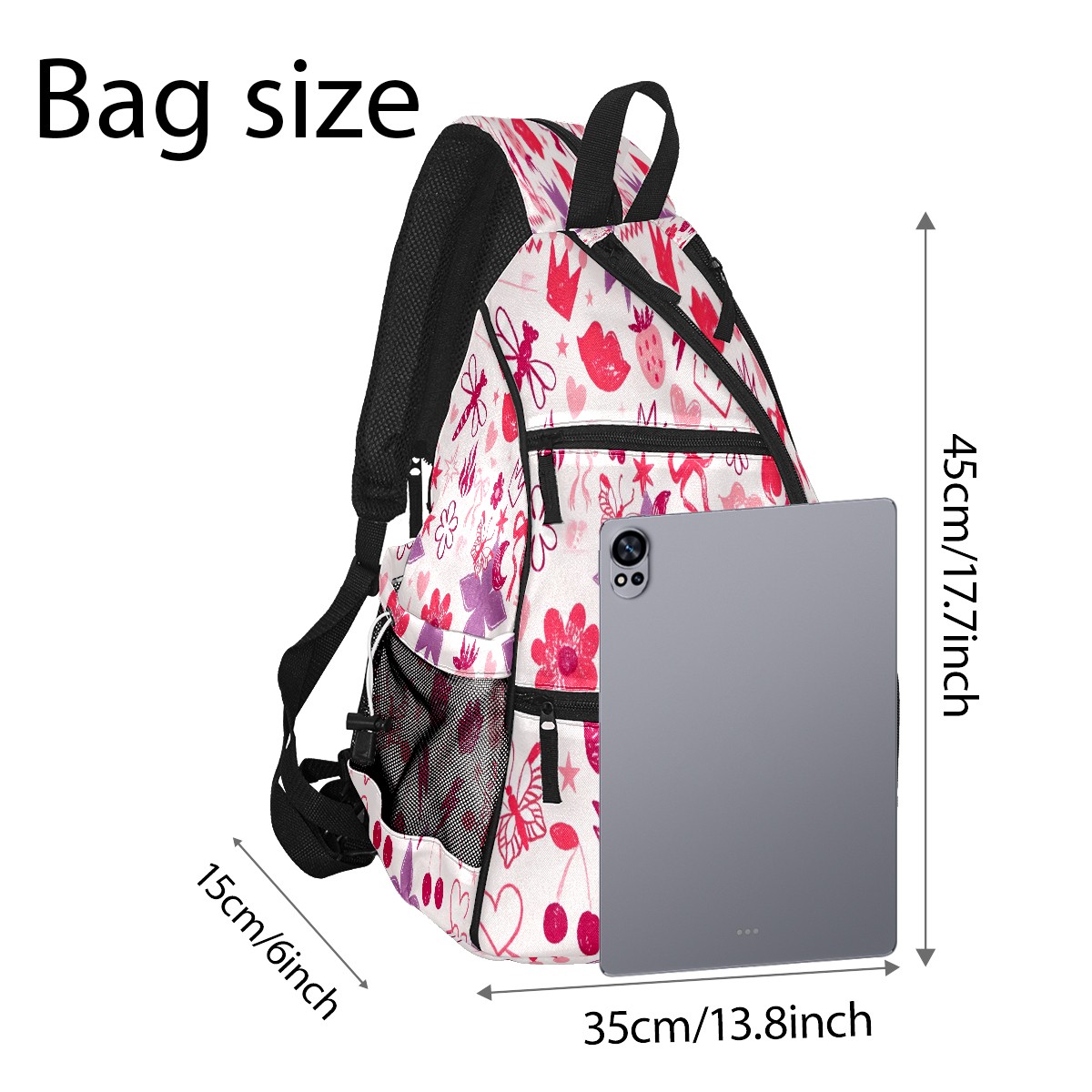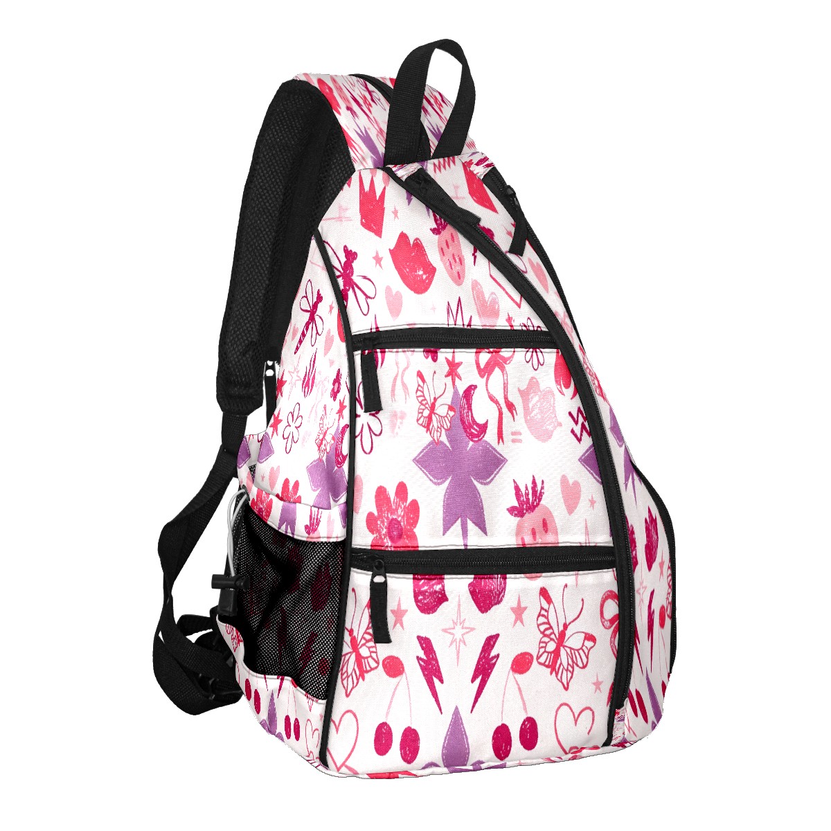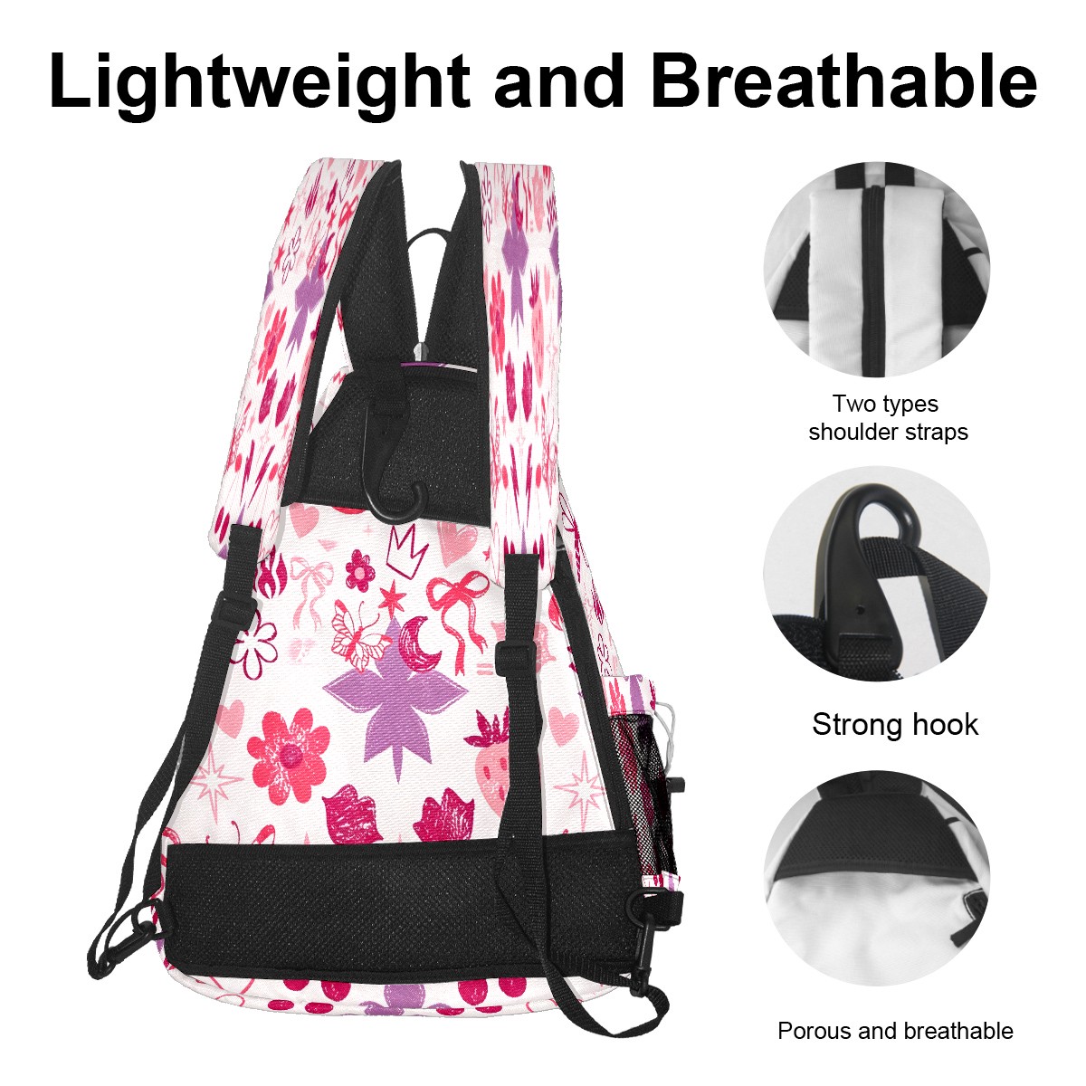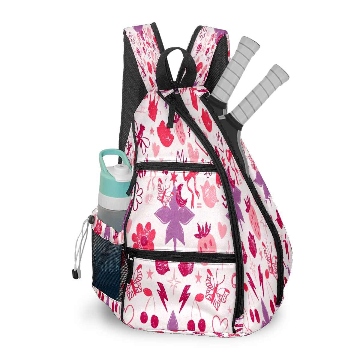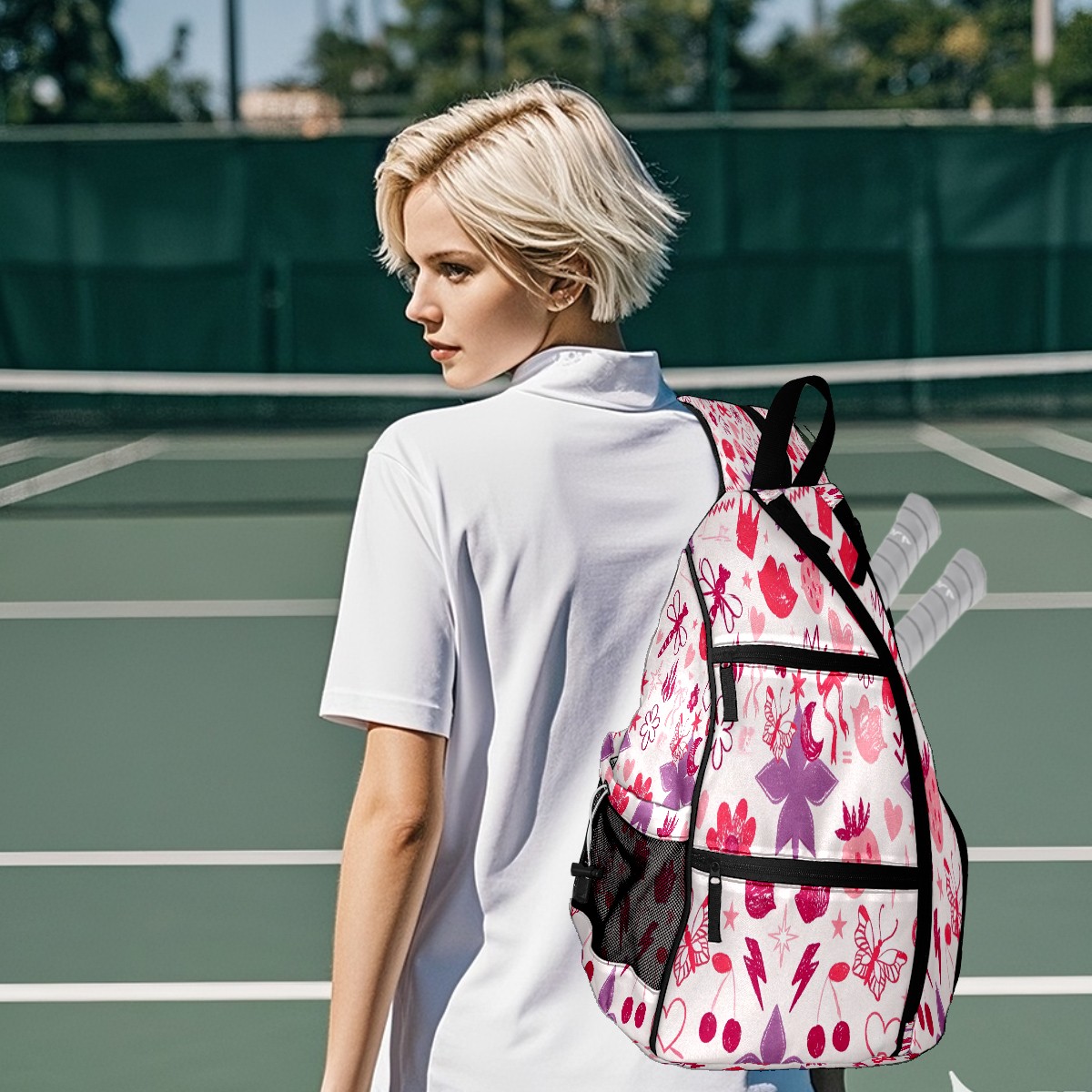 Counullo Pickleball Bag for Women & Men – Lightweight Sports Backpack with Paddle Compartments, Dual Carry Modes, Detachable Zippered Strap, Soft Floral Heart Pink | Great Gift for Players