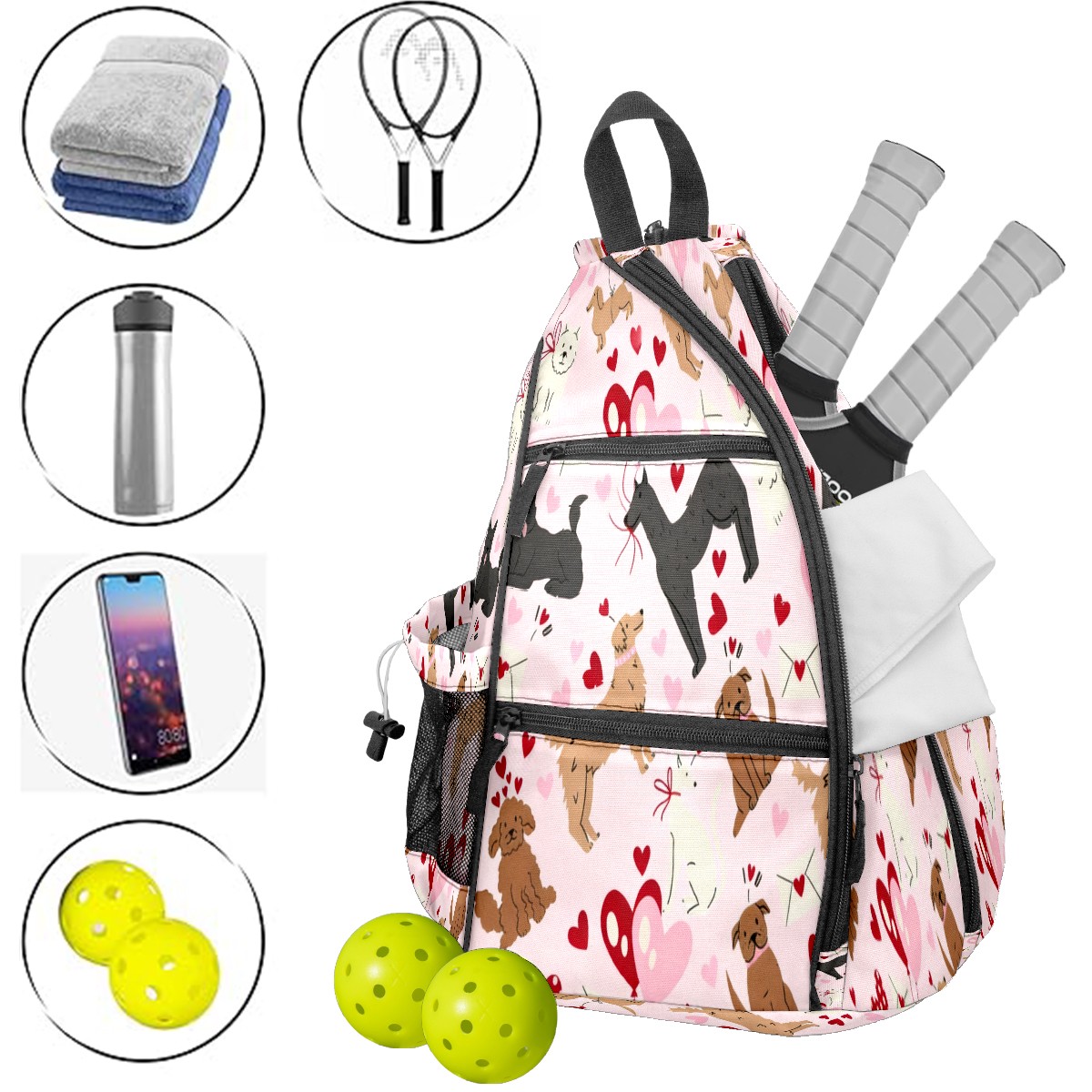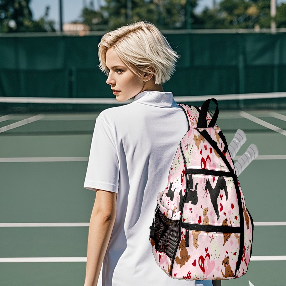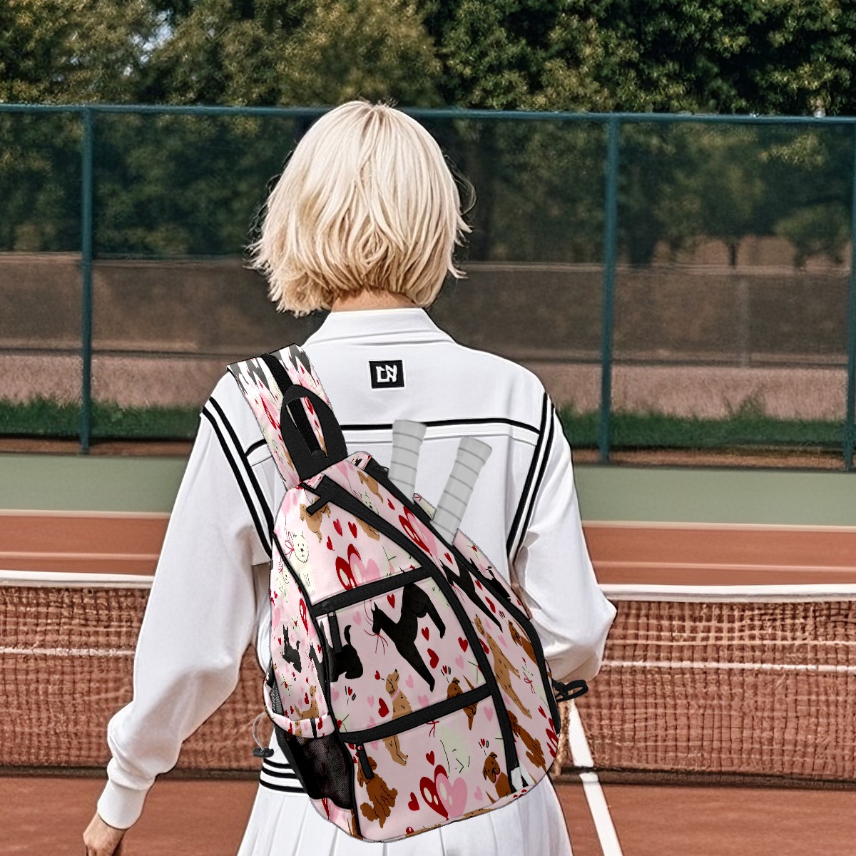 Counullo Pickleball Bag for Women & Men – Lightweight Sports Backpack with Paddle Compartments, Dual Carry Modes, Detachable Zippered Strap, Gentle Dog Pink | Great Gift for Players