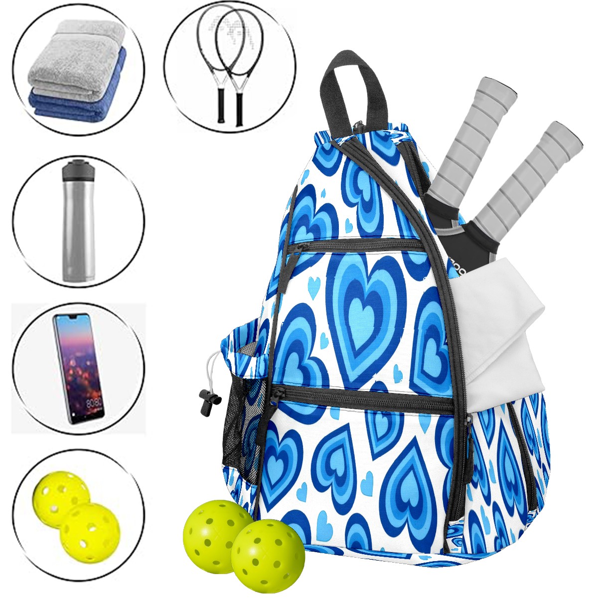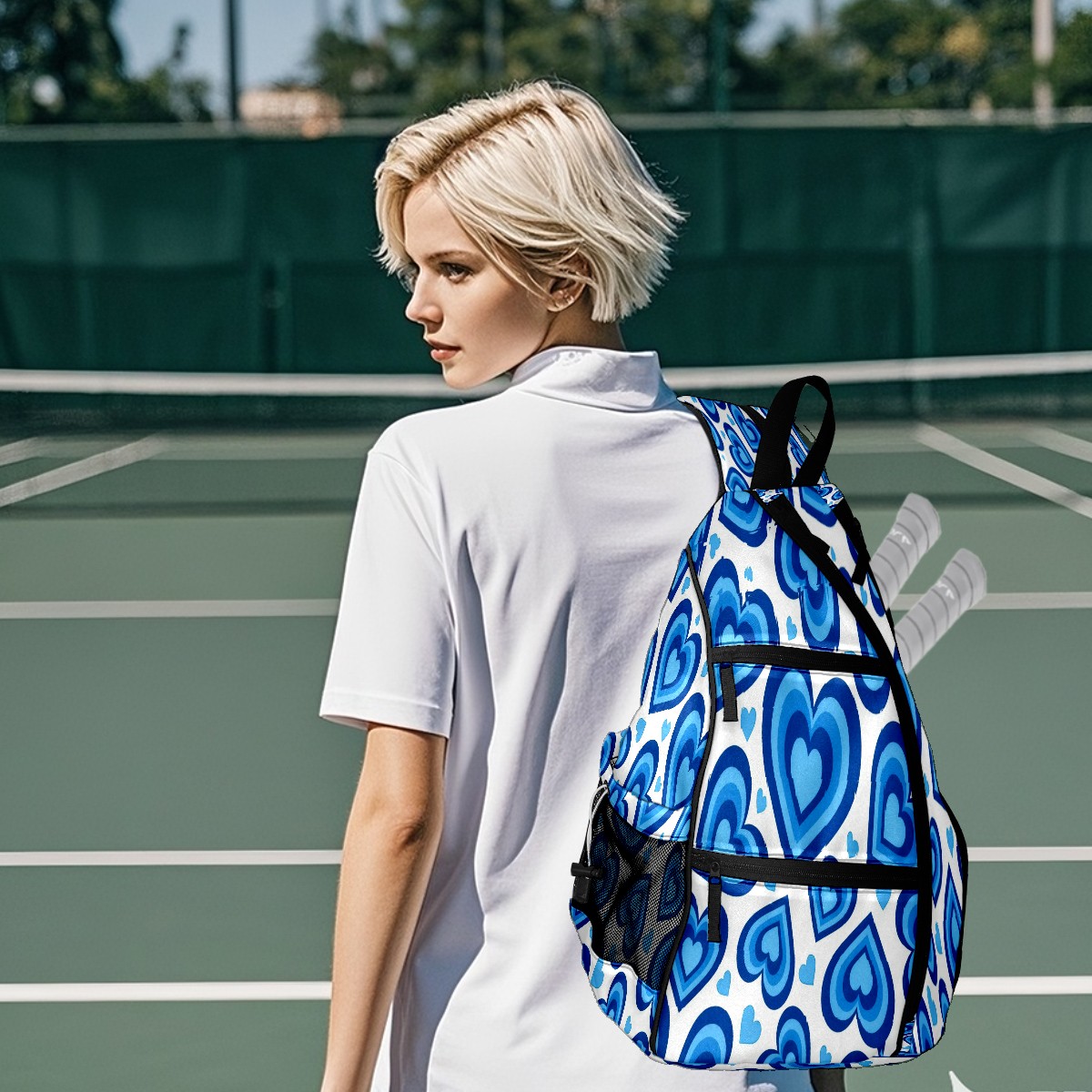 Counullo Pickleball Bag for Women & Men – Lightweight Sports Backpack with Paddle Compartments, Dual Carry Modes, Detachable Zippered Strap, Vibrant Heart Blue | Great Gift for Players