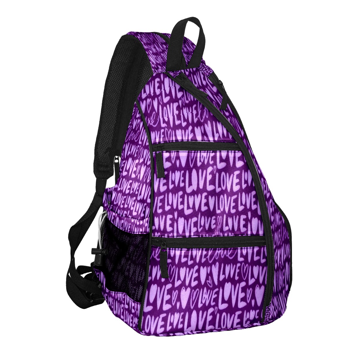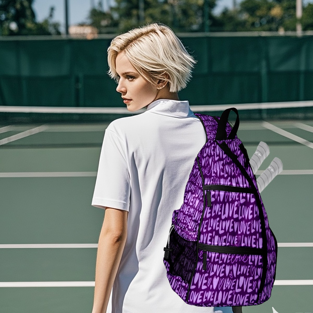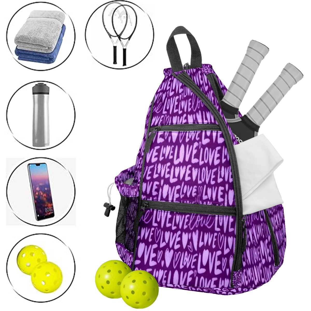Counullo Pickleball Bag for Women & Men – Lightweight Sports Backpack with Paddle Compartments, Dual Carry Modes, Detachable Zippered Strap, Fiery LOVE Text Purple | Great Gift for Players