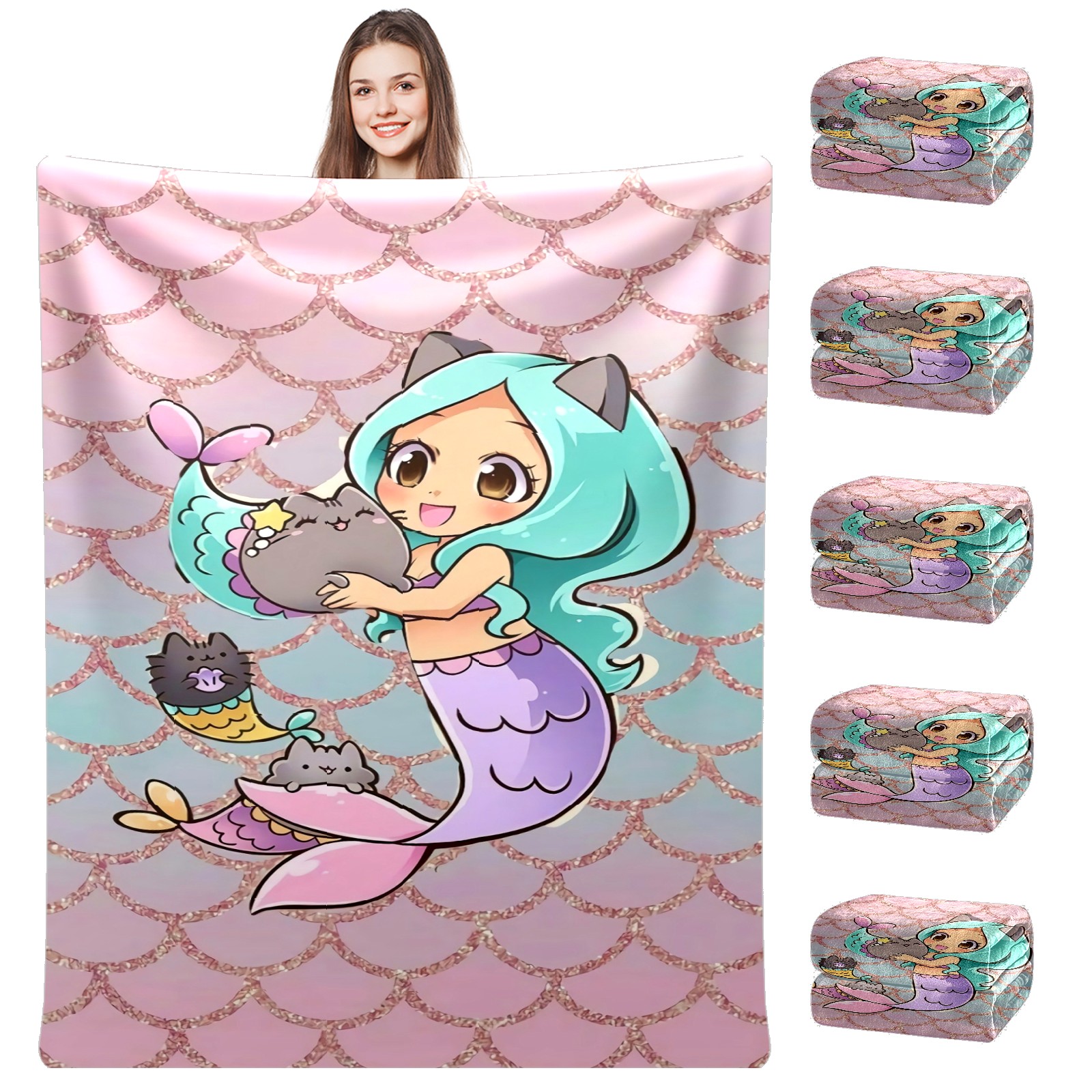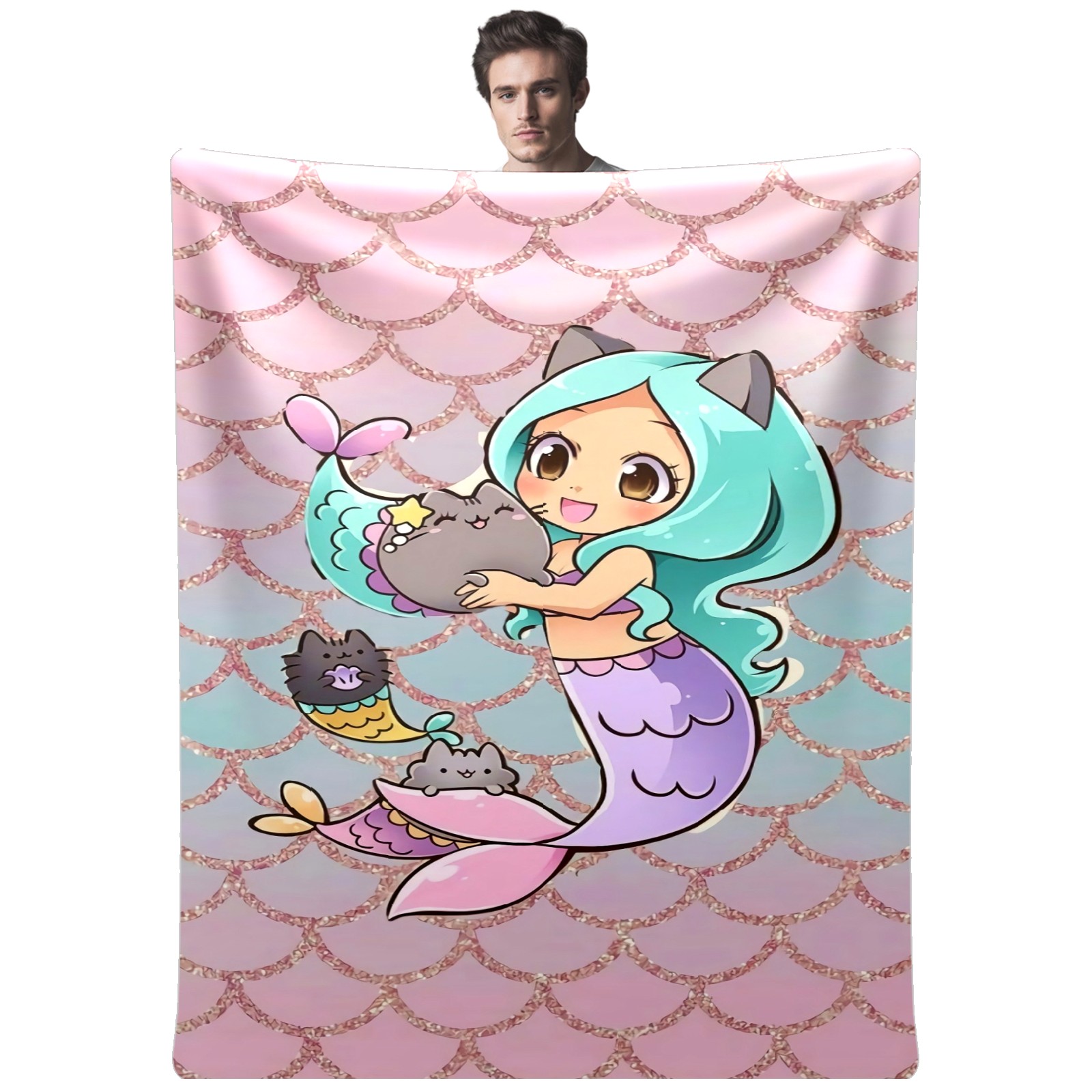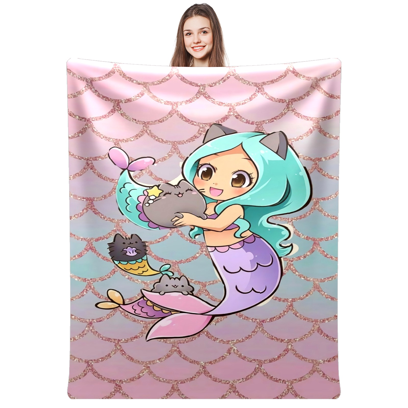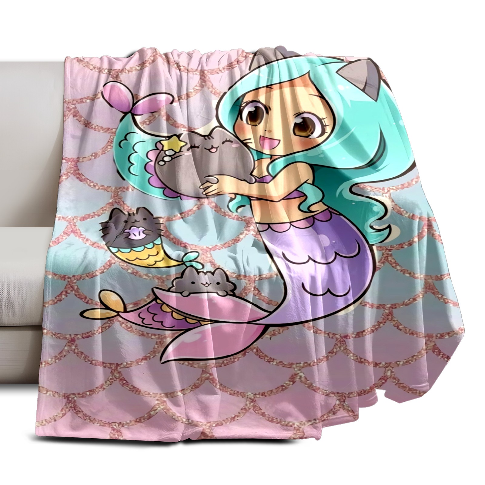 Flannel Blanket, Ultra-Soft Comfortable Home Decor Rug, The Perfect Comfort Gift for Both Men Women, Suitable for Beds, Sofas, Loungewear, and Travel 30x39in(Cute Mermaid)